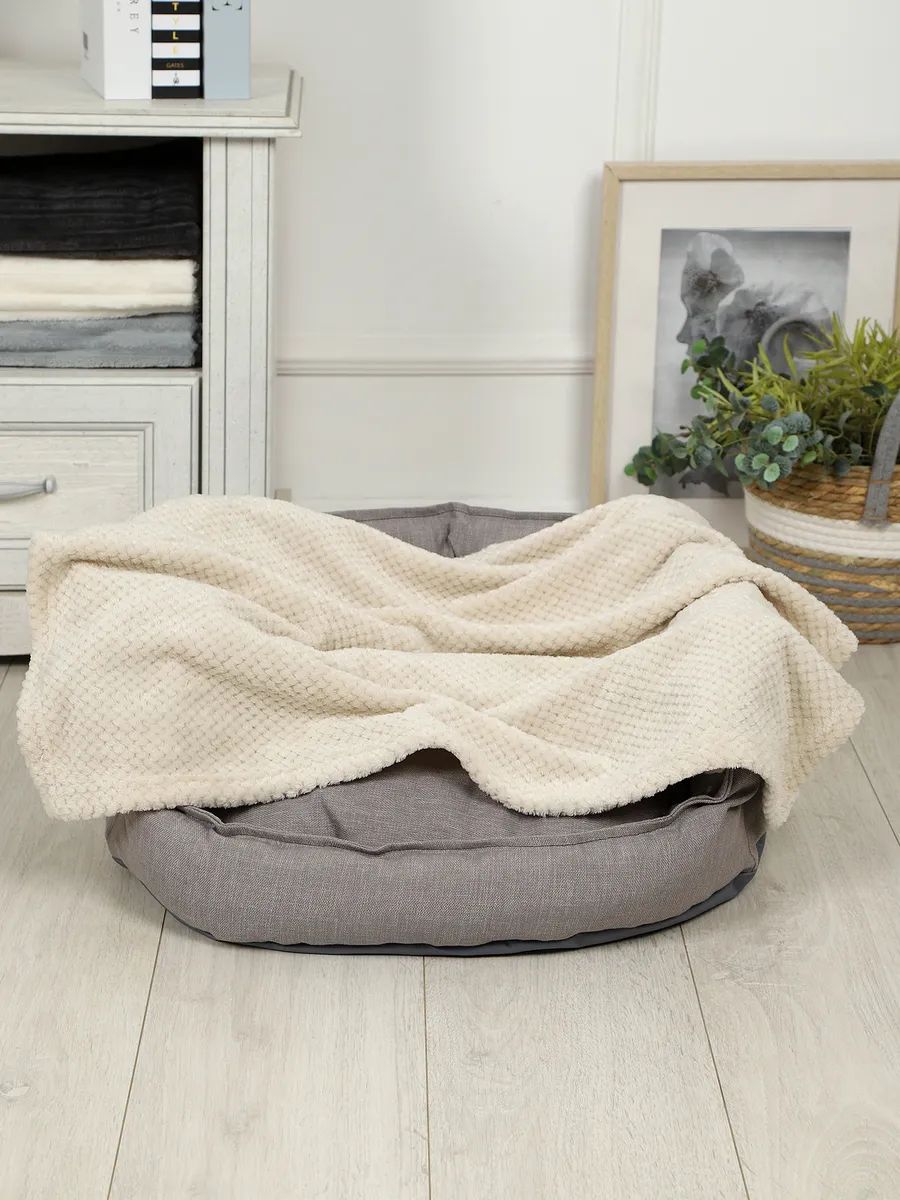 Наше покрывало изготовлено из мягкого и приятного на ощупь материала, который сохраняет тепло и дарит ощущение комфорта и уюта. Накидка на лежанку антиаллергенная, что позволит вашим питомцам чувствовать себя безопасно. Можно использовать как одеяло для короткошёрстных, бесшерстных, лысых, мелких пород. Принесенному в дом котенку и щенку мягкий, он напомнит тепло мамы, поможет быстрее адаптироваться.