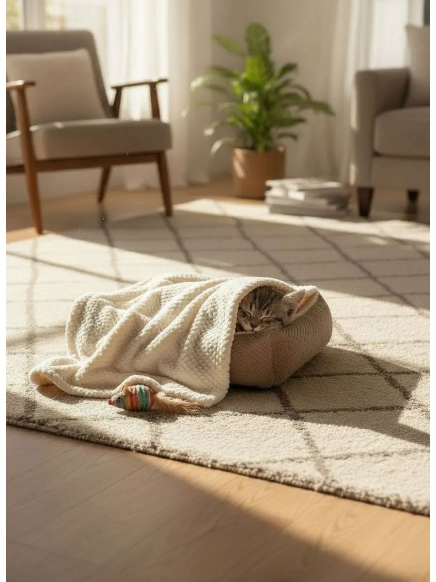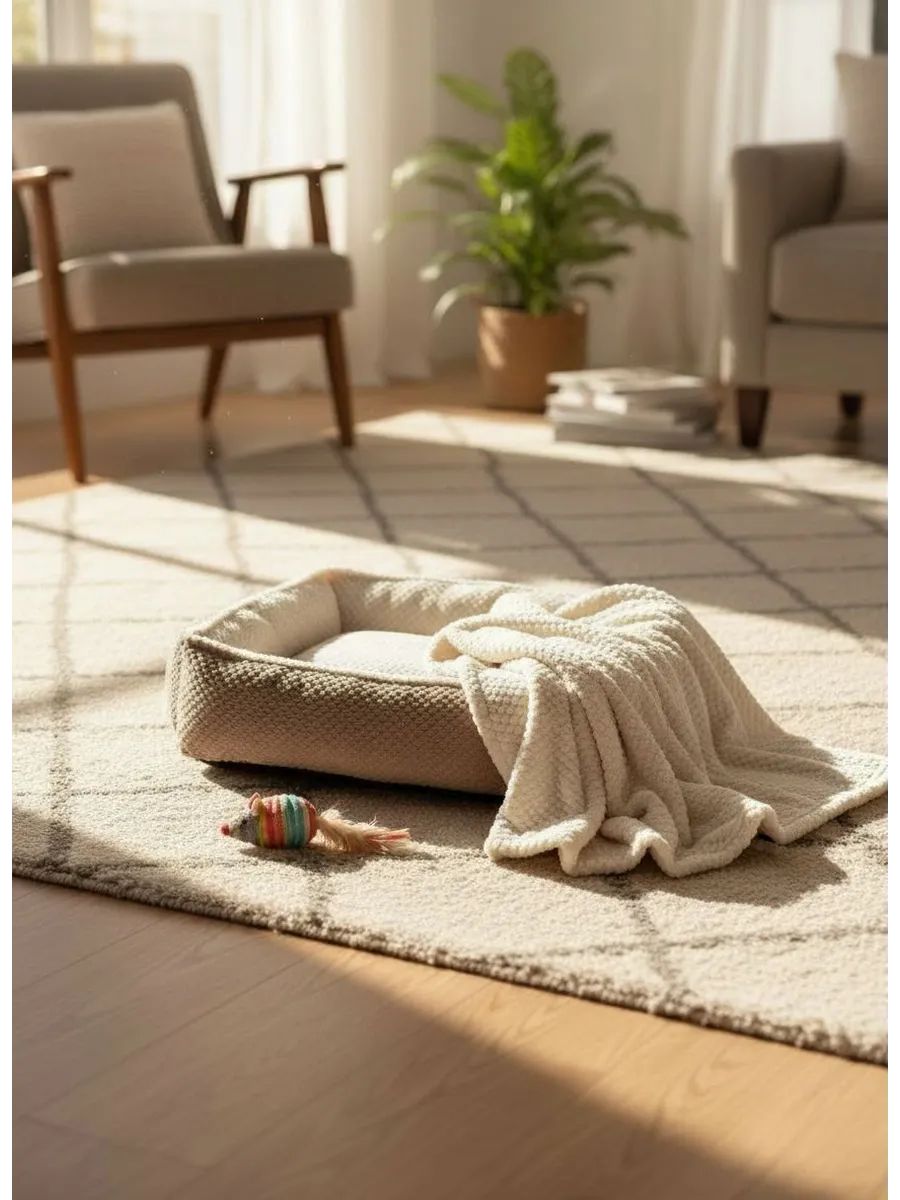 Этот плед идеально подходит для использования как в доме, так и на прогулке и во время путешествия обеспечивая вашему питомцу комфорт и тепло создавая им удобное место для отдыха и сна. Пусть ваш пушистый друг находит свое пространство с этим пледом, который станет его любимым местом отдыха на большой кровати, в лежаке, в машине, на прогулке или на диване.