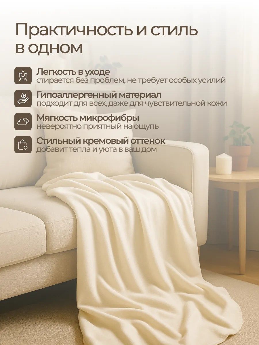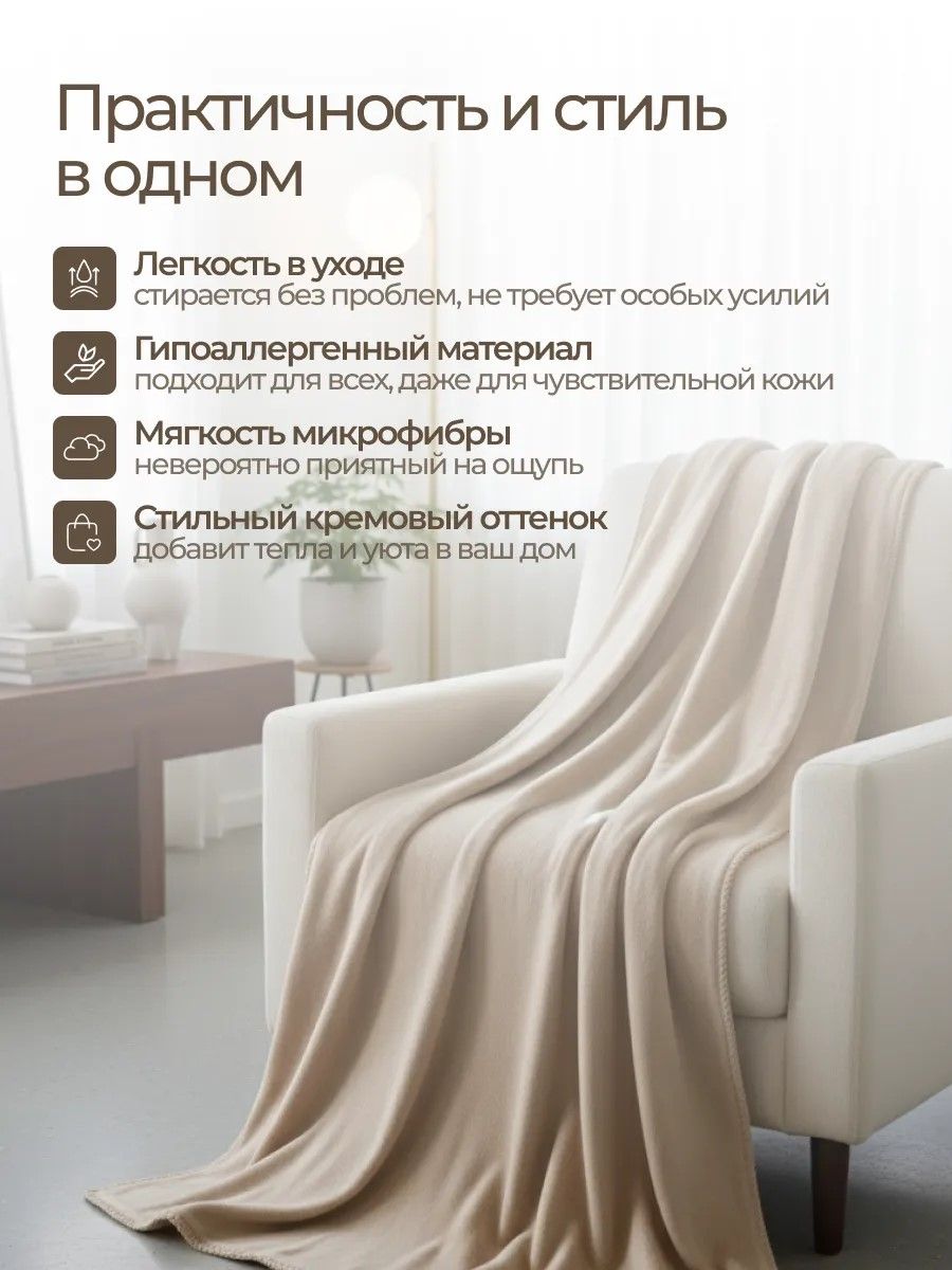 Пледы Флисовый кремовый 100% полиэстер , плотность 160 г/м2