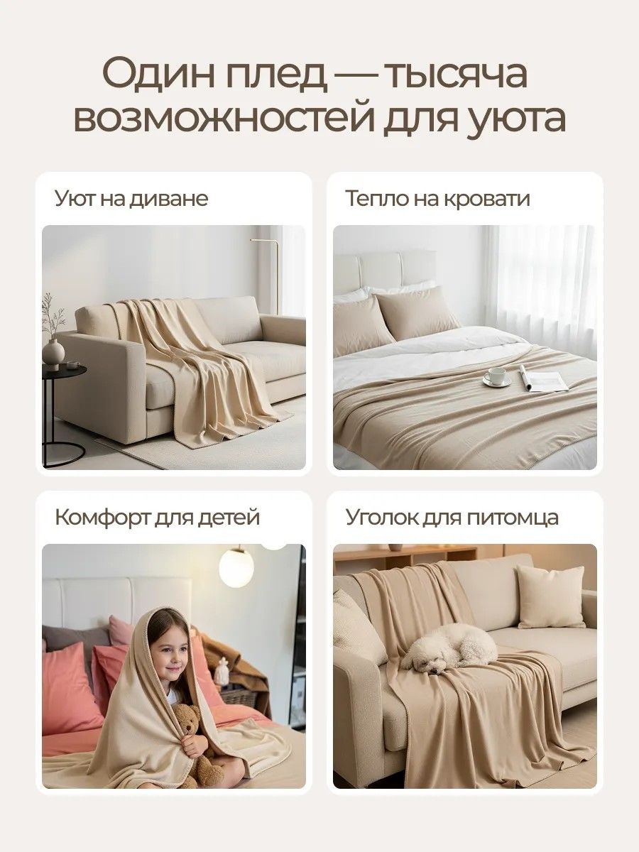 Создайте атмосферу уюта и тепла с этим мягким пледом 130х160, который идеально подойдет для любого интерьера. Он станет прекрасным подарком для ваших близких или стильным акцентом в доме. Этот однотонный плед прекрасно дополнит как диван, так и кровать, привнеся изысканный штрих в любой уголок вашего пространства. Состав изделия — 100% полиэстер, что обеспечивает прочность и лёгкость в уходе. Плед выполнен из флиса, который мягко согревает и приятно ощущается на коже, создавая комфорт в холодные вечера. Уход за изделием прост: достаточно постирать его в деликатном режиме, а благодаря особой ткани, глажка не требуется. Этот плед можно использовать как накидку на мебель или как стильный элемент текстильного декора вашей спальни. Благодаря универсальному дизайну, он идеально впишется в любой интерьер, придавая комнате уют и тепло. Не упустите шанс добавить в свой дом этот элемент комфорта. Подарите себе и близким тепло и уют с этим стильным пледом. Его современный дизайн и лёгкость в уходе сделают его незаменимым аксессуаром для вашего дома. Пусть каждый день будет наполнен гармонией и комфортом с этим прекрасным покрывалом, которое станет идеальным спутником для отдыха и расслабления.