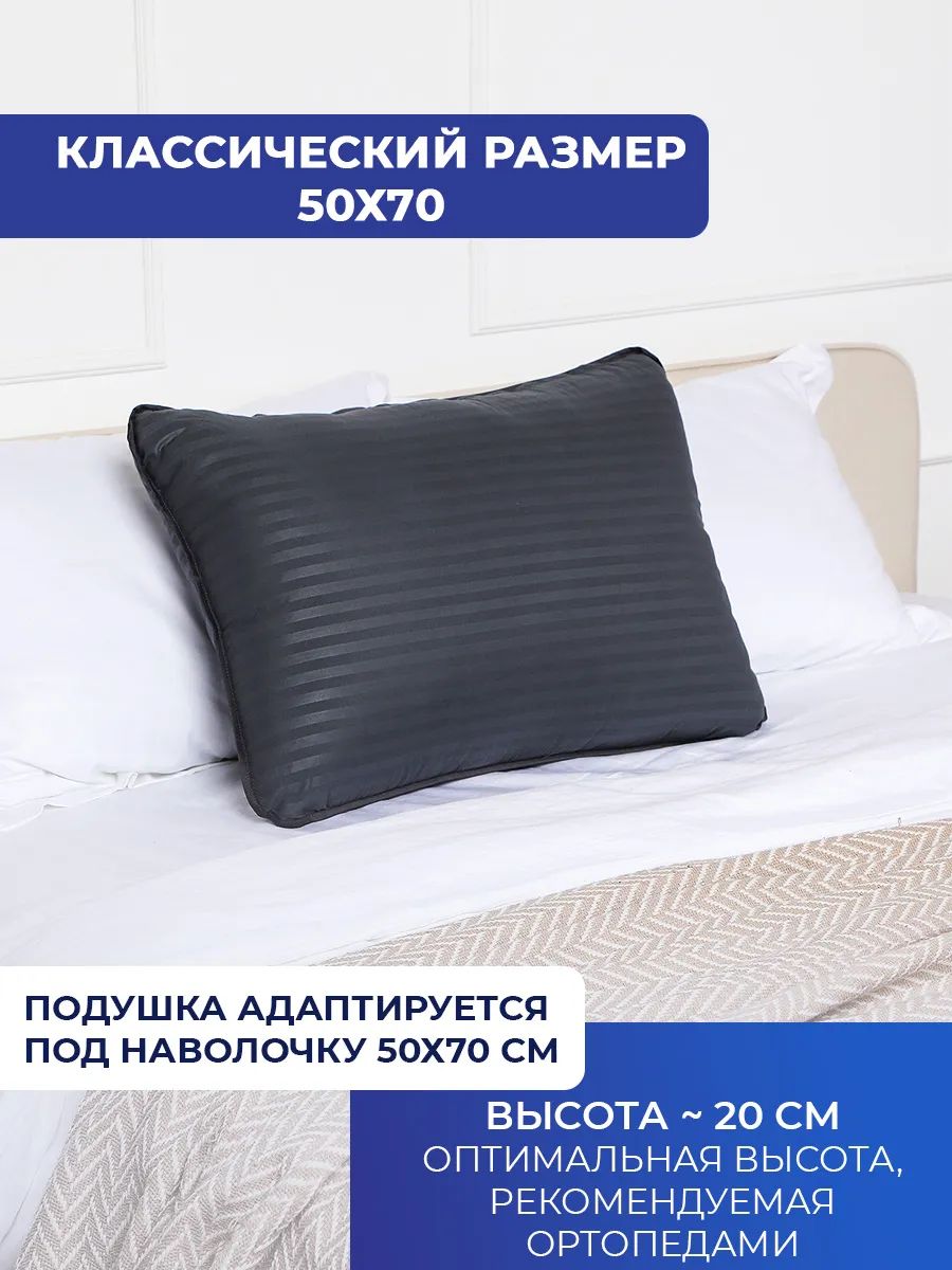 Подушка 50х70 для сна PM, сатин, полиэфирное волокно цвет графит