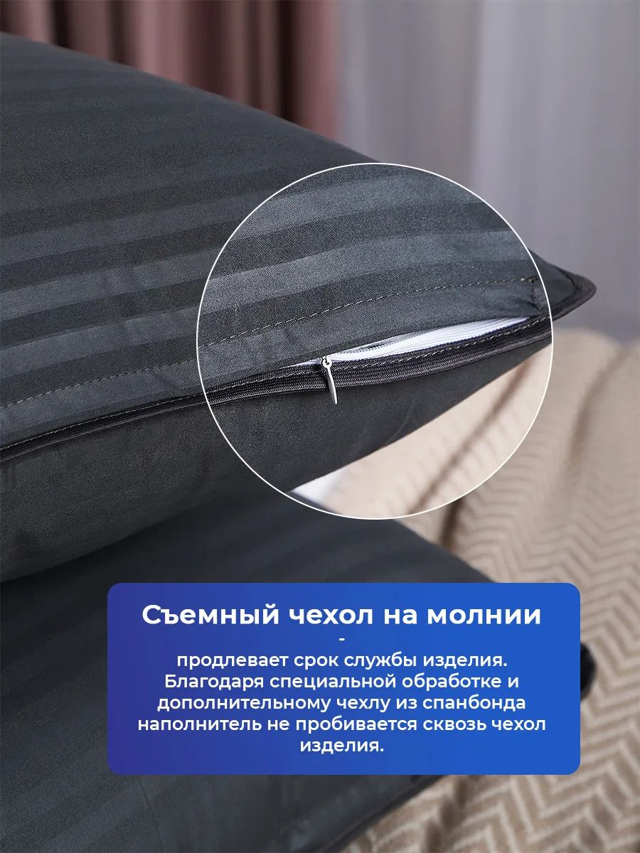 Подушка 50х70 для сна PM, сатин, полиэфирное волокно цвет графит - графит
