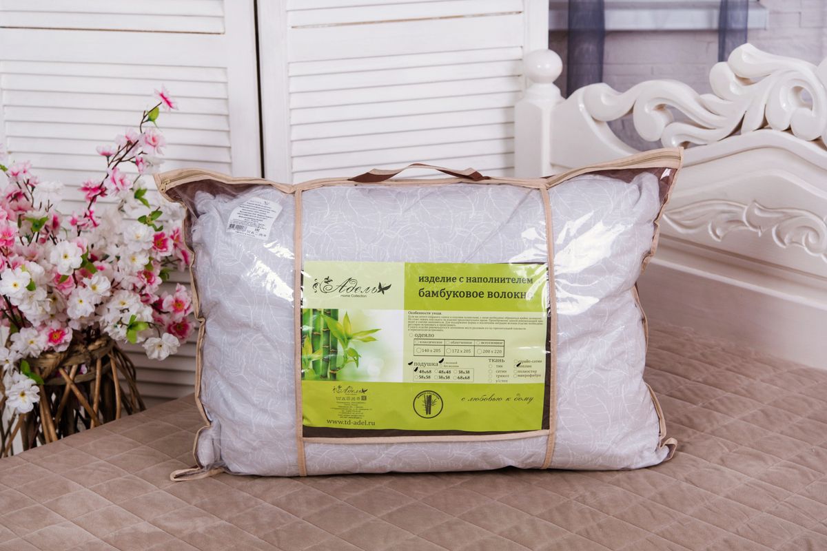 Подушка "Бамбук" поплин на молнии лебпух+бамбук,стег,лента,сумка(Н)