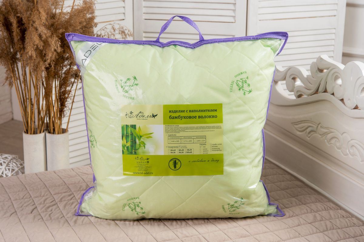 Подушка "Бамбук" тик на молнии лебпух+бамбук,стег,лента,сумка(Н)