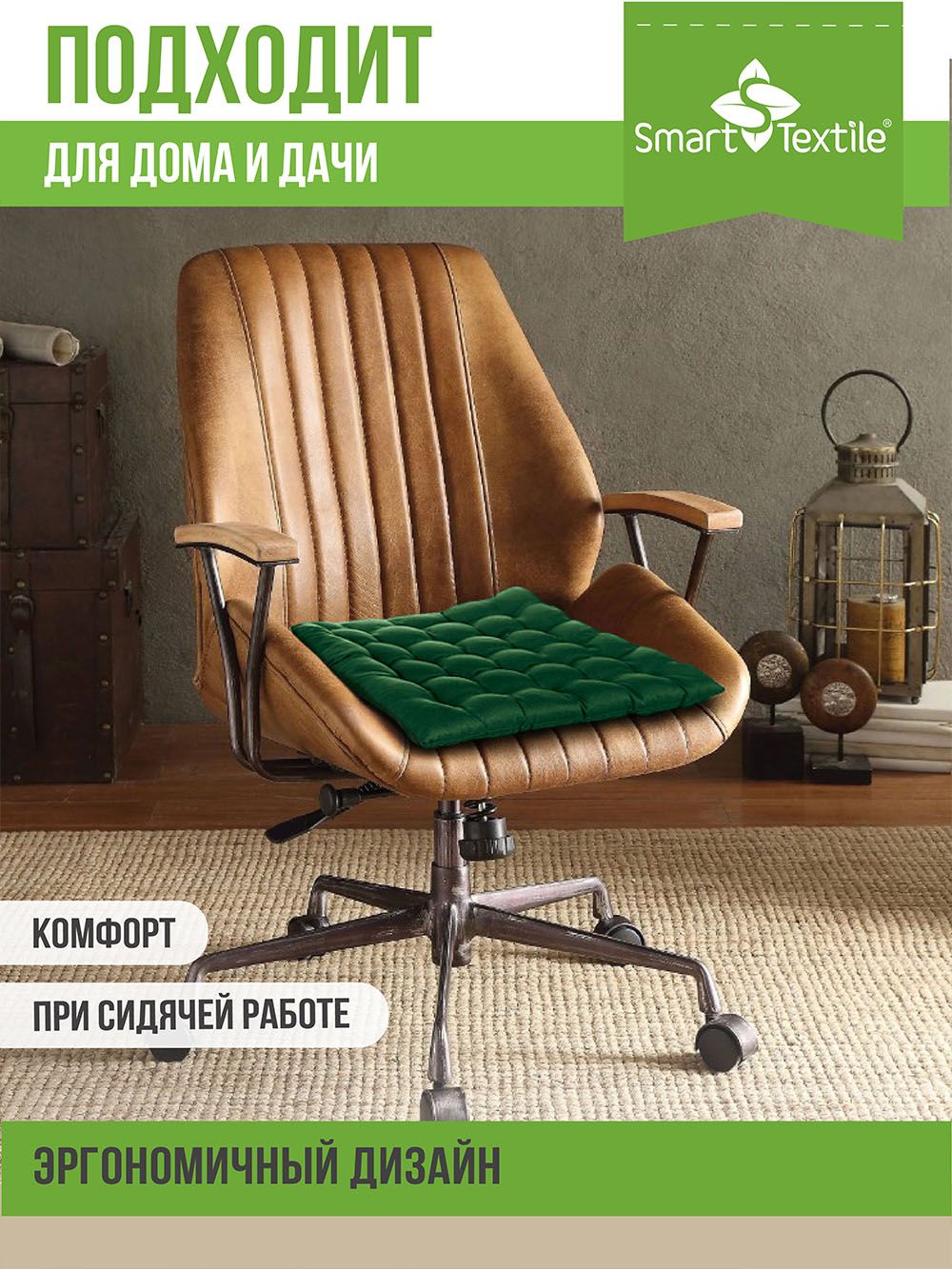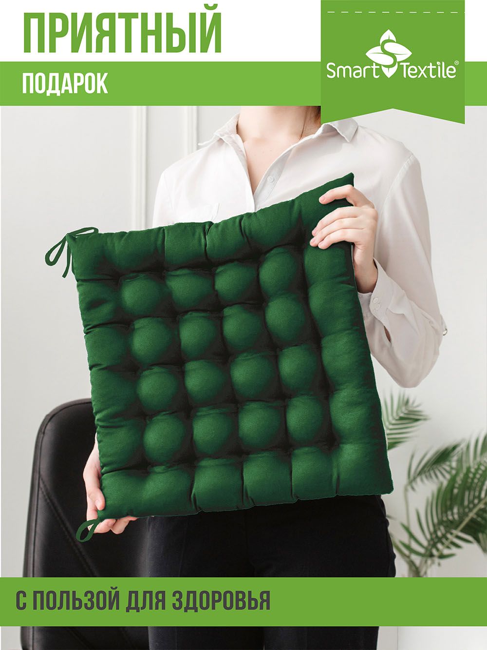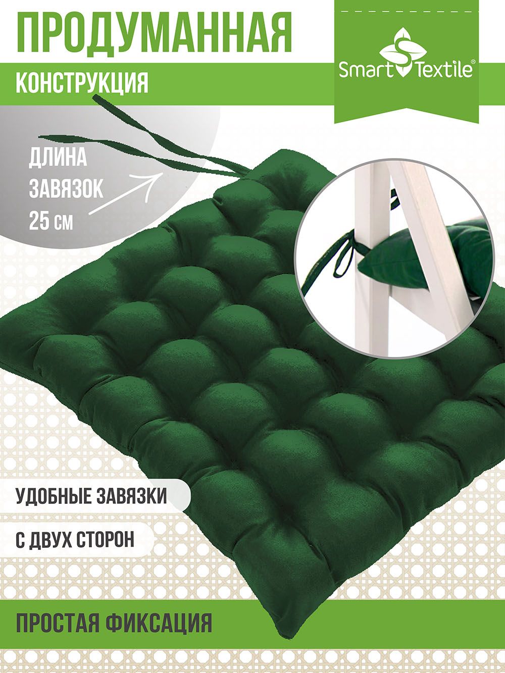 Подушка на сиденье Уют с завязками, р.40х40см - зеленый