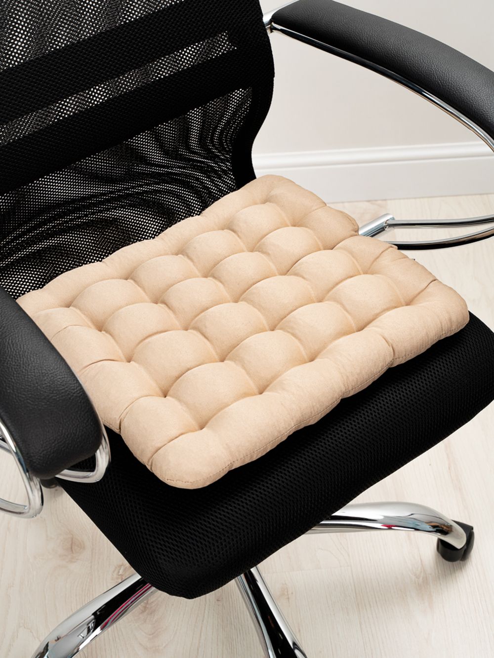 Подушка на стул с лузгой гречихи 40х40 см. Подушка-сидушка. Для тех, кто много времени проводит за компьютером или в автомобиле. Натуральный наполнитель - экологически чистая 100% гречневая лузга, создающая эффект микромассажа. Благодаря своей сыпучей пружинящей структуре такой наполнитель снижает нагрузку на позвоночник, снимает напряжение с поясницы, поддерживает оптимальную температуру тела, оберегая органы малого таза от перегрева. Изделие гипоаллергенно, не накапливает пыль. Подушку полюбят домашние животные, и дети, которым нравится играть на полу. Чехол несъемный. Рекомендованы сухая чистка, проветривание на свежем воздухе. Стирка и отбеливание запрещены.