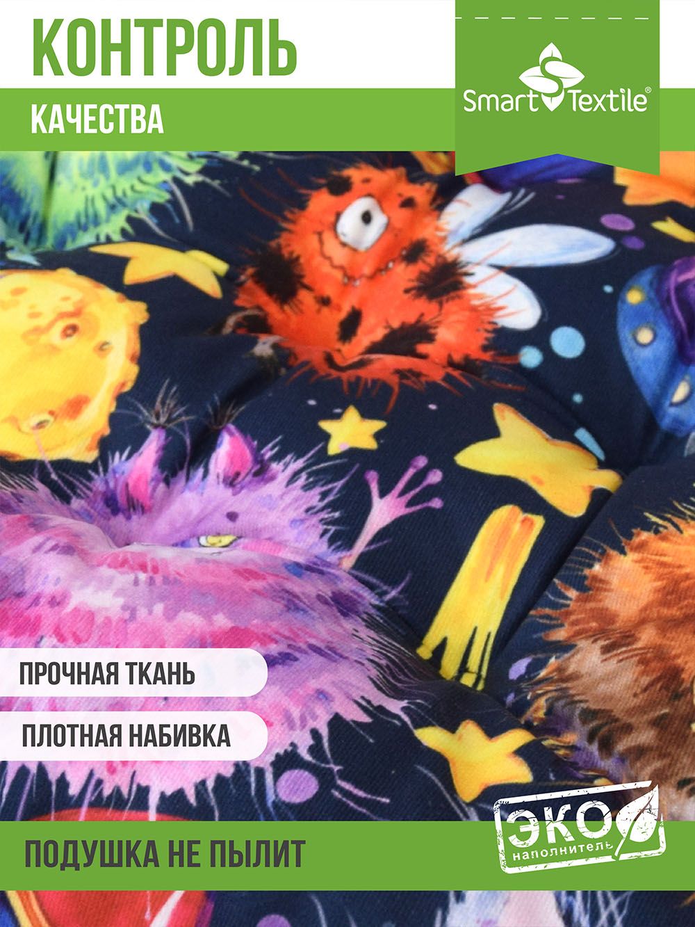 Чехол подушки изготовлен из прочного и износостойкого материала, что обеспечивает долгий срок службы. С помощью застежки-молнии можно регулировать плотность подушки, отсыпав часть наполнителя.