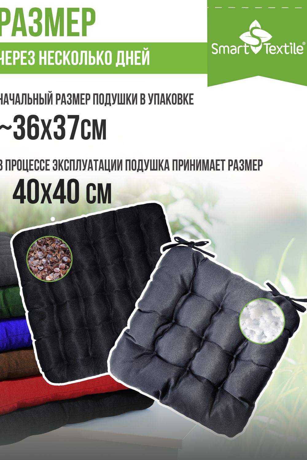 Подушки на сиденье серии "Сюжет" с наполнителем из лепестков лузги гречихи предназначены для повышения комфорта при сидячей работе и предотвращения проблем, связанных с малоподвижным образом жизни.