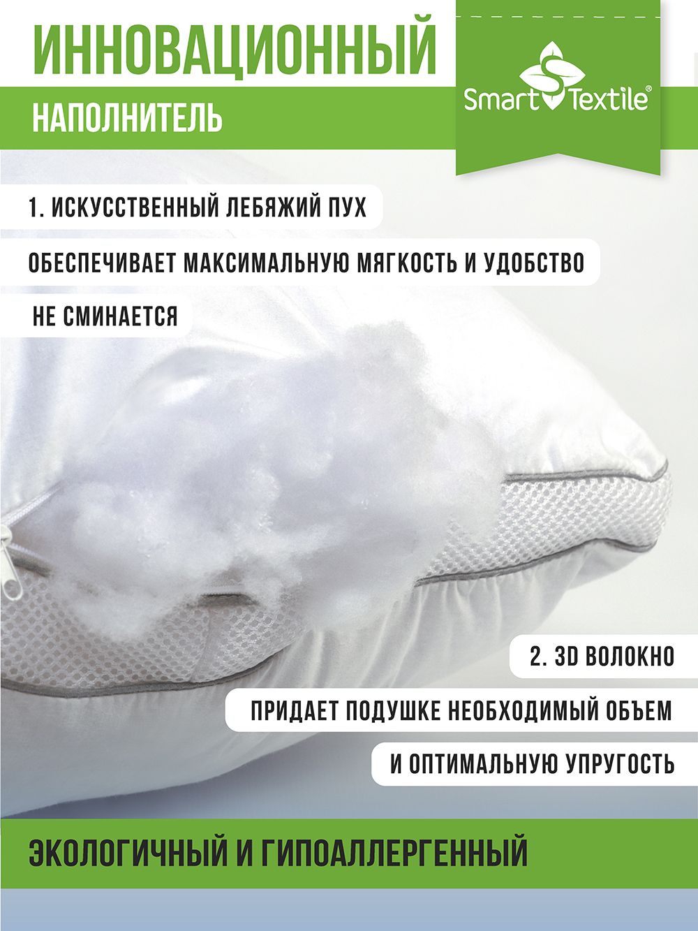 Подушка «Нимфа» - это идеальное решение для комфортного и здорового сна. Она сочетает в себе классику натуральных материалов и современность инновационных. Так, в качестве наполнителя здесь используются сразу два материала. Первый – искусственный лебяжий пух, который обеспечивает максимальную мягкость и удобство, при этом является гипоаллергенным и не накапливает пылевых клещей. Второй – 3d волокно, придающий подушке необходимый объем и оптимальную упругость.