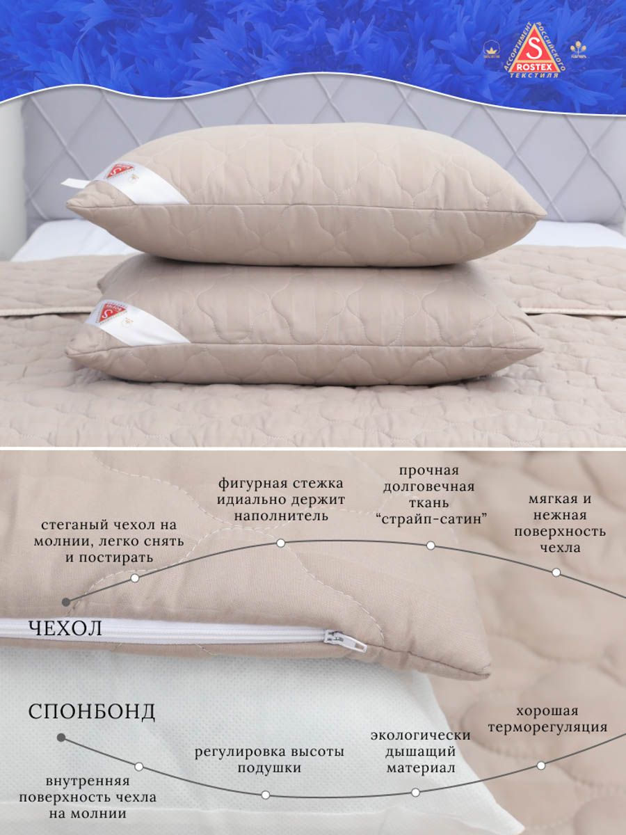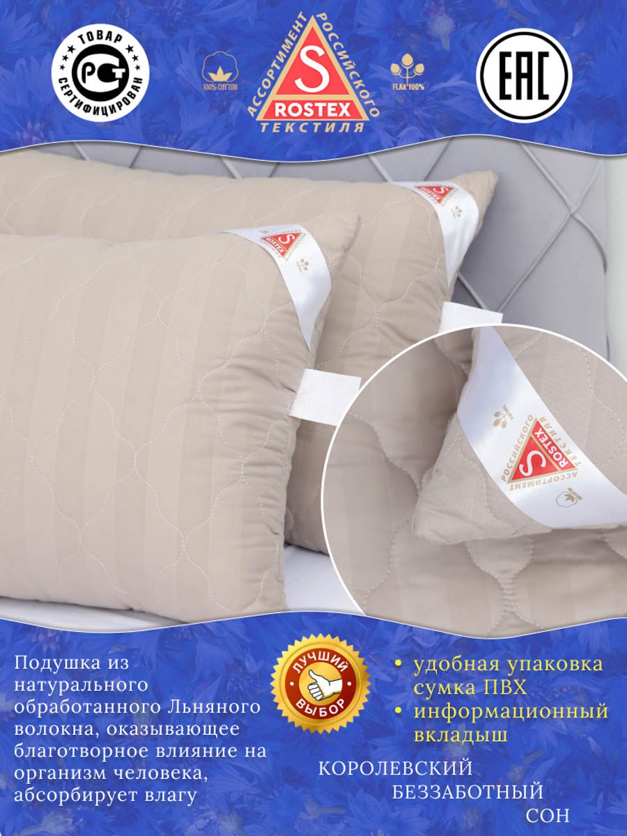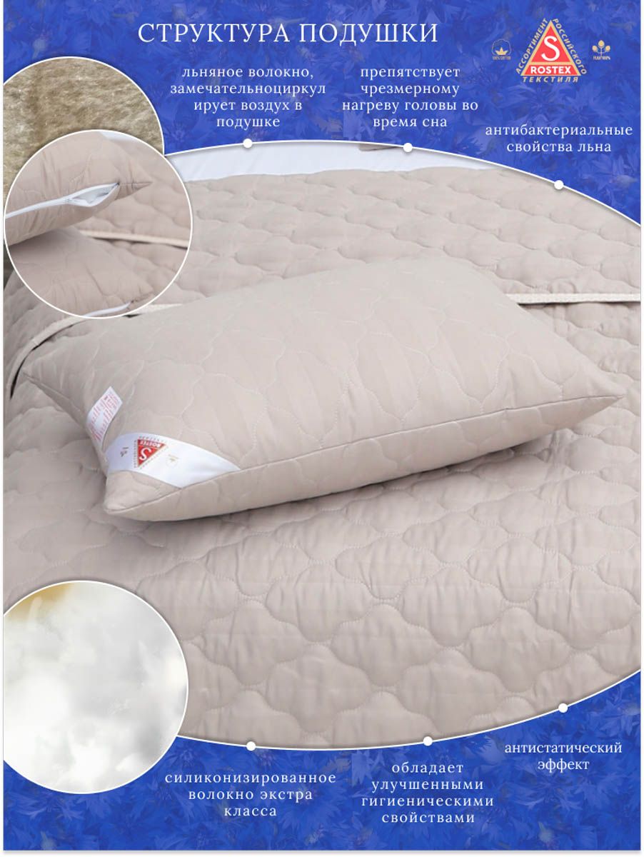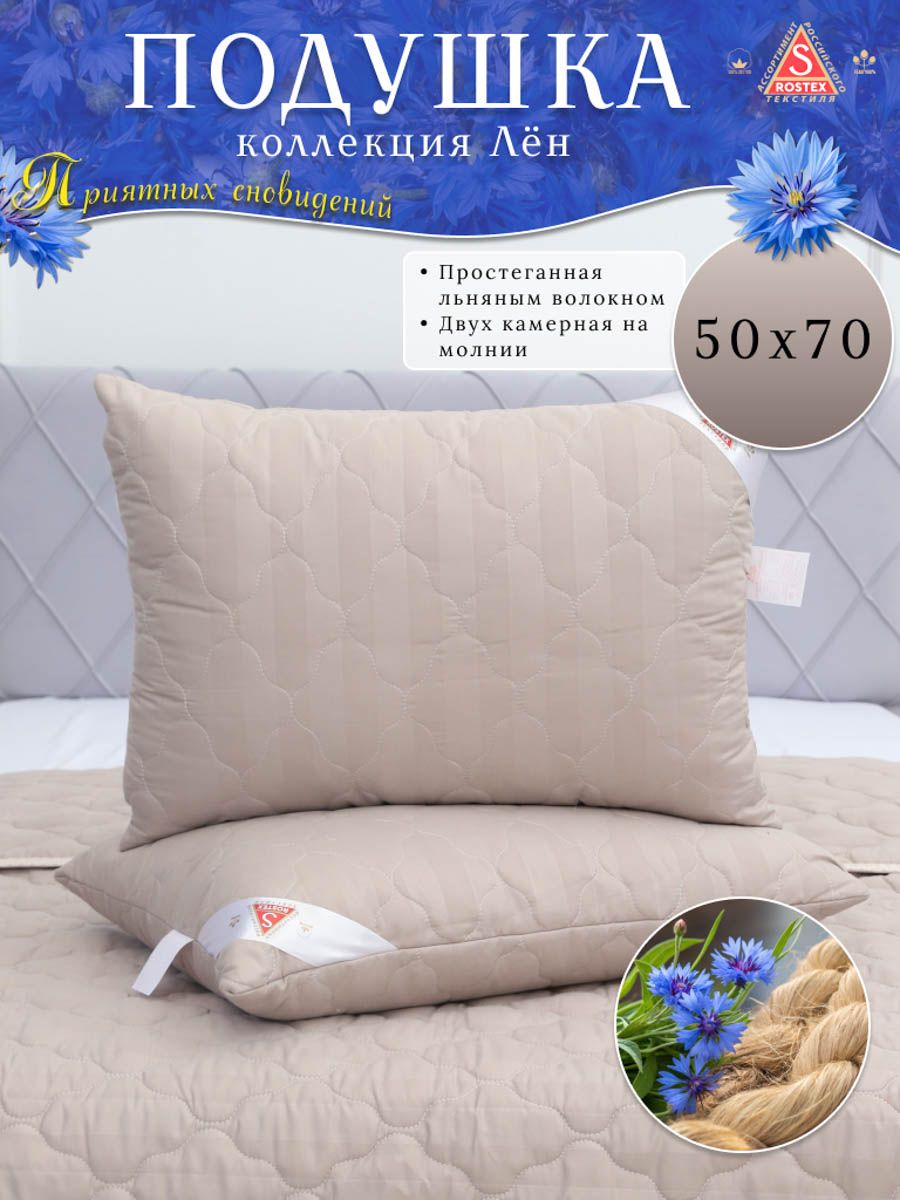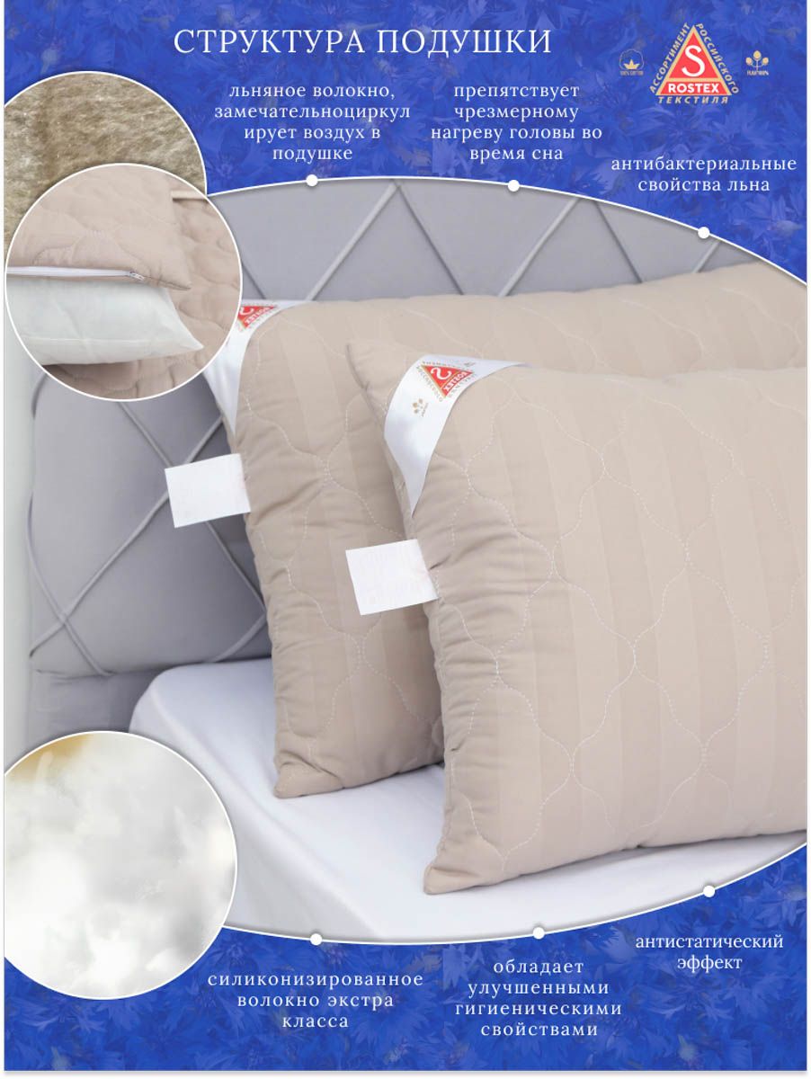 Подушка Лён двухкамерная на молнии. Съёмный чехол удобен для стирки, состоящий из высококачественной ткани страйп-сатин стёганный термоскреплённым льняным наполнителем 100гр.м2,плюс внутренний чехол состоящий из спанбонда на молнии для регулировки мягкости наполнителя состоящего из силиконизированного антибактериального волокна, обладающего улучшеными гигиеническими характеристиками. Льняные волокна пронизаны воздухом, который легко циркулирует в подушках-это препятствует черезмерному нагреву головы во время сна, оказывают благотворное влияние на организм человека.