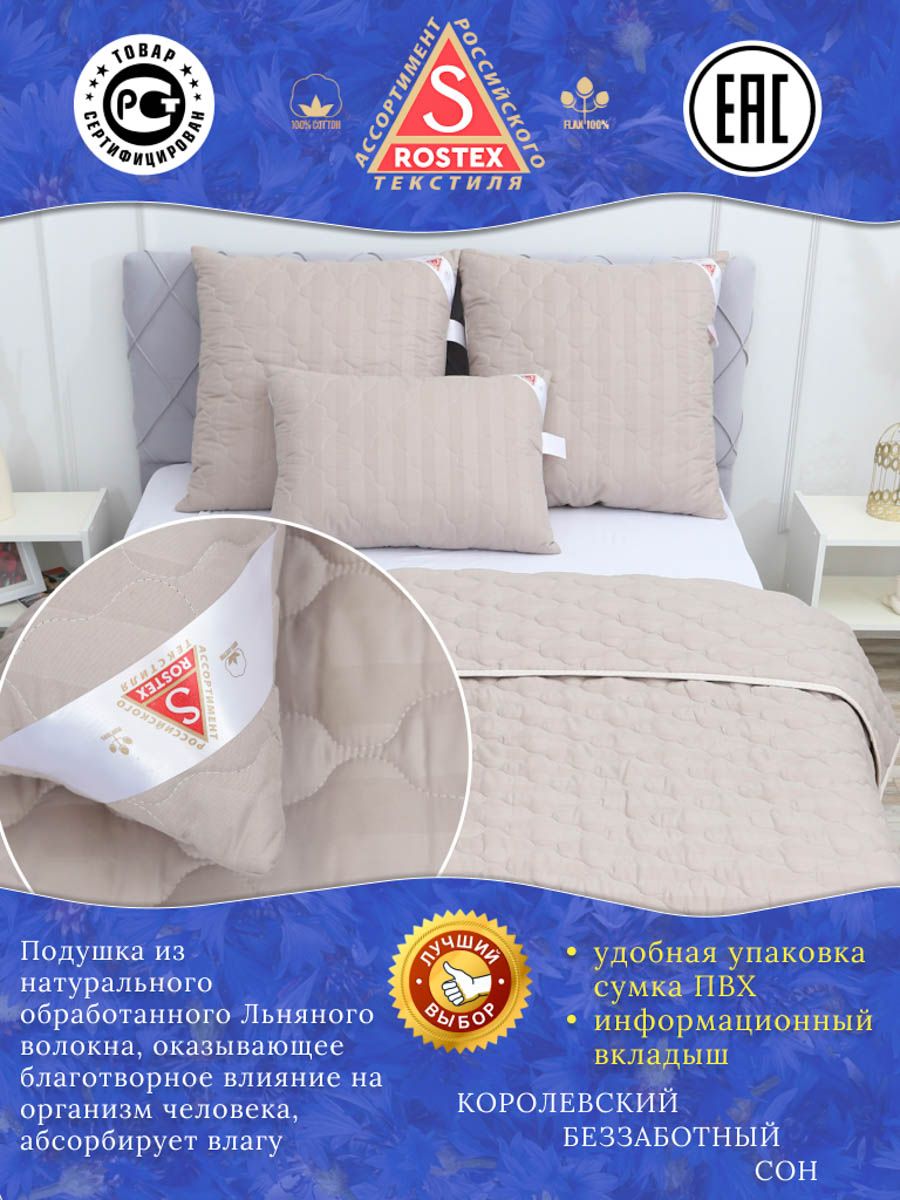 Подушка простёганная Льном коллекция Здоровый сон