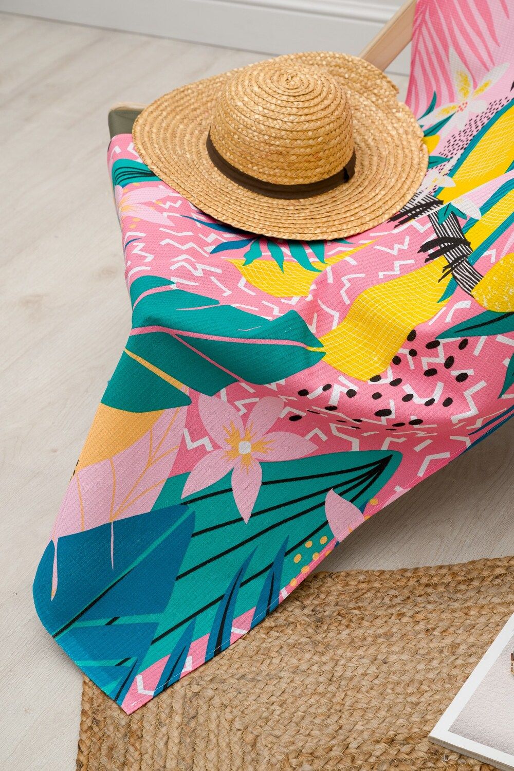 Большое банное полотенце Рандеву, отличное решение для отпуска. Вафельное полотенце с попугаями имеет отличную впитывающую способность, при этом полотенце достаточно компактно, что позволяет его брать с собой. Полотенце универсально, подойдет как для пляжа, бани, сауны, так и для тренировки. Размер полотенца 150*100, по длинной стороне пришита петелька. Изделие представлено в двух цветах, голубой и розовый.