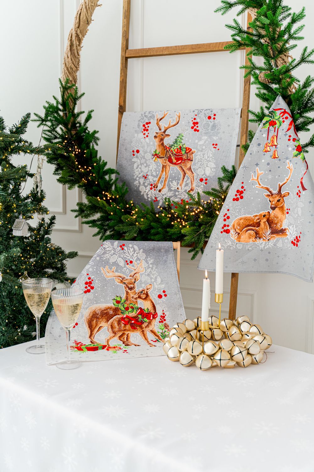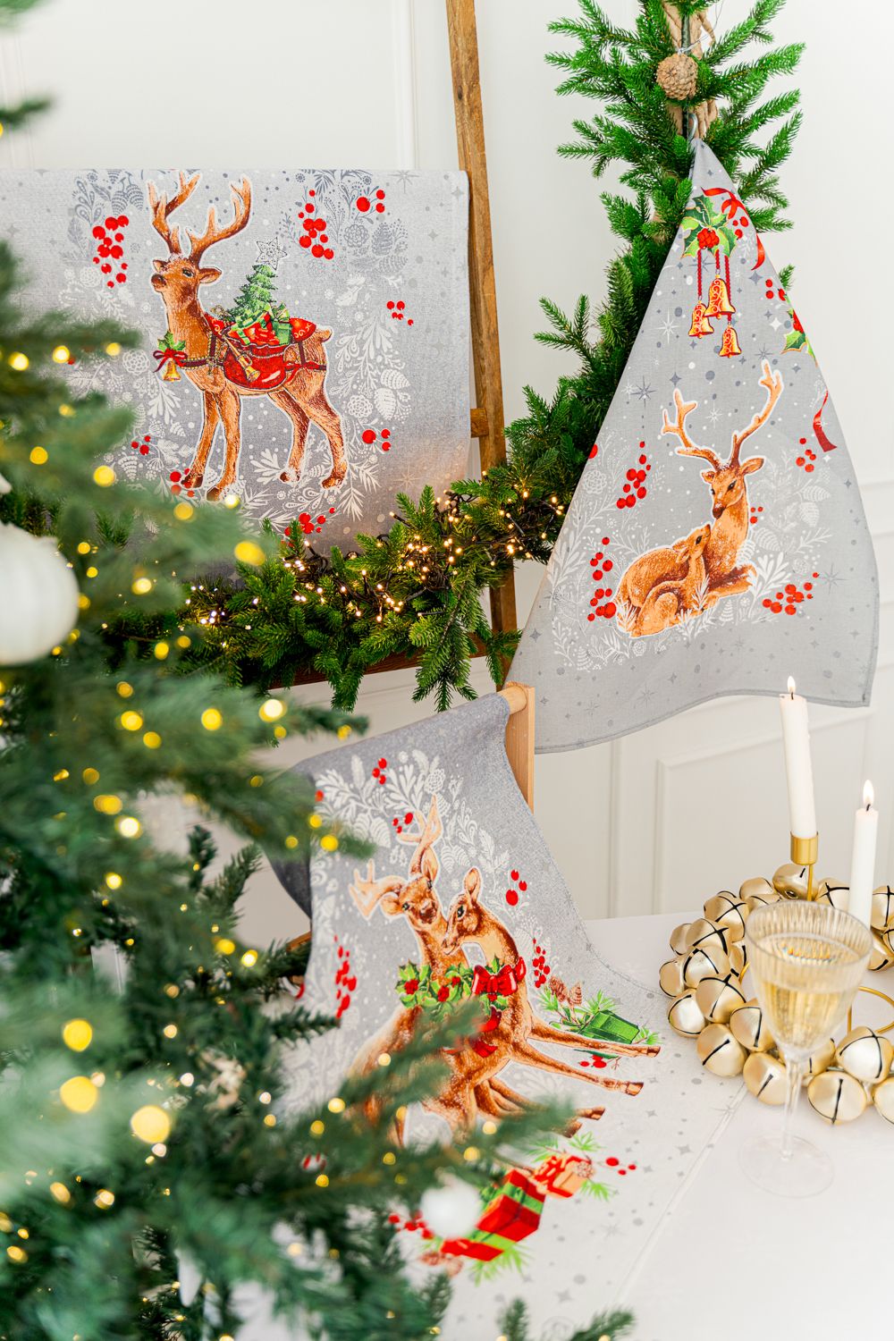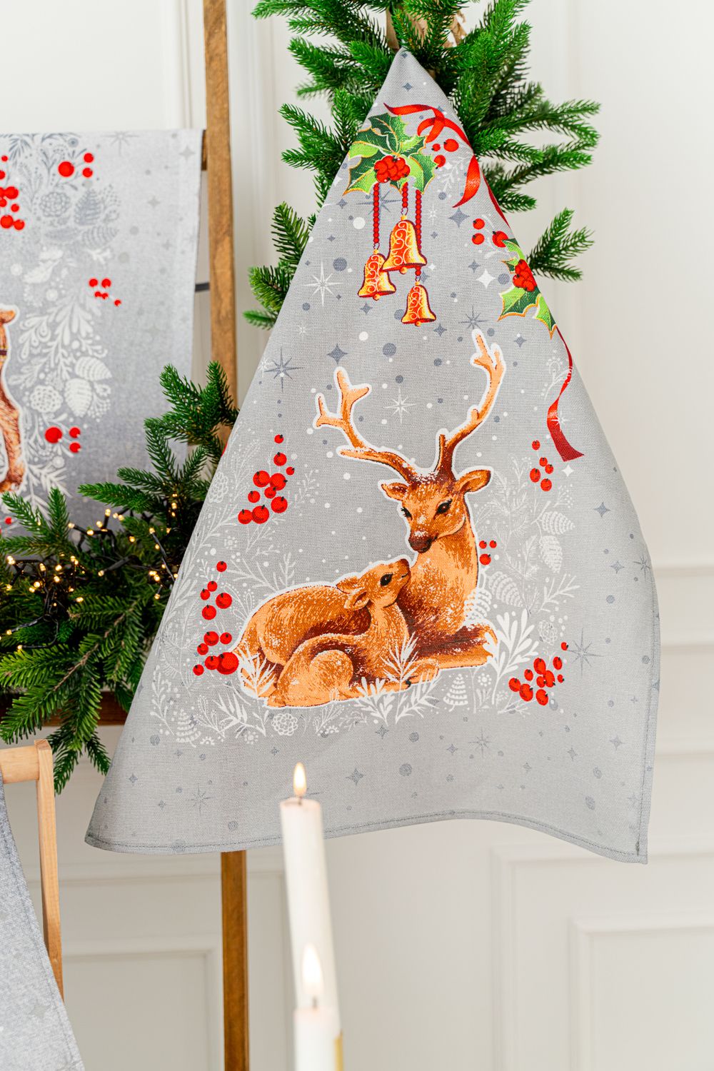 Сказочный набор полотенец «Полярная звезда» украсят ваш стол в новогоднюю ночь. Полотенца с милыми оленями подарят ощущение волшебства, сказки и новогоднего чуда. Каждое полотенце изготовлено из 100% хлопка и имеет удобную петельку. Новогодние полотенца могут стать приятным подарком себе и близким. Кухонные полотенца изготовлены из плотной рогожки и имеют индивидуальный рисунок на каждом полотенце.