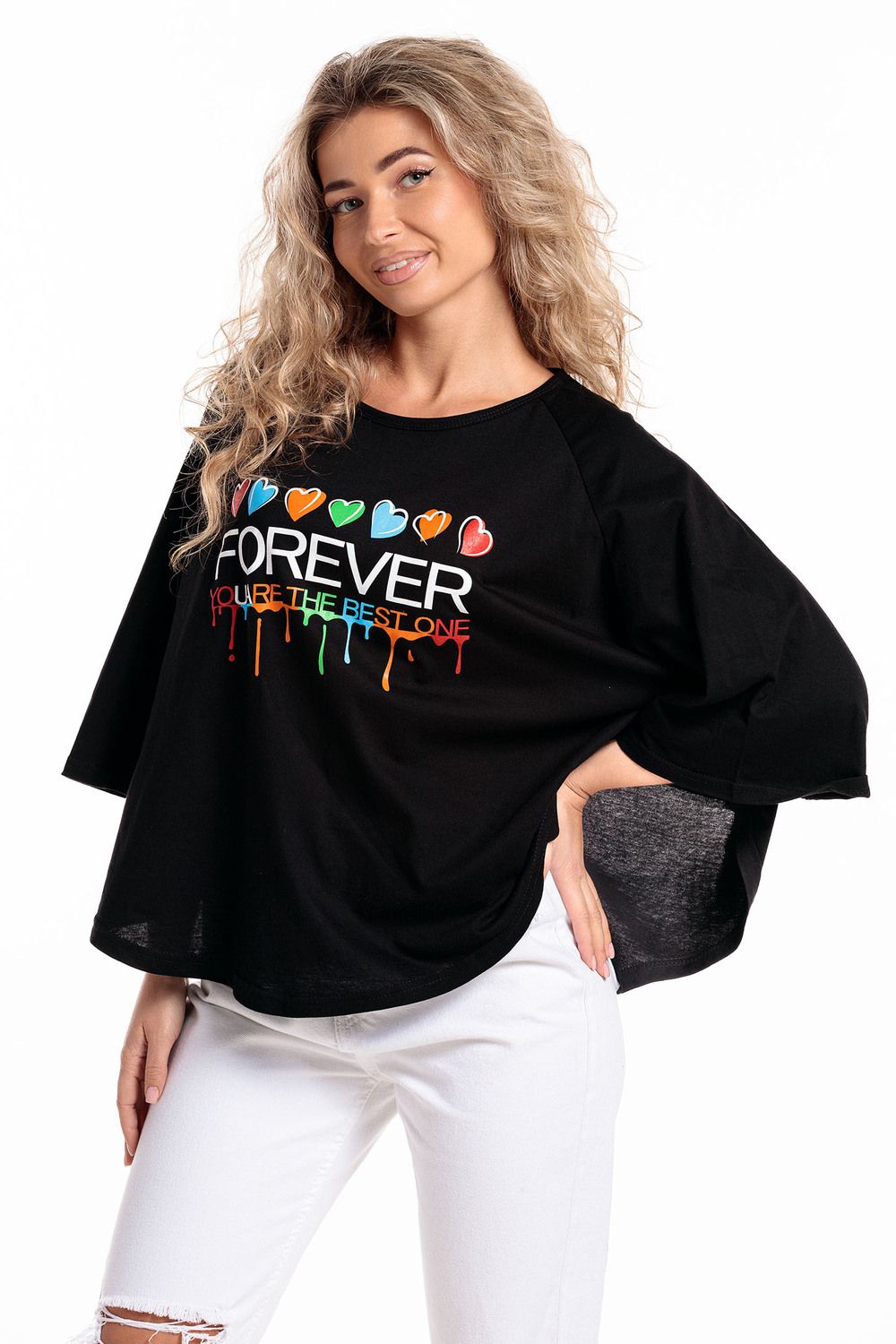 Пончо туника женская - черн.печать-Forever
