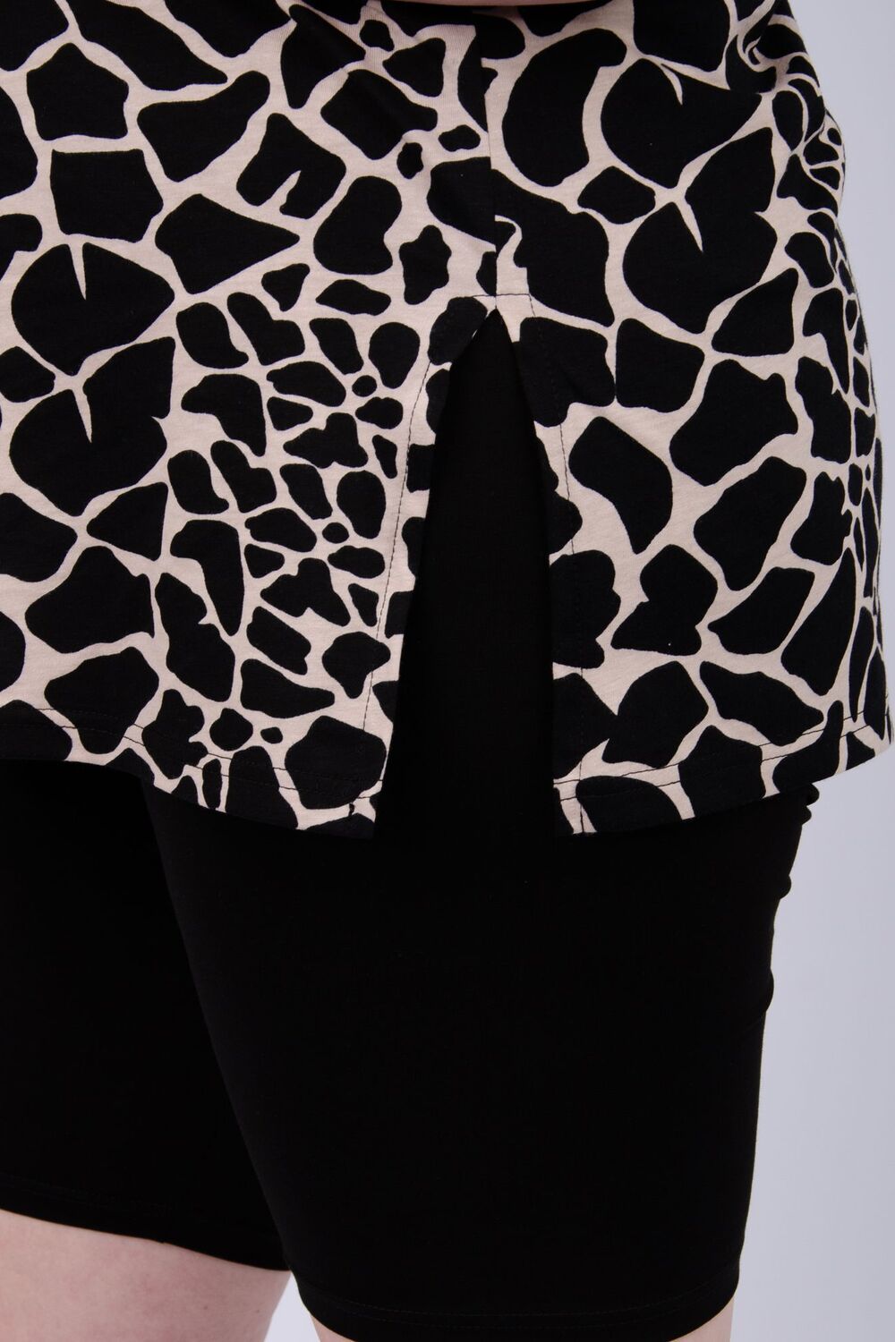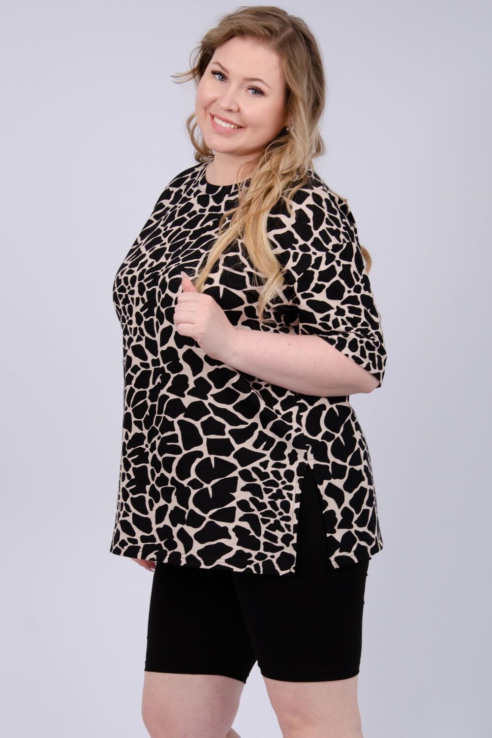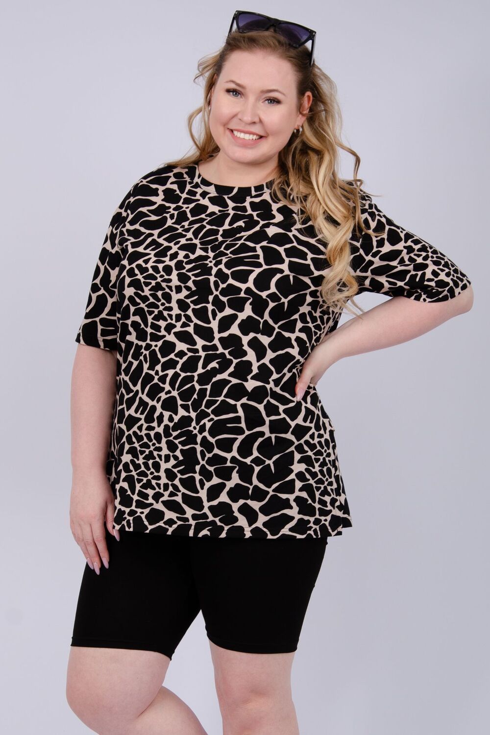 Летний женский трикотажный костюм с велосипедками. Футболка с коротким рукавом, для более комфортной посадки на фигуре. По бокам футболки женской выполнены разрезы . Этот костюм летний с велосипедками больших размеров будет любимой одеждой вашего домашнего гардероба. Широкий размерный ряд включает в себя большие размеры одежды. Велосипедки костюма выполнены из хлопка с эластаном.