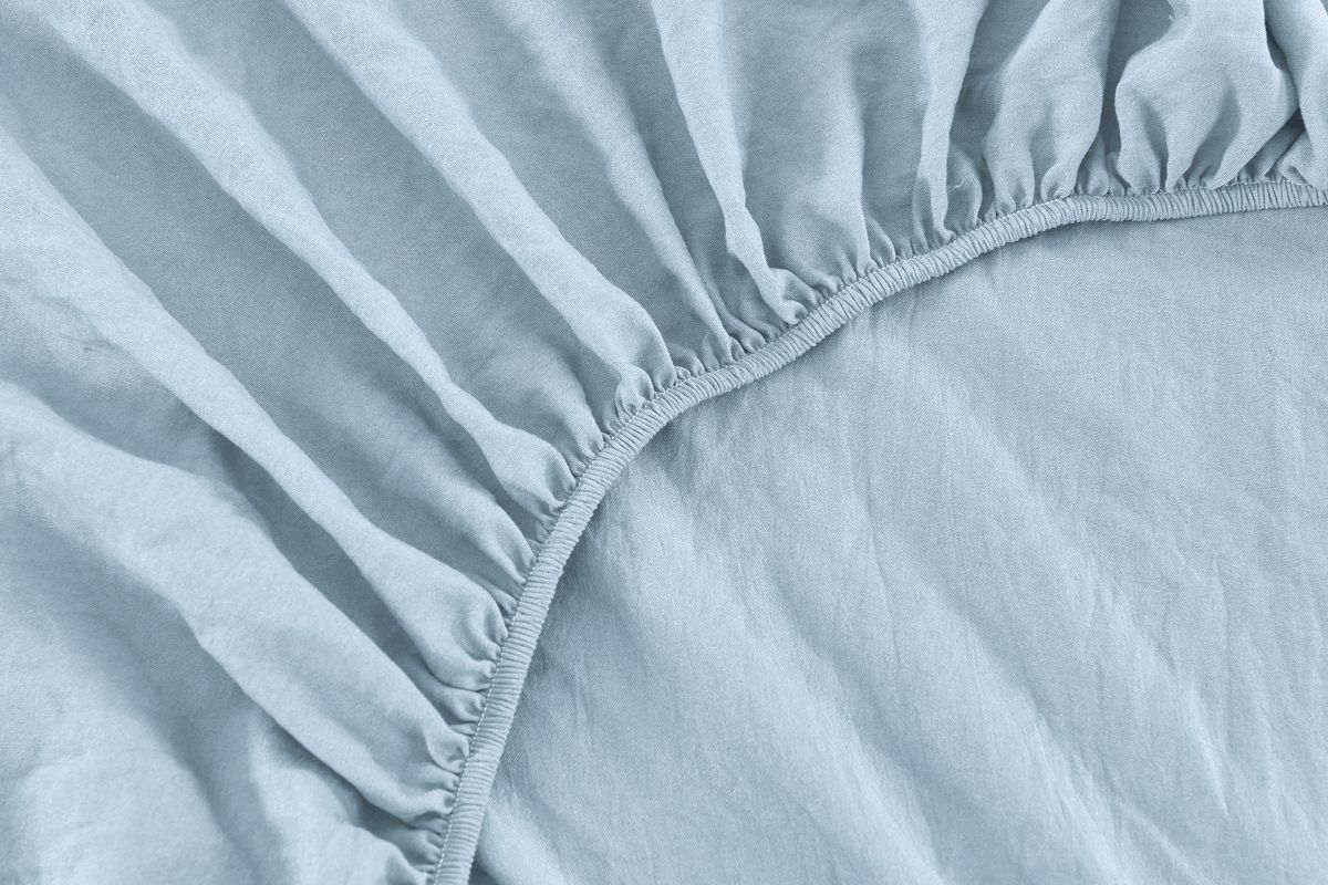 Простыня на резинке, с высотой борта 25 см "boiled cotton" - Вареный (стираный) хлопок» - голубой
