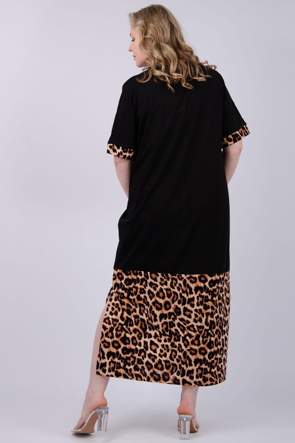Рамина платье женское - черный/леопард на бежевом