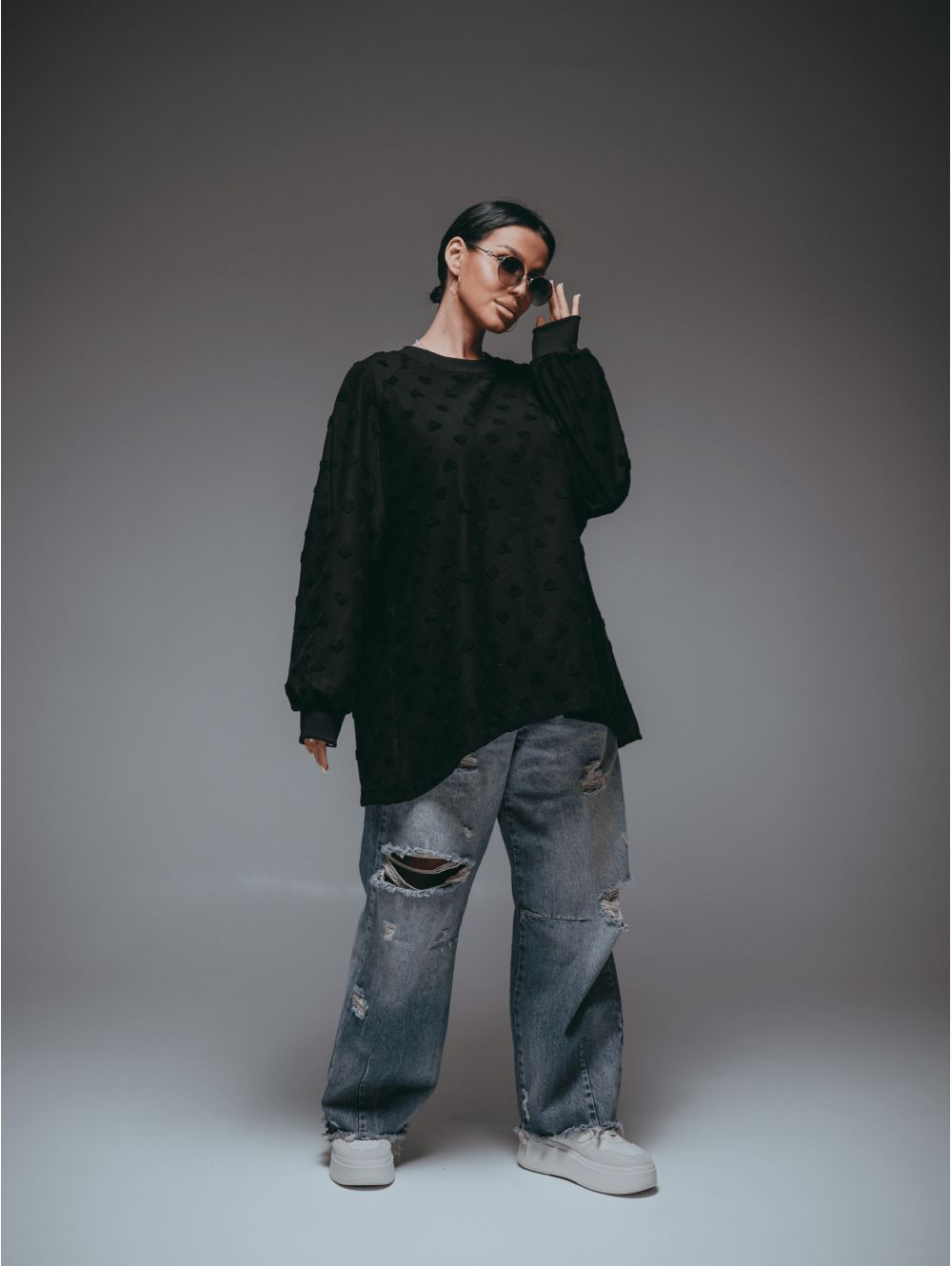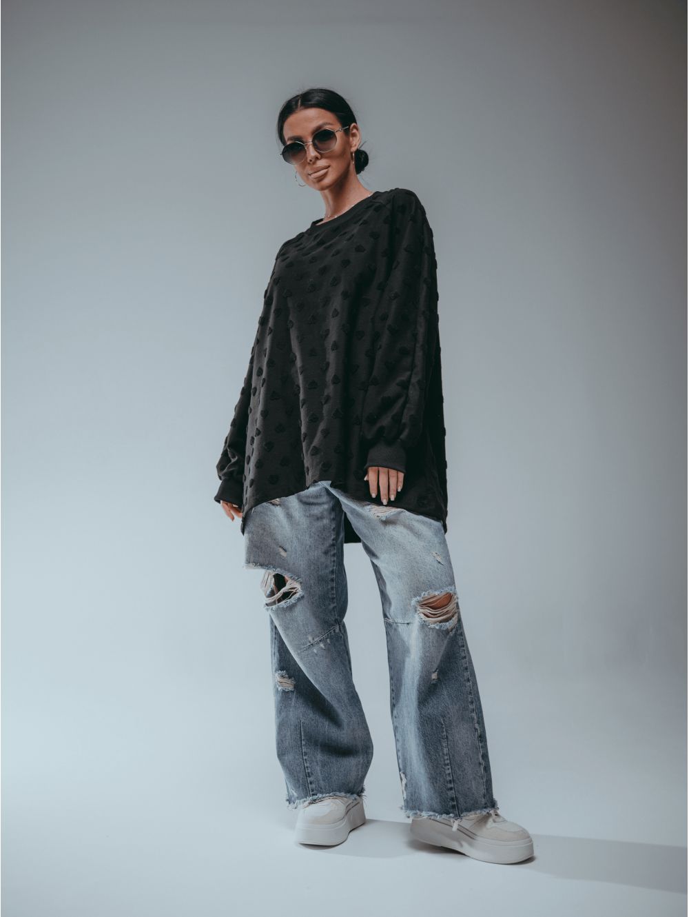 Свитшот oversize с рукавом реглан. Низ рукава на манжете из кашкорсе.