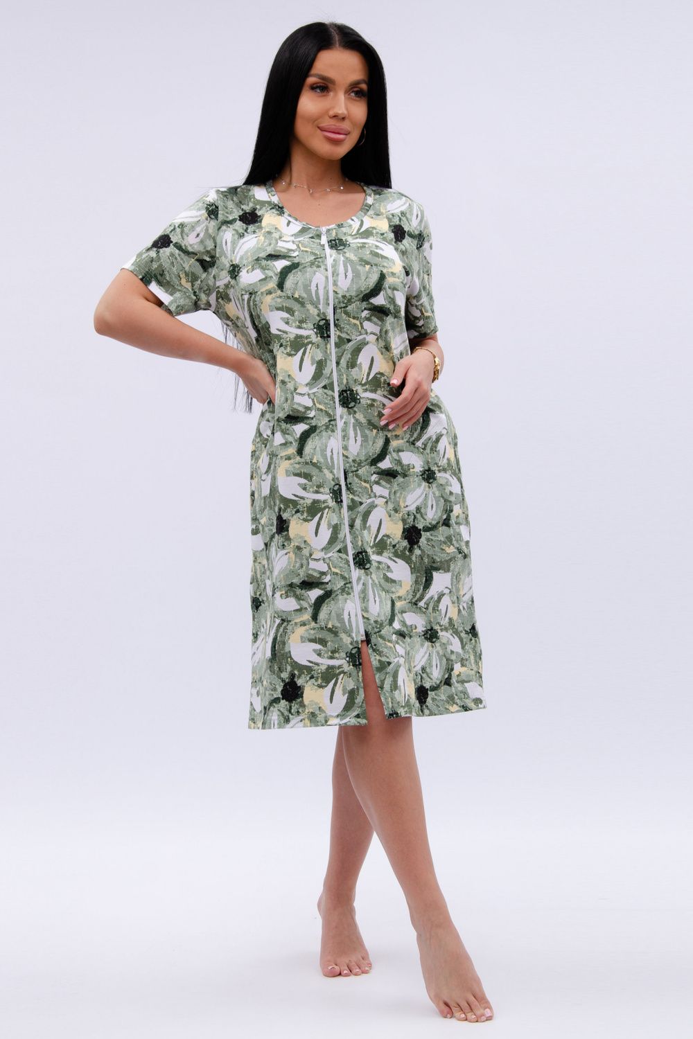 Женский халатик на молнии – самая распространенная и универсальная одежда для домашнего отдыха и хозяйственных хлопот. После трудного рабочего дня, приходя домой, первым делом хочется переодеться. И данная модель это идеальный вариант среди представительниц прекрасной половины человечества. Модель выполнена из 100% хлопчатобумажной ткани.