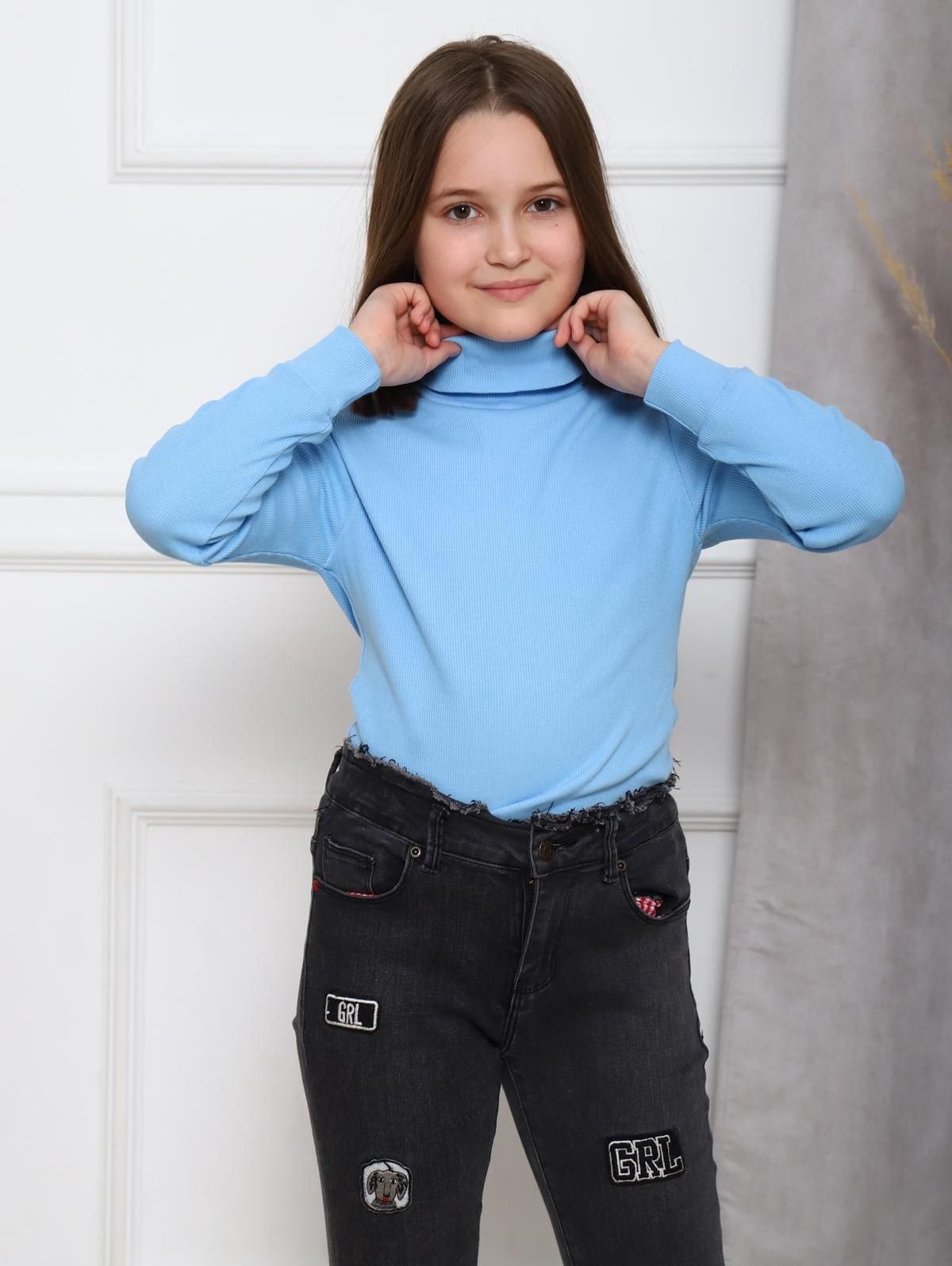 Базовая детская водолазка изготовлена из ткани кашкорсе. Мягкая, комфортная, функциональная. Водолазка прилегающего силуэта, с длинным рукавом. Подходит для прохладной и холодной погоды. Хорошо сочетается с брюками, джинсами.