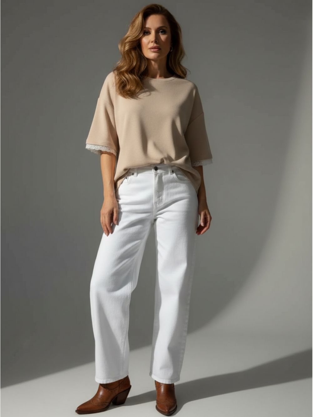Романс — это футболка-настроение, которая соединяет в себе уютную расслабленность оверсайз кроя и изысканную женственность кружева.