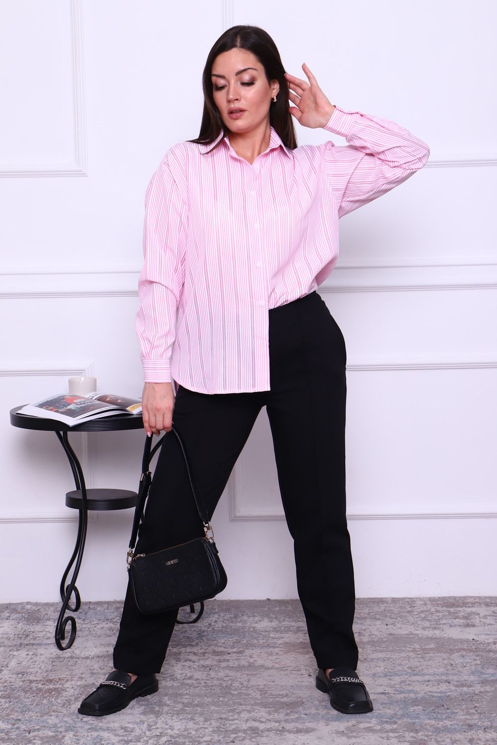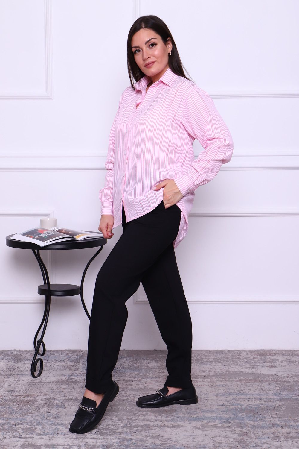 Рубашка LenaLineN арт. 02-001-22 - полоса розовая