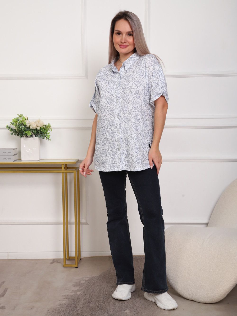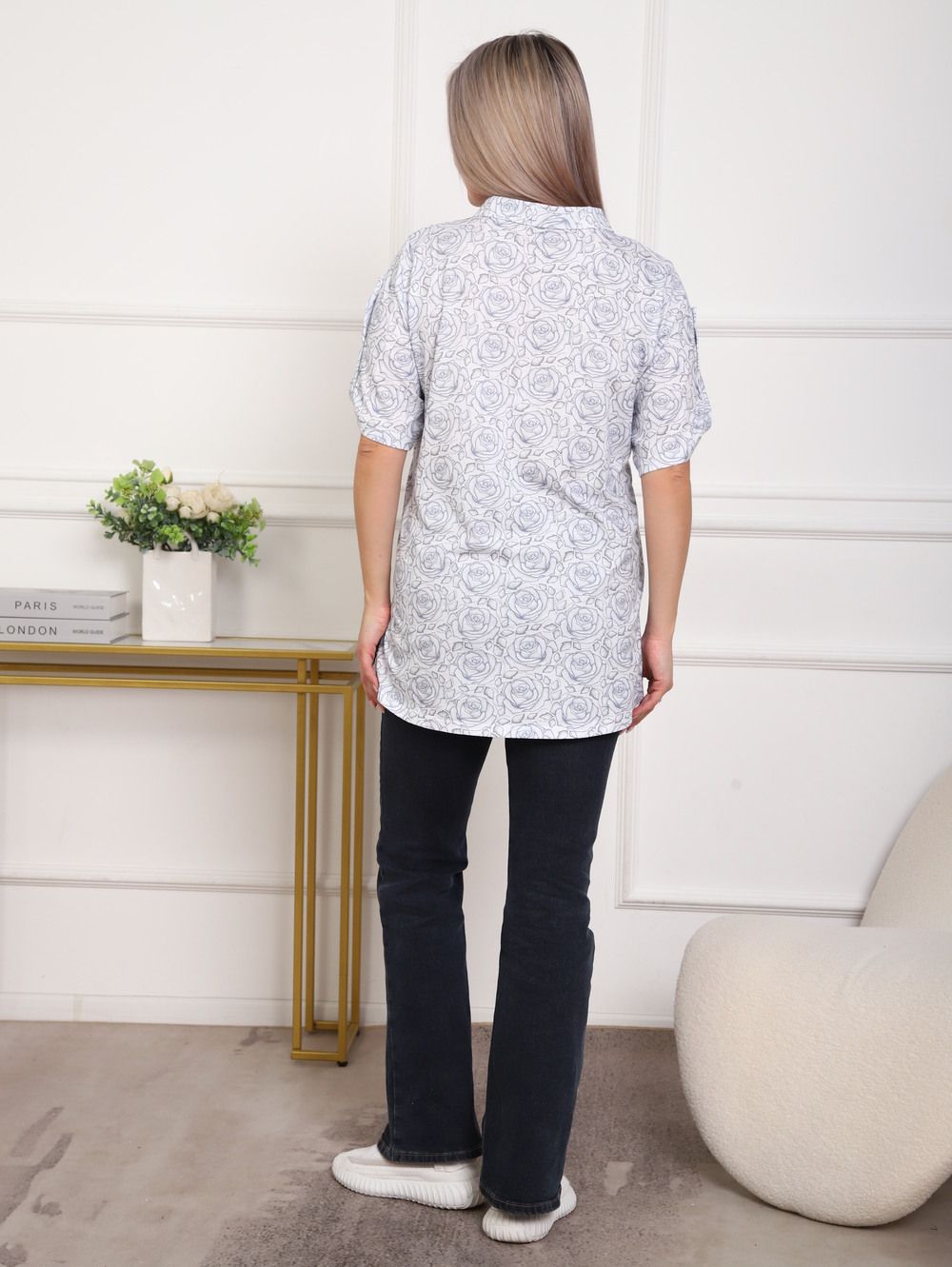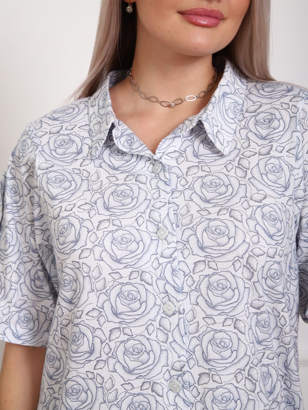 Рубашка женская арт. 5005 - белый+розы