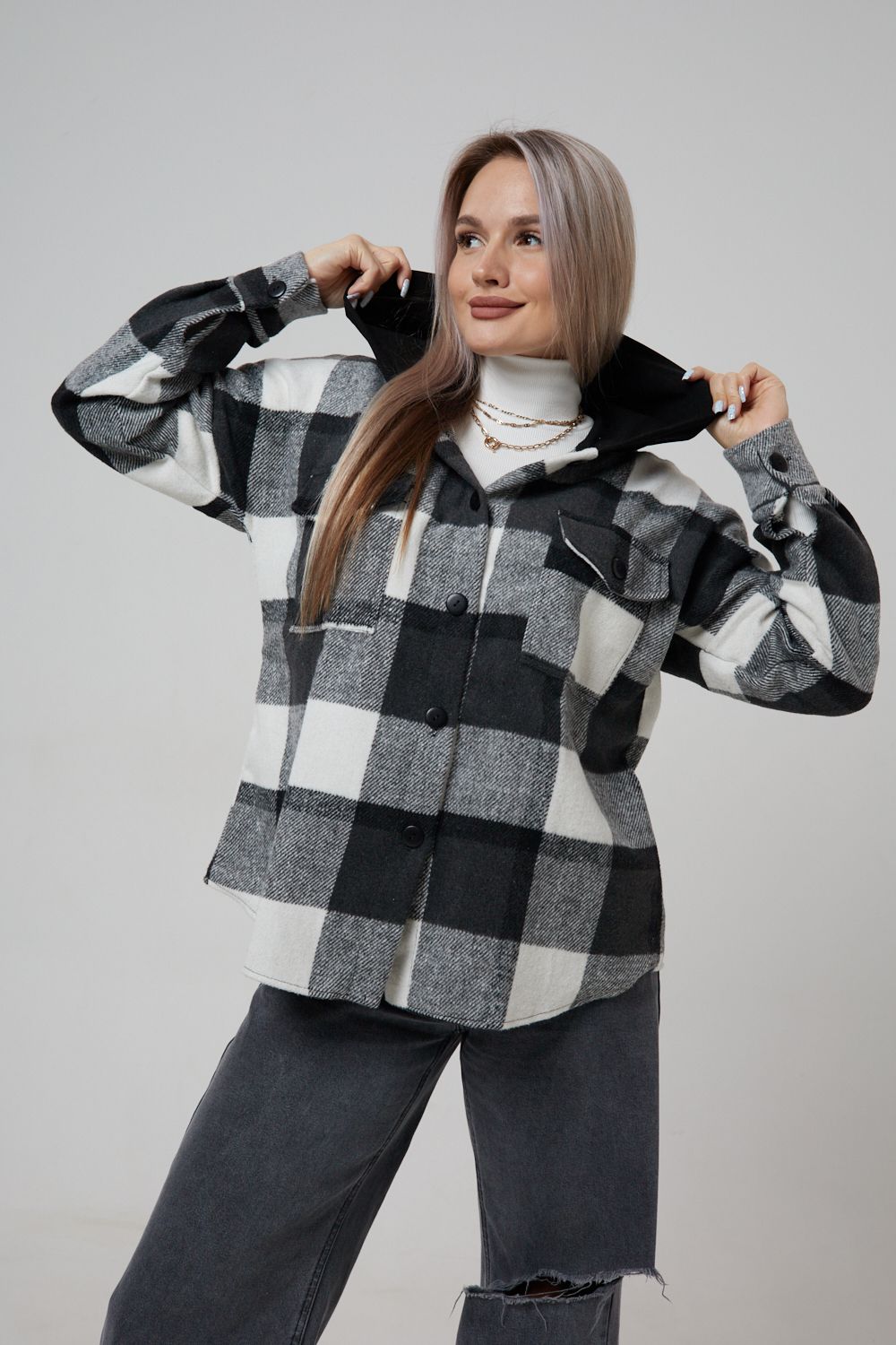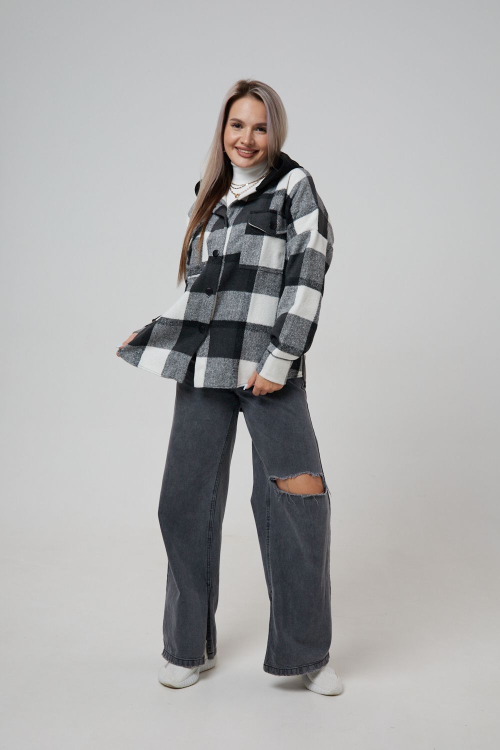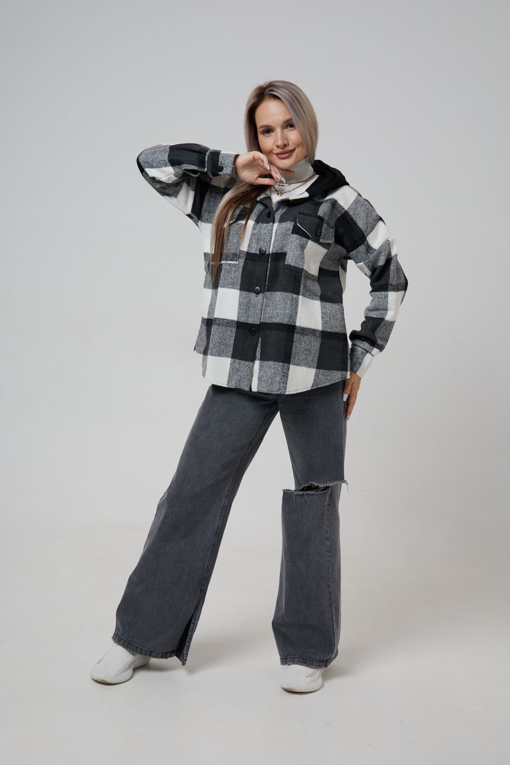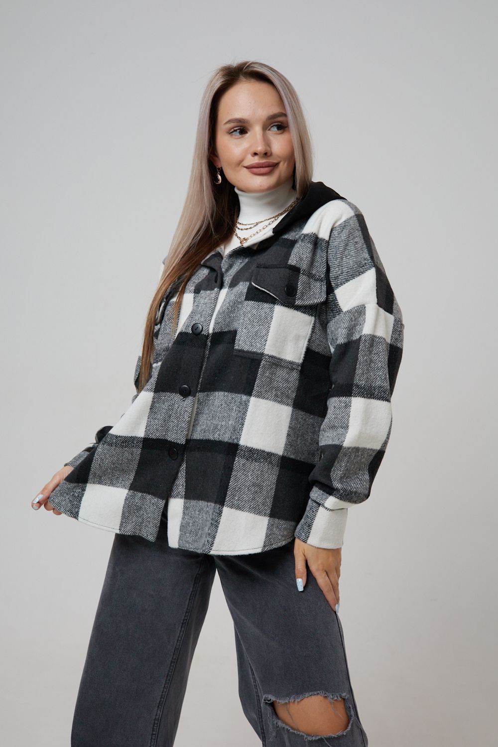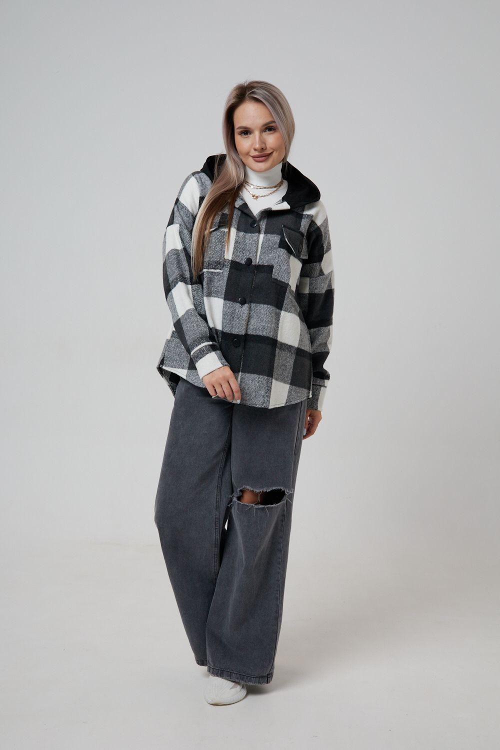 Представляем вам стильную и уютную рубашку в клетку с капюшоном от OMG – идеальный выбор для современных женщин, ценящих комфорт и индивидуальность! Эта рубашка, выполненная из плотного трикотажа, станет незаменимой вещью в вашем гардеробе. Благодаря своему широкому оверсайз крою она прекрасно подойдет для похода в институт или школу, для беременных и кормящих мам, а также для тех, кто любит свободный и комфортный стиль. Модный принт в клетку добавит нотку оригинальности вашему образу, а капюшон защитит от ветра и холода. Рубашка с длинными рукавами и накладными карманами – это практичный и стильный вариант как для офиса, так и для повседневной носки. Она прекрасно сочетается как с джинсами, так и с юбками, создавая как casual, так и более нарядные образы. Этот универсальный предмет гардероба для весенних и летних вечеров станет отличным подарком для женщин на любой праздник.