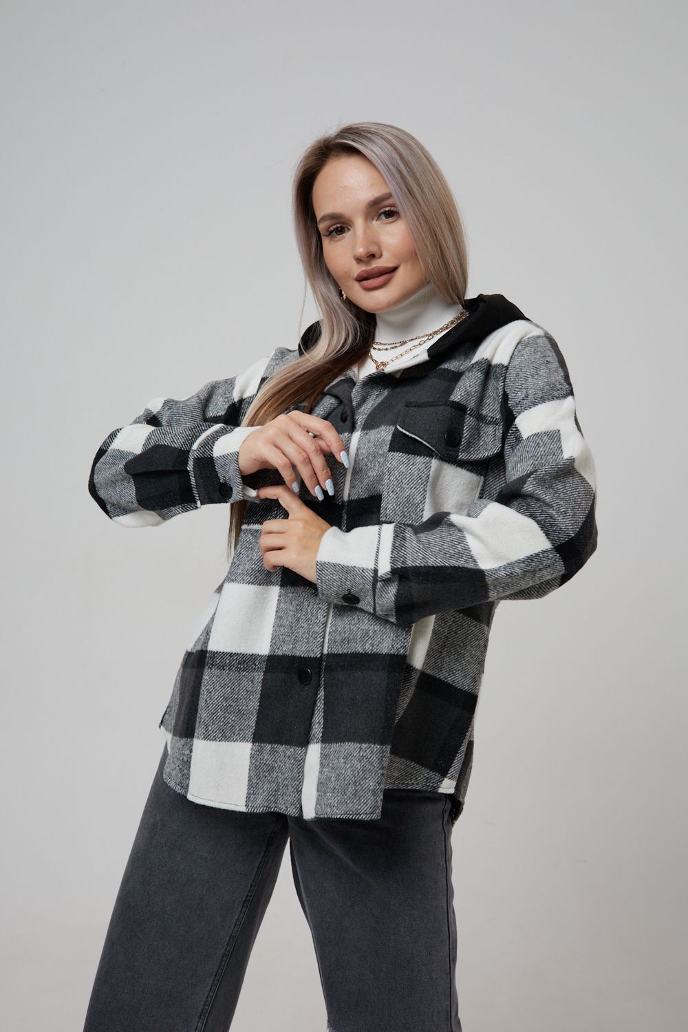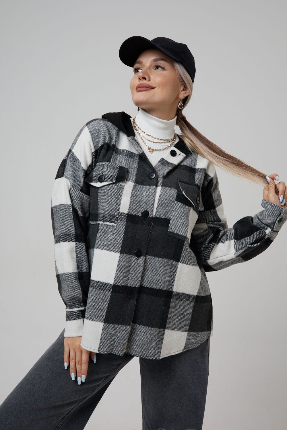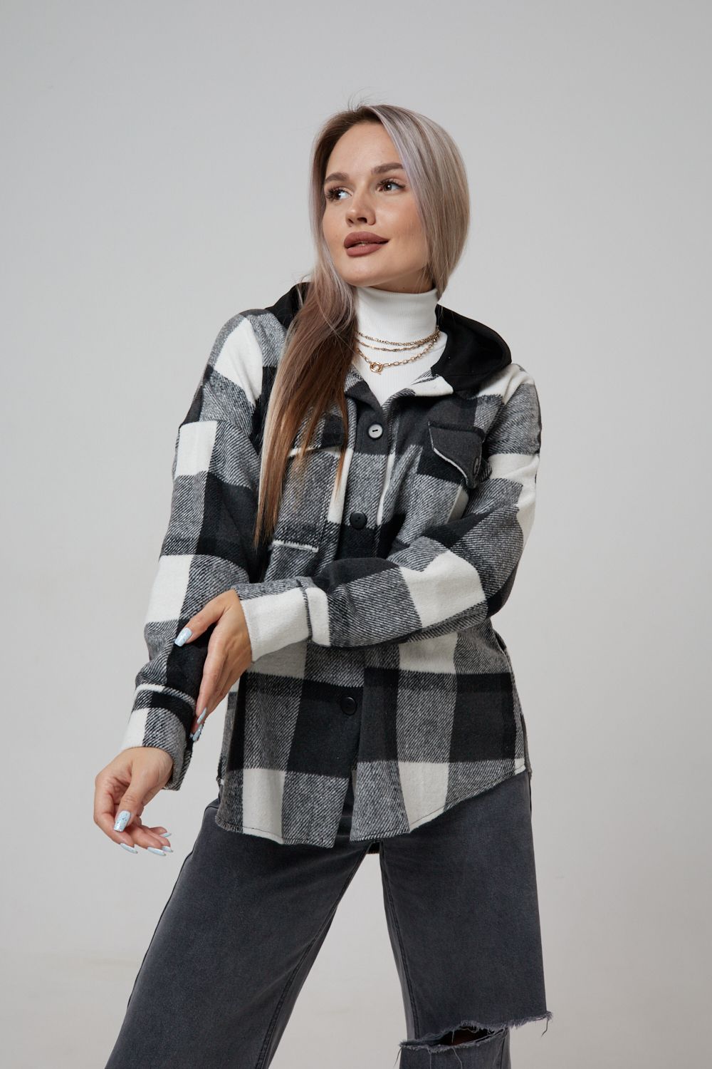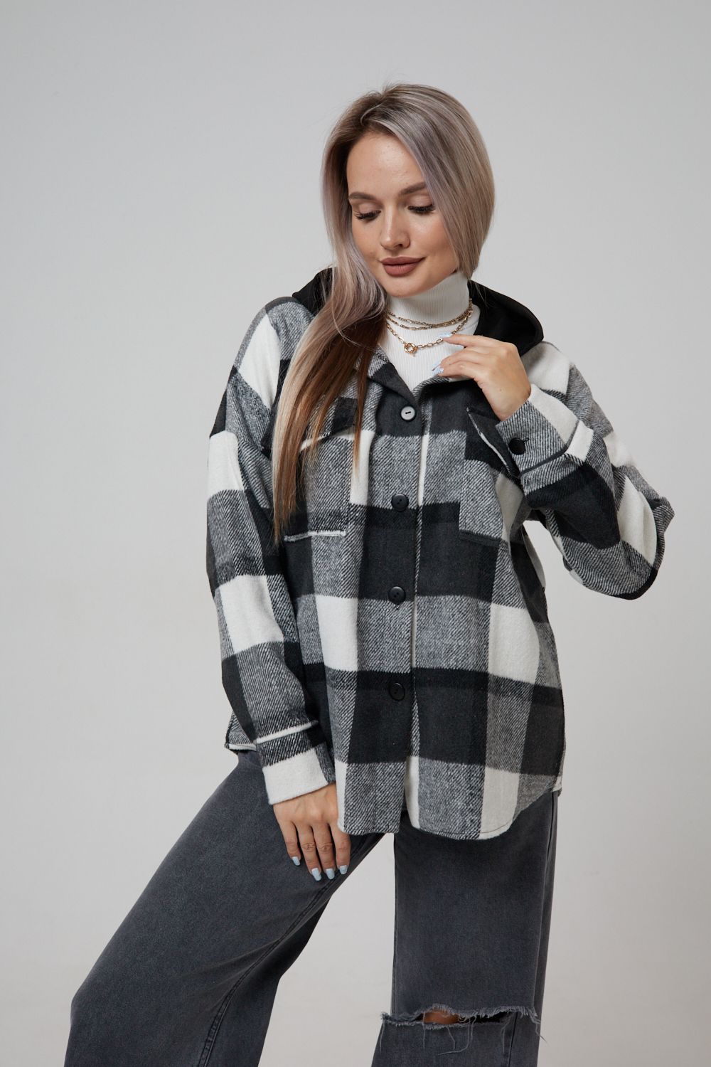 Представляем вам стильную и уютную рубашку в клетку с капюшоном от OMG – идеальный выбор для современных женщин, ценящих комфорт и индивидуальность! Эта рубашка, выполненная из плотного трикотажа, станет незаменимой вещью в вашем гардеробе. Благодаря своему широкому оверсайз крою она прекрасно подойдет для похода в институт или школу, для беременных и кормящих мам, а также для тех, кто любит свободный и комфортный стиль. Модный принт в клетку добавит нотку оригинальности вашему образу, а капюшон защитит от ветра и холода. Рубашка с длинными рукавами и накладными карманами – это практичный и стильный вариант как для офиса, так и для повседневной носки. Она прекрасно сочетается как с джинсами, так и с юбками, создавая как casual, так и более нарядные образы. Этот универсальный предмет гардероба для весенних и летних вечеров станет отличным подарком для женщин на любой праздник.