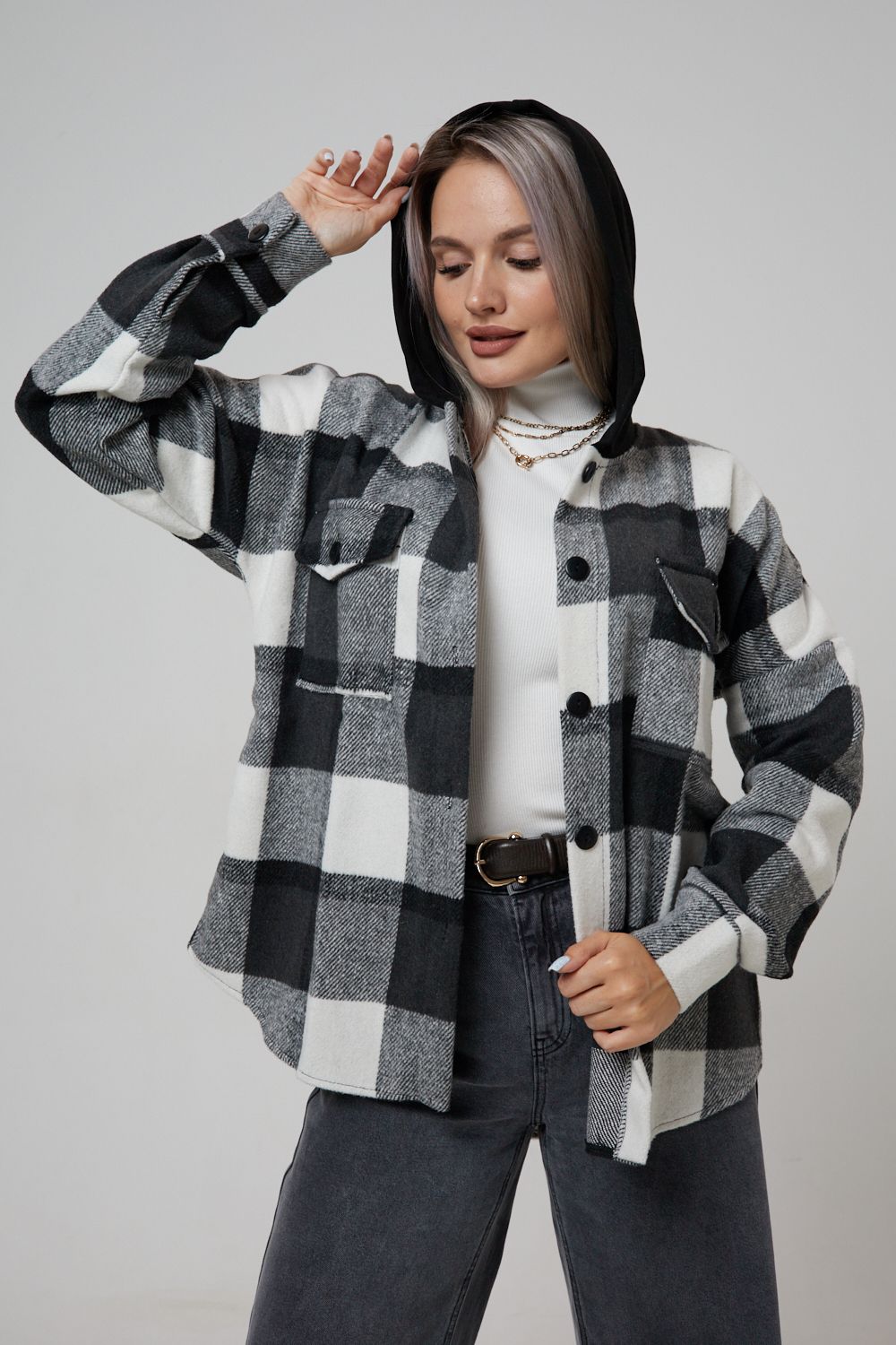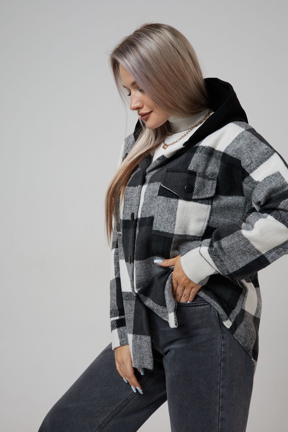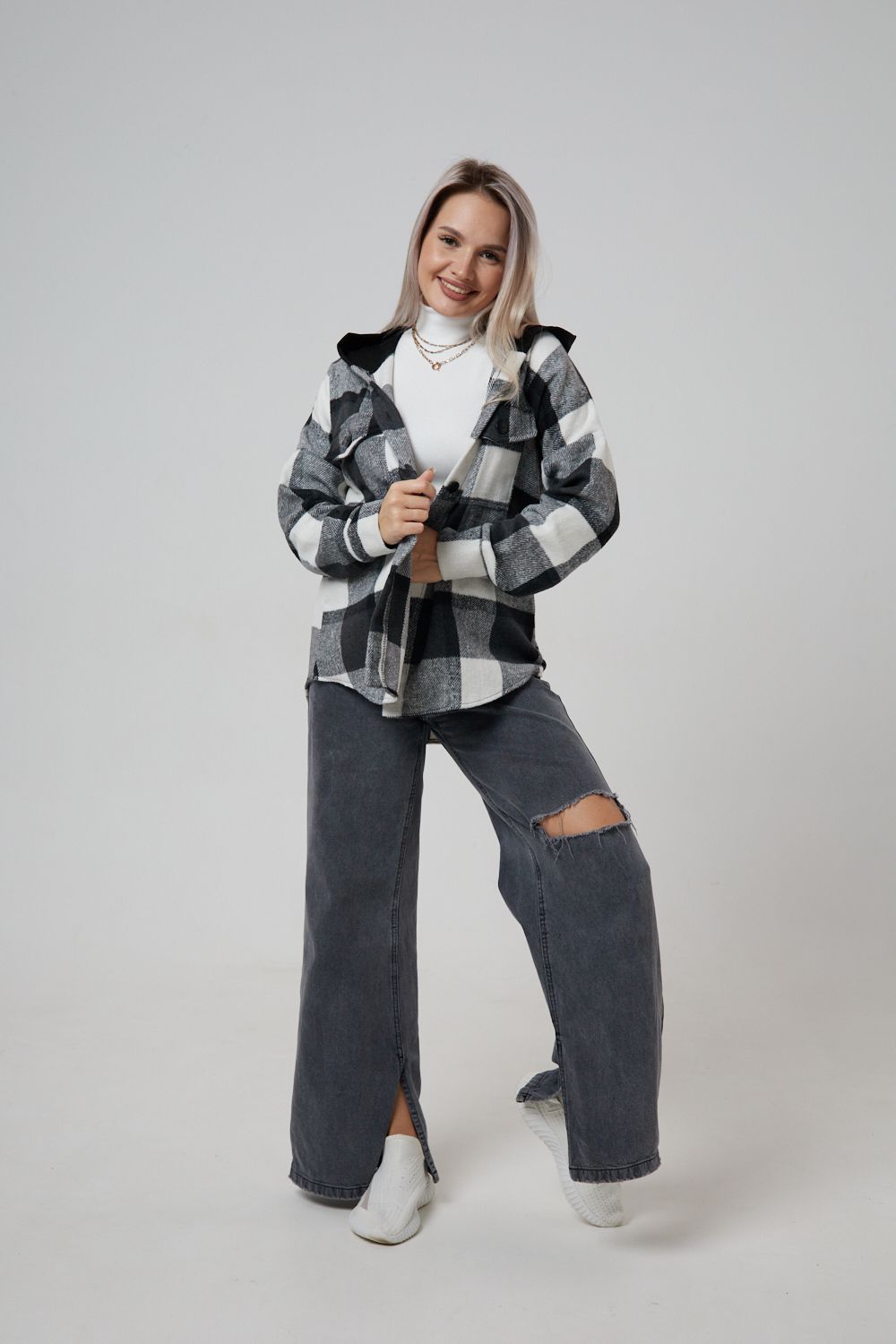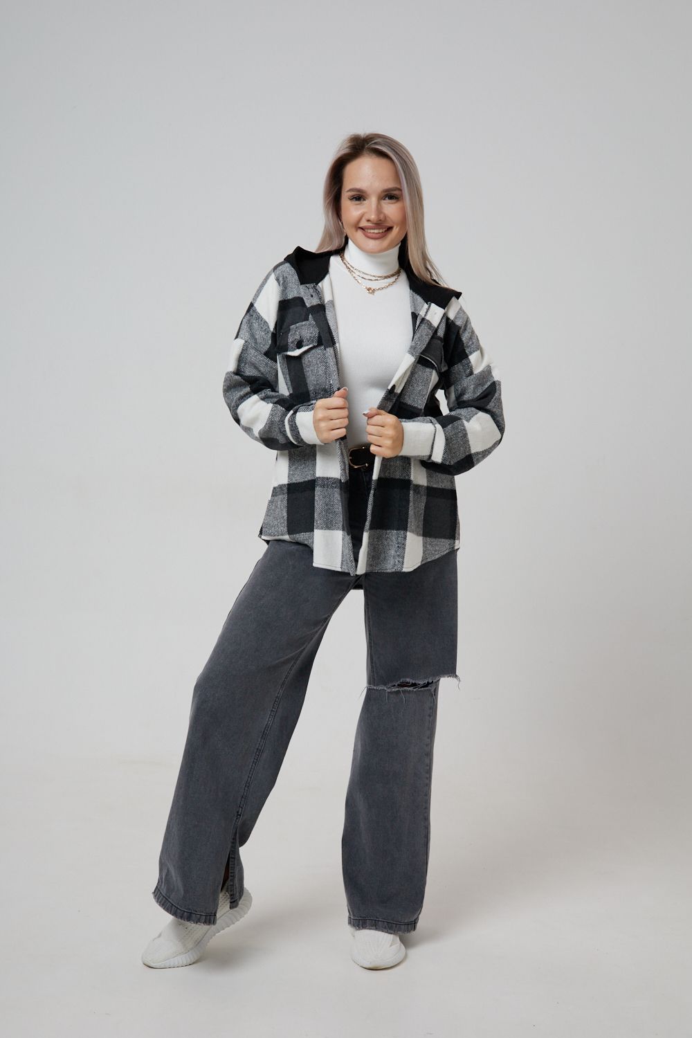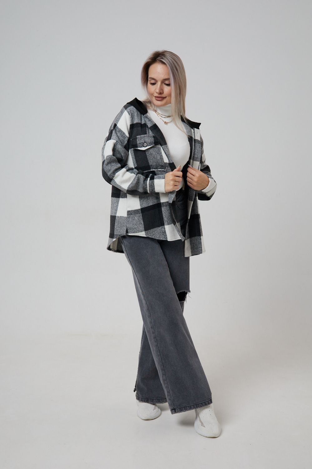 Представляем вам стильную и уютную рубашку в клетку с капюшоном от OMG – идеальный выбор для современных женщин, ценящих комфорт и индивидуальность! Эта рубашка, выполненная из плотного трикотажа, станет незаменимой вещью в вашем гардеробе. Благодаря своему широкому оверсайз крою она прекрасно подойдет для похода в институт или школу, для беременных и кормящих мам, а также для тех, кто любит свободный и комфортный стиль. Модный принт в клетку добавит нотку оригинальности вашему образу, а капюшон защитит от ветра и холода. Рубашка с длинными рукавами и накладными карманами – это практичный и стильный вариант как для офиса, так и для повседневной носки. Она прекрасно сочетается как с джинсами, так и с юбками, создавая как casual, так и более нарядные образы. Этот универсальный предмет гардероба для весенних и летних вечеров станет отличным подарком для женщин на любой праздник.