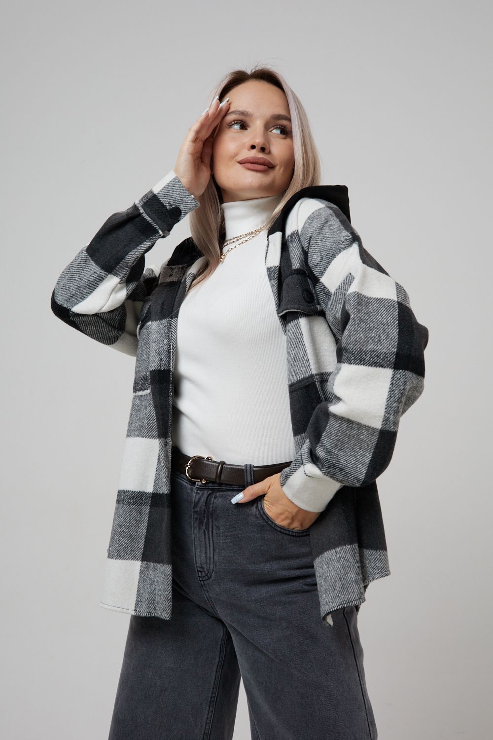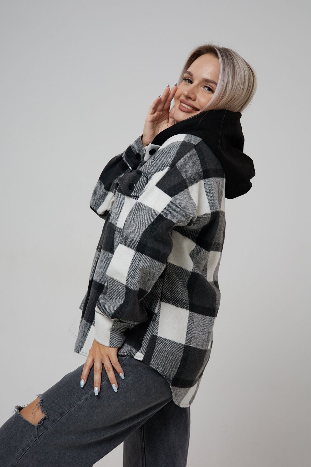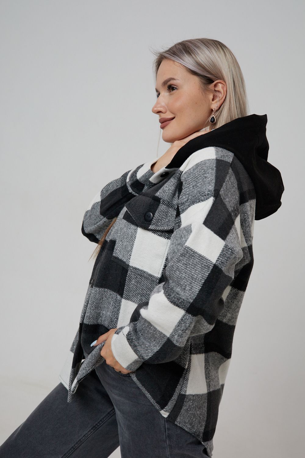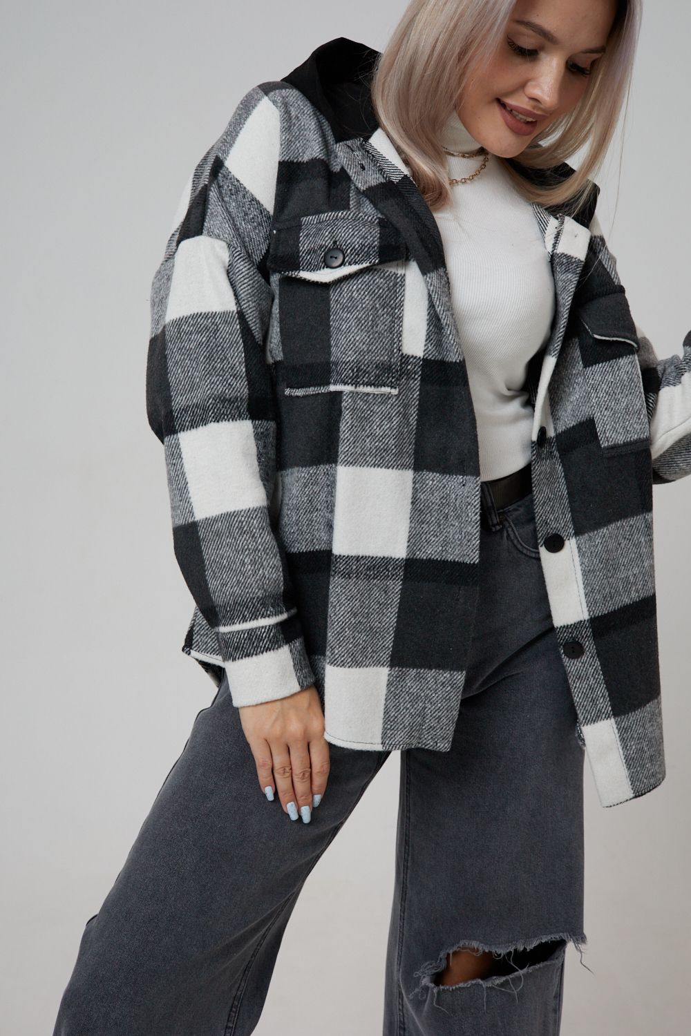 Представляем вам стильную и уютную рубашку в клетку с капюшоном от OMG – идеальный выбор для современных женщин, ценящих комфорт и индивидуальность! Эта рубашка, выполненная из плотного трикотажа, станет незаменимой вещью в вашем гардеробе. Благодаря своему широкому оверсайз крою она прекрасно подойдет для похода в институт или школу, для беременных и кормящих мам, а также для тех, кто любит свободный и комфортный стиль. Модный принт в клетку добавит нотку оригинальности вашему образу, а капюшон защитит от ветра и холода. Рубашка с длинными рукавами и накладными карманами – это практичный и стильный вариант как для офиса, так и для повседневной носки. Она прекрасно сочетается как с джинсами, так и с юбками, создавая как casual, так и более нарядные образы. Этот универсальный предмет гардероба для весенних и летних вечеров станет отличным подарком для женщин на любой праздник.