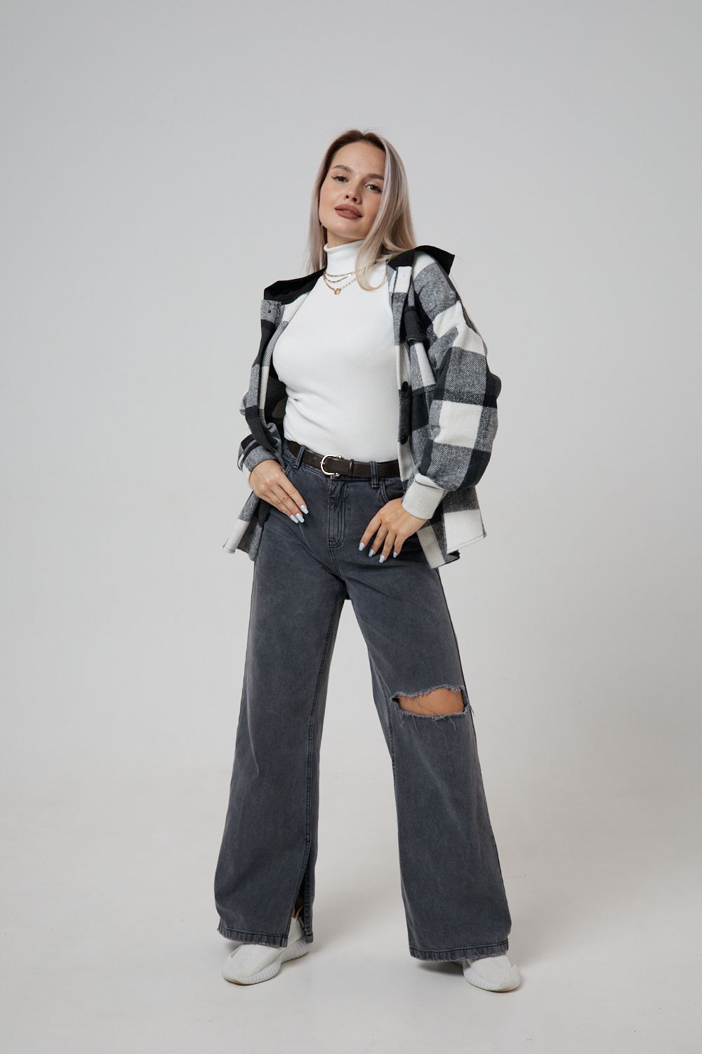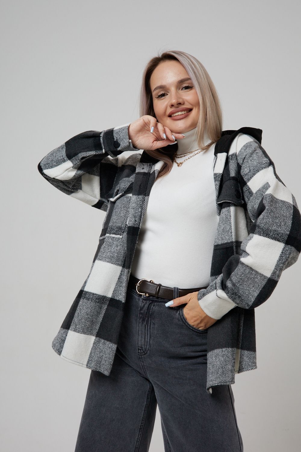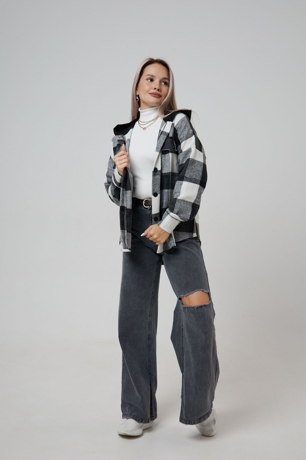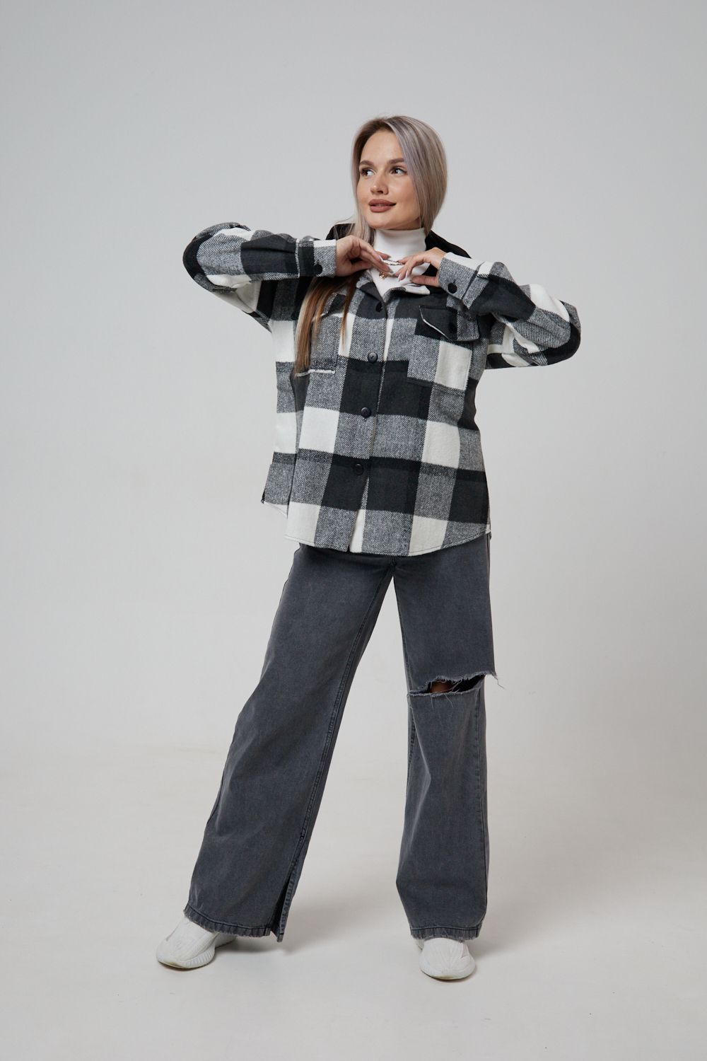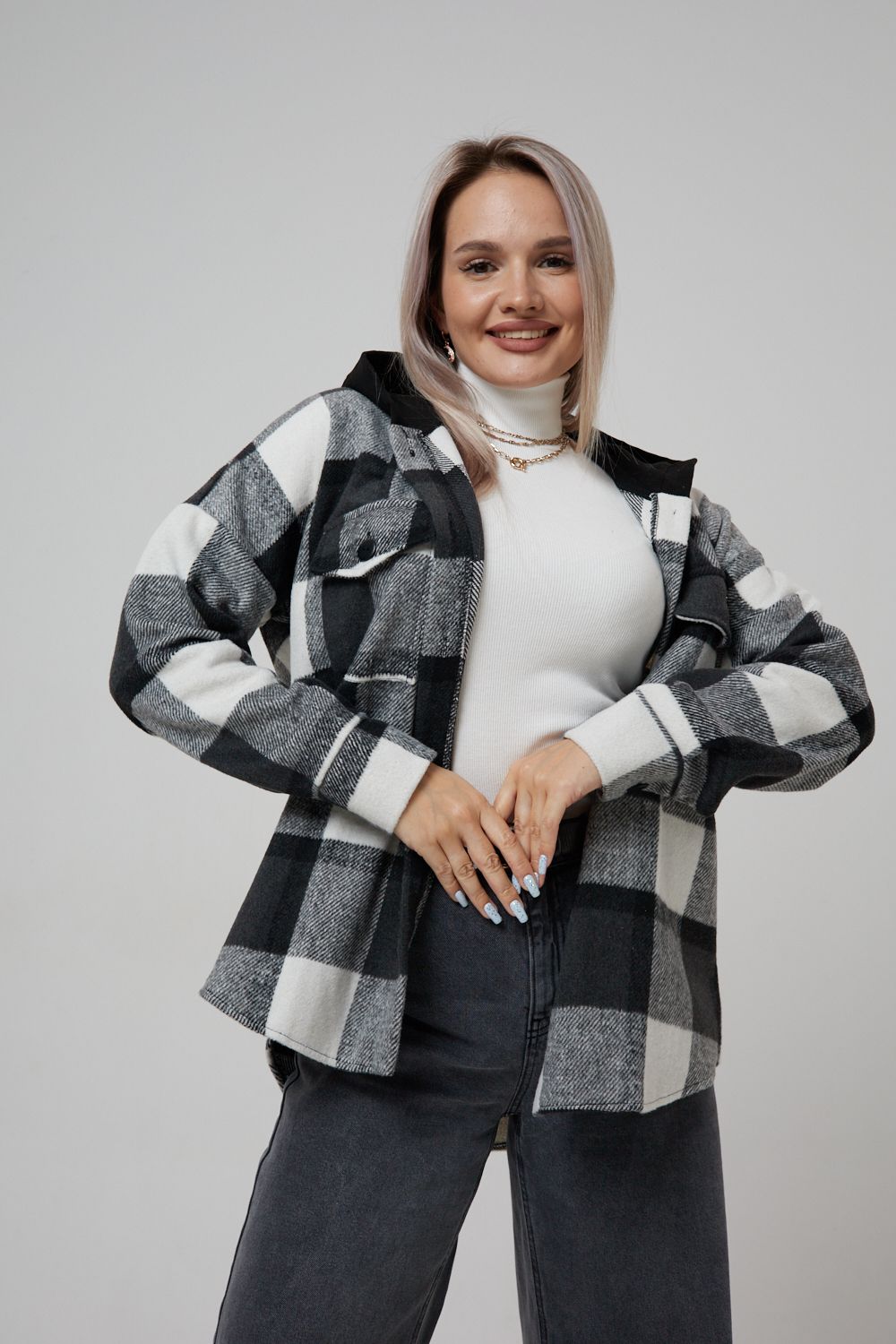 Представляем вам стильную и уютную рубашку в клетку с капюшоном от OMG – идеальный выбор для современных женщин, ценящих комфорт и индивидуальность! Эта рубашка, выполненная из плотного трикотажа, станет незаменимой вещью в вашем гардеробе. Благодаря своему широкому оверсайз крою она прекрасно подойдет для похода в институт или школу, для беременных и кормящих мам, а также для тех, кто любит свободный и комфортный стиль. Модный принт в клетку добавит нотку оригинальности вашему образу, а капюшон защитит от ветра и холода. Рубашка с длинными рукавами и накладными карманами – это практичный и стильный вариант как для офиса, так и для повседневной носки. Она прекрасно сочетается как с джинсами, так и с юбками, создавая как casual, так и более нарядные образы. Этот универсальный предмет гардероба для весенних и летних вечеров станет отличным подарком для женщин на любой праздник.