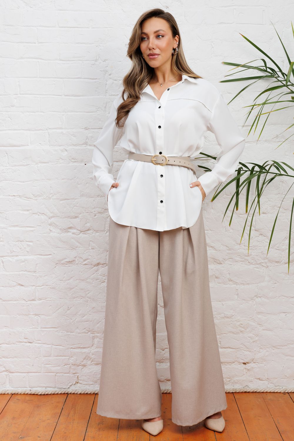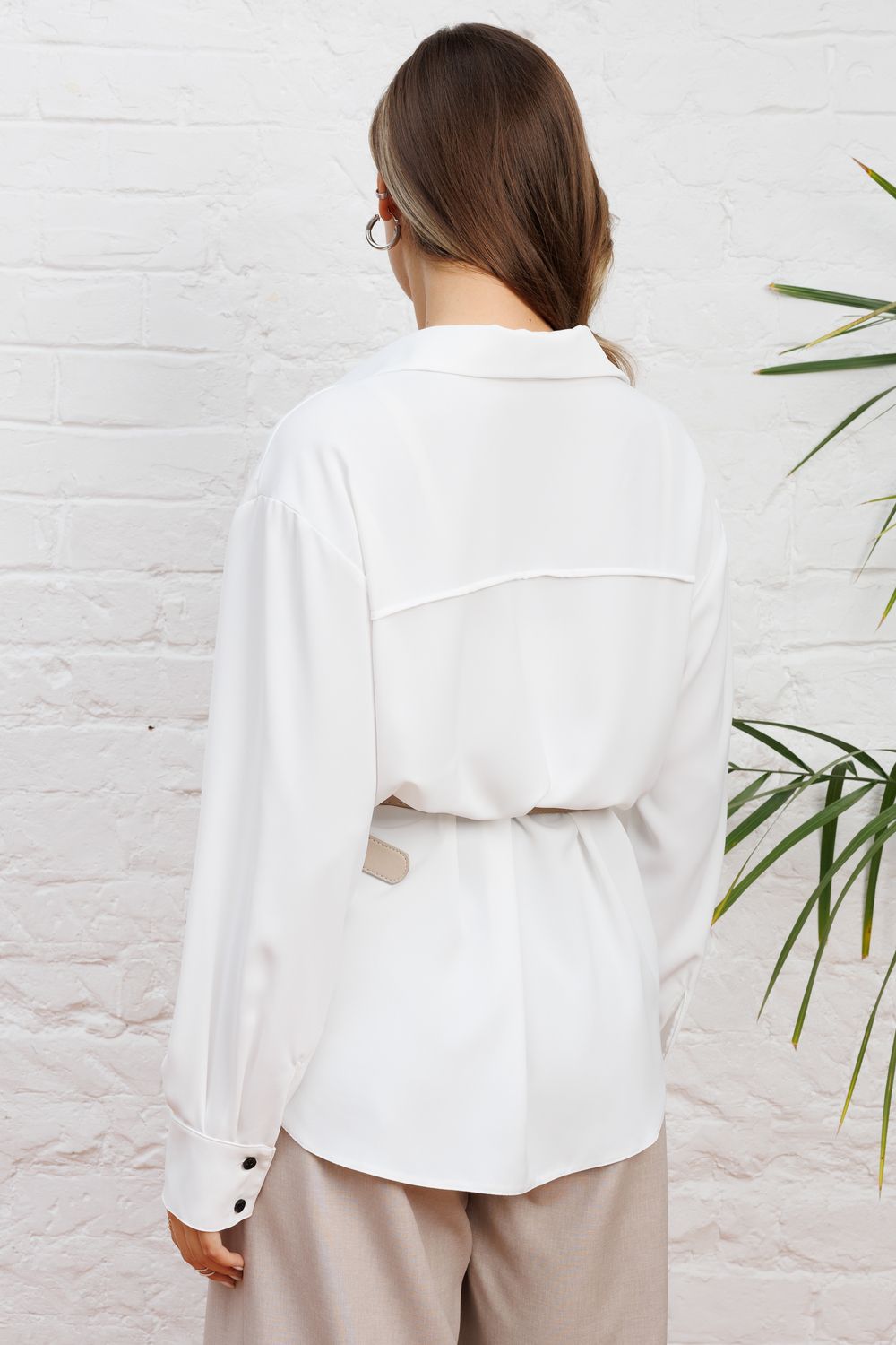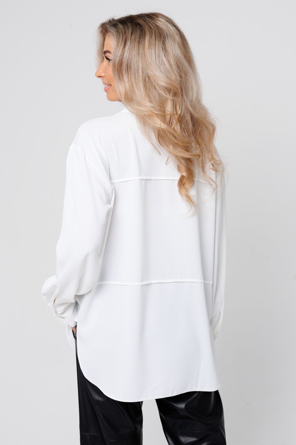 Представляем актуальную рубашку в стиле расслабленного оверсайз, которая идеально впишется в ваш гардероб предлагая современный взгляд на деловой стиль с акцентом на максимальный комфорт и сдержанную элегантность от российского производителя бренда женской одежды! Модель с отложным воротником со стойкой деликатно обрамляет лицо и визуально удлиняет шею, а длинные рукава на манжете акцентируют внимание на запястьях, подчеркивая женственность и хрупкость рук, что создает тот самый желанный образ собранной и ухоженной леди. Продуманный крой с двумя видами защипов по переду и спинке создает благородную свободу облегания, позволяя ткани красиво струиться и мягко скрывать область живота, даря вам ощущение комфорта и уверенности в своей фигуре даже после насыщенного дня. Контрастные пуговицы и планка по низу с фигурным разрезом добавляют образу современную динамичность и статусность. Эта рубашка идеально впишется в ваш ритм жизни, легко трансформируясь из строгого офисного наряда для важных встреч в расслабленный кэжуал-лук для прогулки или похода в гости, помогая вам всегда выглядеть эффектно и чувствовать себя свободной, сочетаясь с брюками, юбками или джинсами. Модель доступна в больших размерах плюс сайз - 50, 52 и 54, будет шикарно смотреться в любом возрасте, подойдет для полных девушек. Удачных Вам покупок! С уважением, TOPLES.