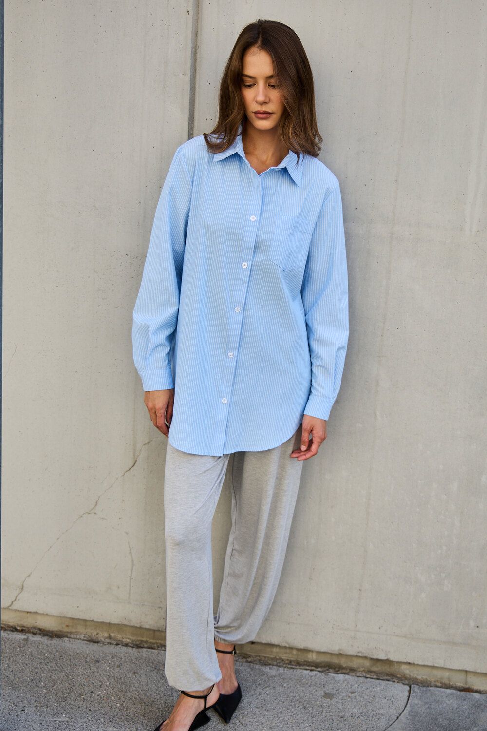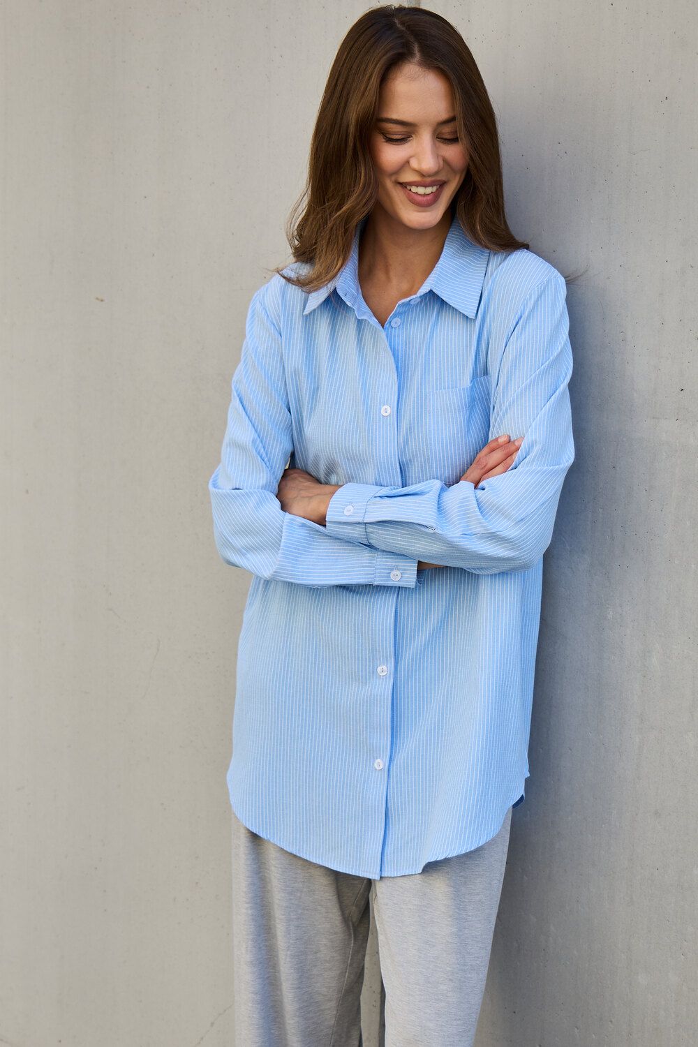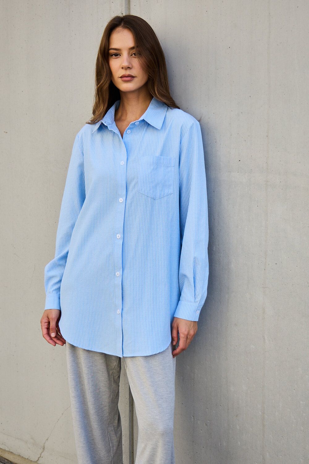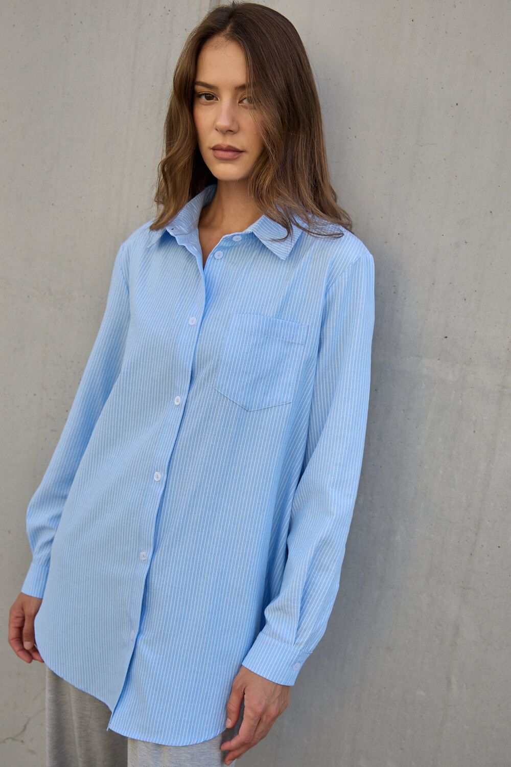 Рубашка оверсайз в полоску хлопковая - голубой