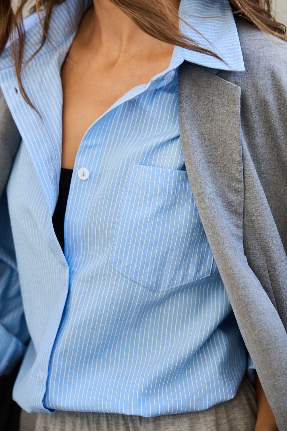 Ваш идеальный весенний образ начинается с нее: женская рубашка в полоску. Эта базовая модель из натурального хлопка – настоящее воплощение комфорта и стиля.