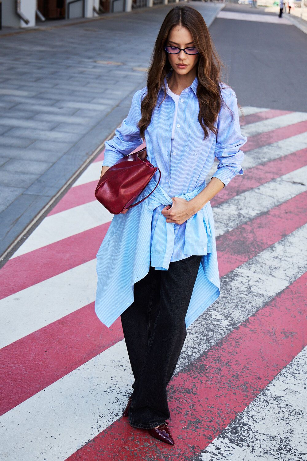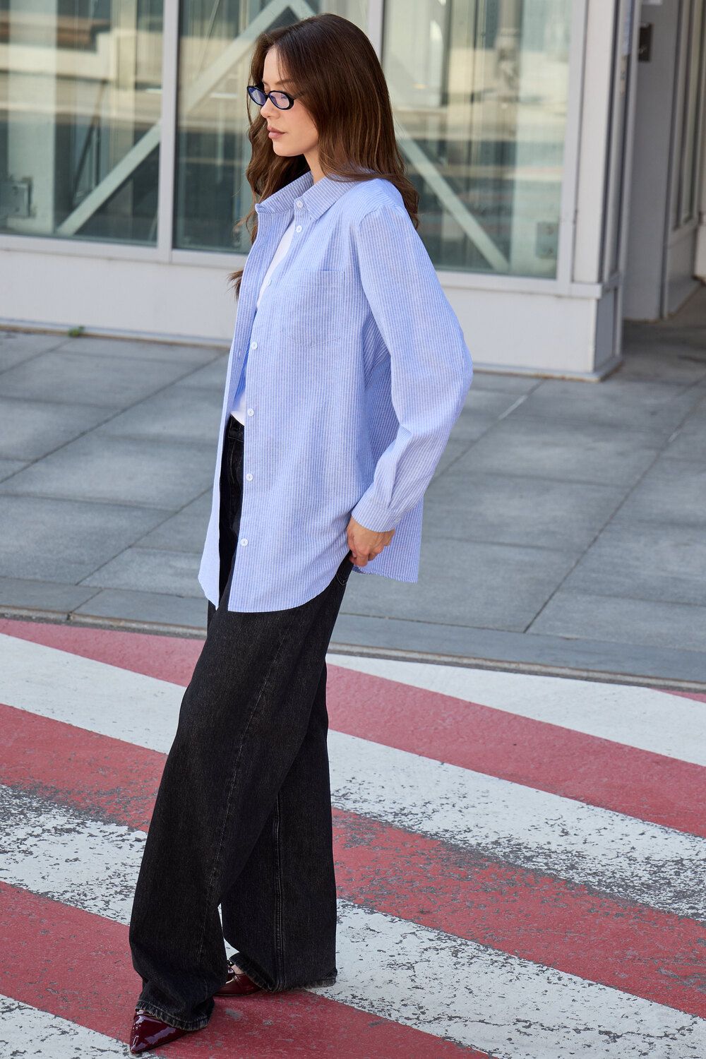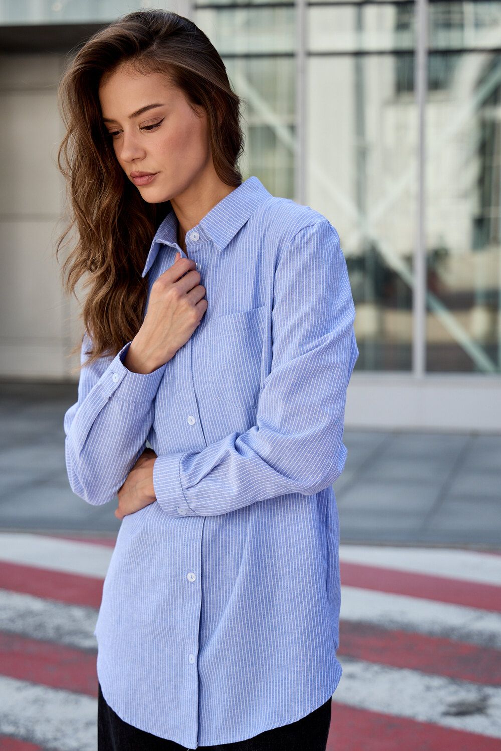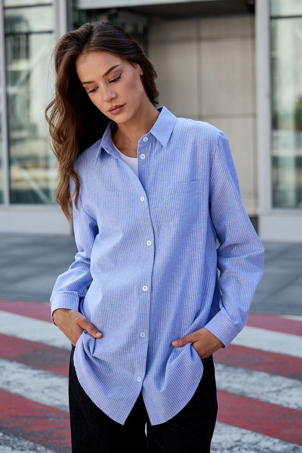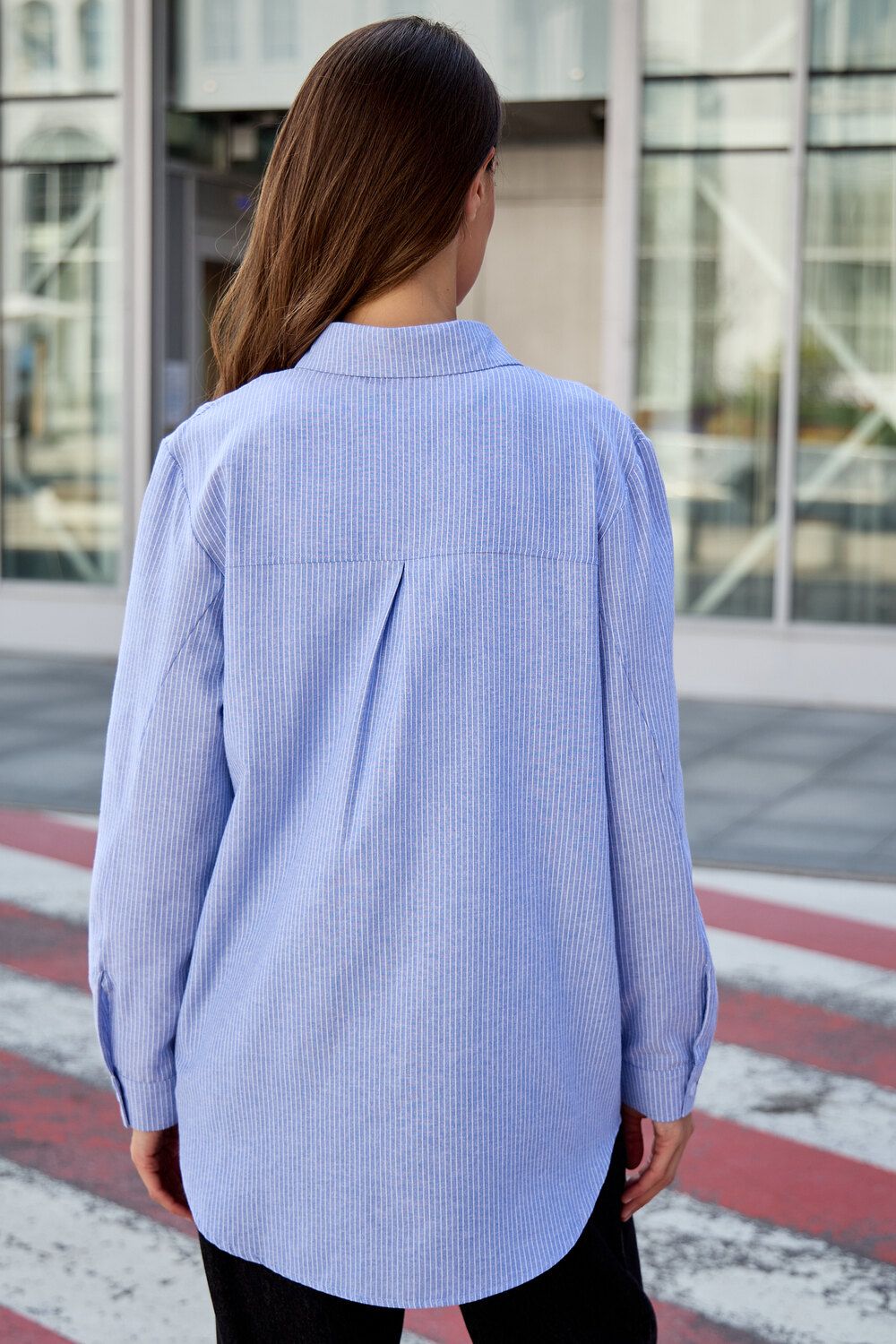 Изысканность в каждой детали: удлиненный силуэт, элегантный длинный рукав и широкий воротник придают этой полосатой рубашке особый шарм. Она станет вашим верным спутником на романтических свиданиях, обеспечит комфорт в школе и подчеркнет профессионализм в офисе. Легкость и дышащие свойства хлопка гарантируют непревзойденное ощущение свежести.