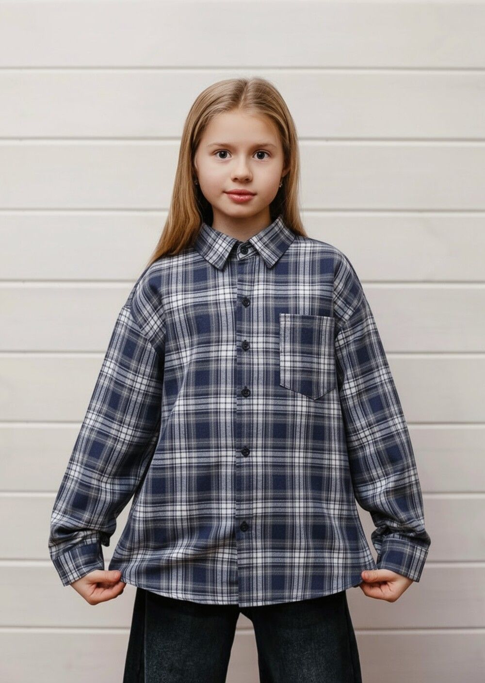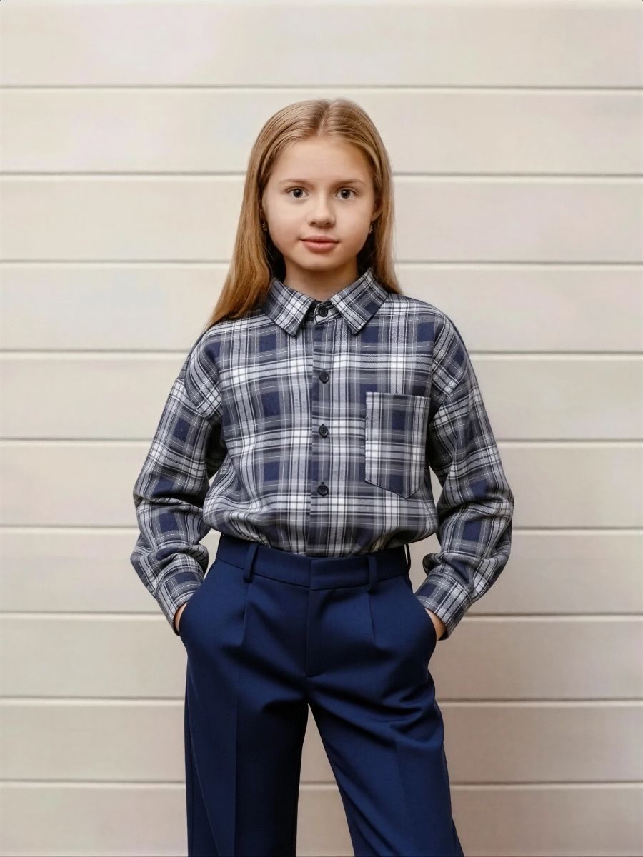 Универсальная синяя рубашка в клетку станет незаменимой частью вашего гардероба: она органично впишется как в повседневные, так и в деловые образы. Классический клетчатый принт в синих тонах выглядит сдержанно и элегантно, подчёркивая хороший вкус без лишних слов.Модель выполнена из приятной к телу ткани с оптимальным составом вы будете чувствовать себя комфортно в течение всего дня. Прямой крой обеспечивает свободу движений и подходит для разных типов фигуры, а классический отложной воротник придаёт образу лаконичность и строгость. Застёжка на пуговицы по всей длине позволяет регулировать степень открытости образа носите рубашку полностью застёгнутой для делового лука или расстёгнутой поверх футболки для расслабленного кэжуал‑стиля. Длинные рукава с аккуратными манжетами делают модель практичной для межсезонья, а продуманная длина позволяет носить рубашку навыпуск или заправленной в брюки/юбку.