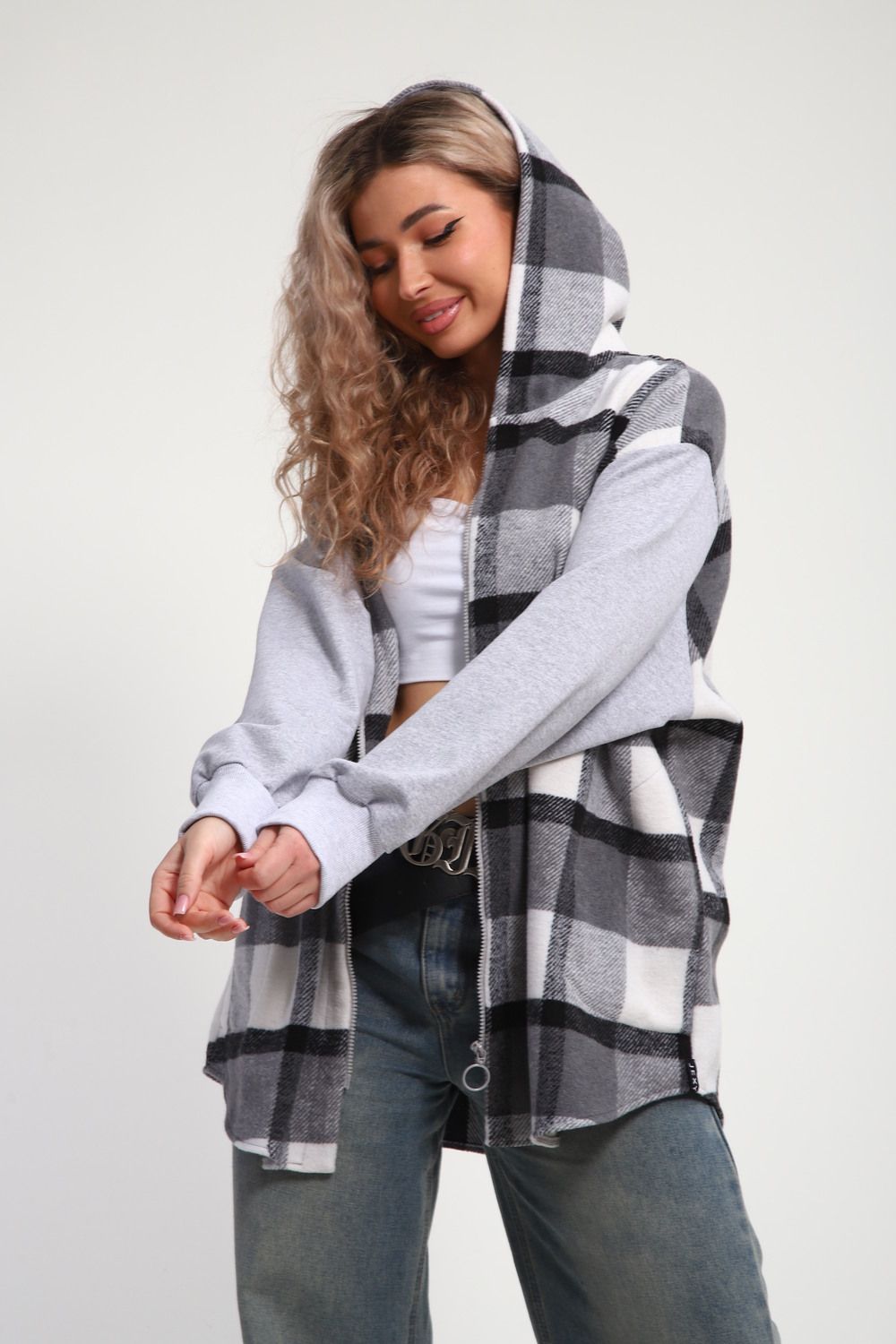 Уникальная модель утепленной рубашки-толстовки на молнии позволит носить её вместо куртки весной и летом. Благодаря своему широкому оверсайз крою она прекрасно подойдет для похода в институт или школу, для беременных и кормящих мам, а также для тех, кто любит свободный и комфортный стиль. Модный принт в клетку добавит нотку оригинальности вашему образу, а капюшон защитит от ветра и холода. Oversize клетчатая рубашка с длинными рукавами и накладными карманами – это практичный и стильный вариант как для офиса, так и для повседневной носки.
