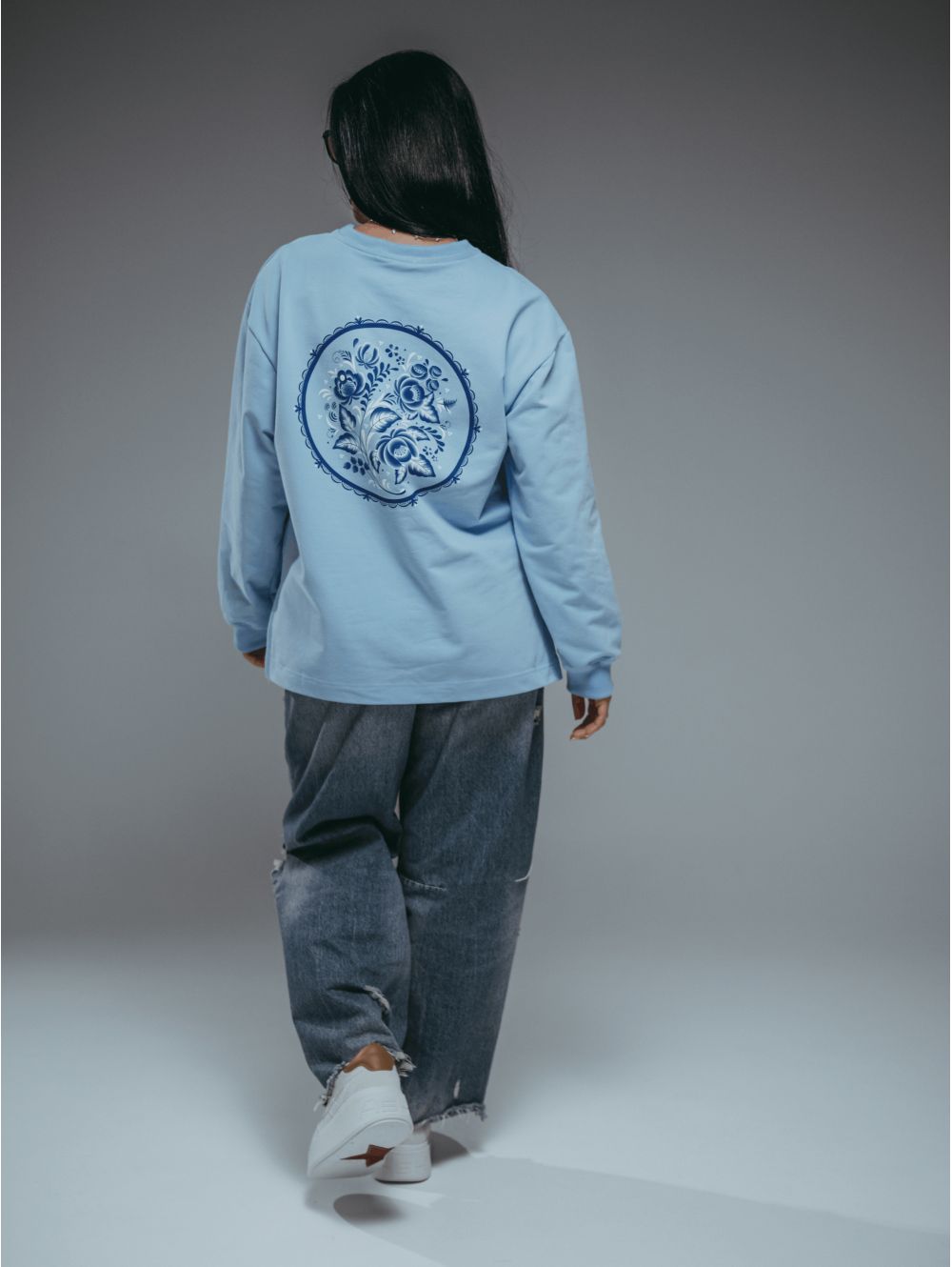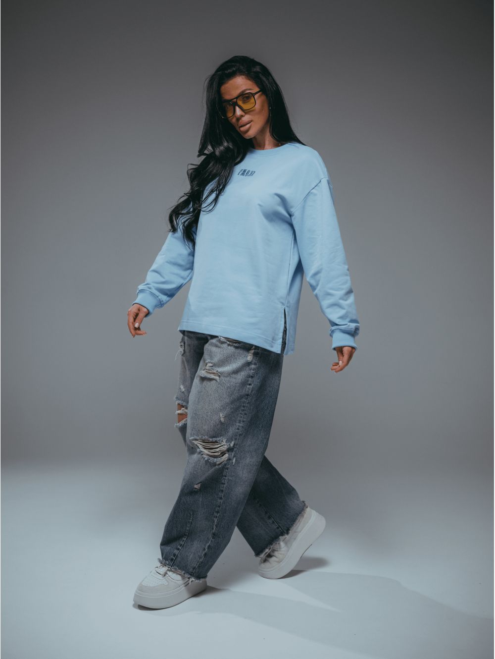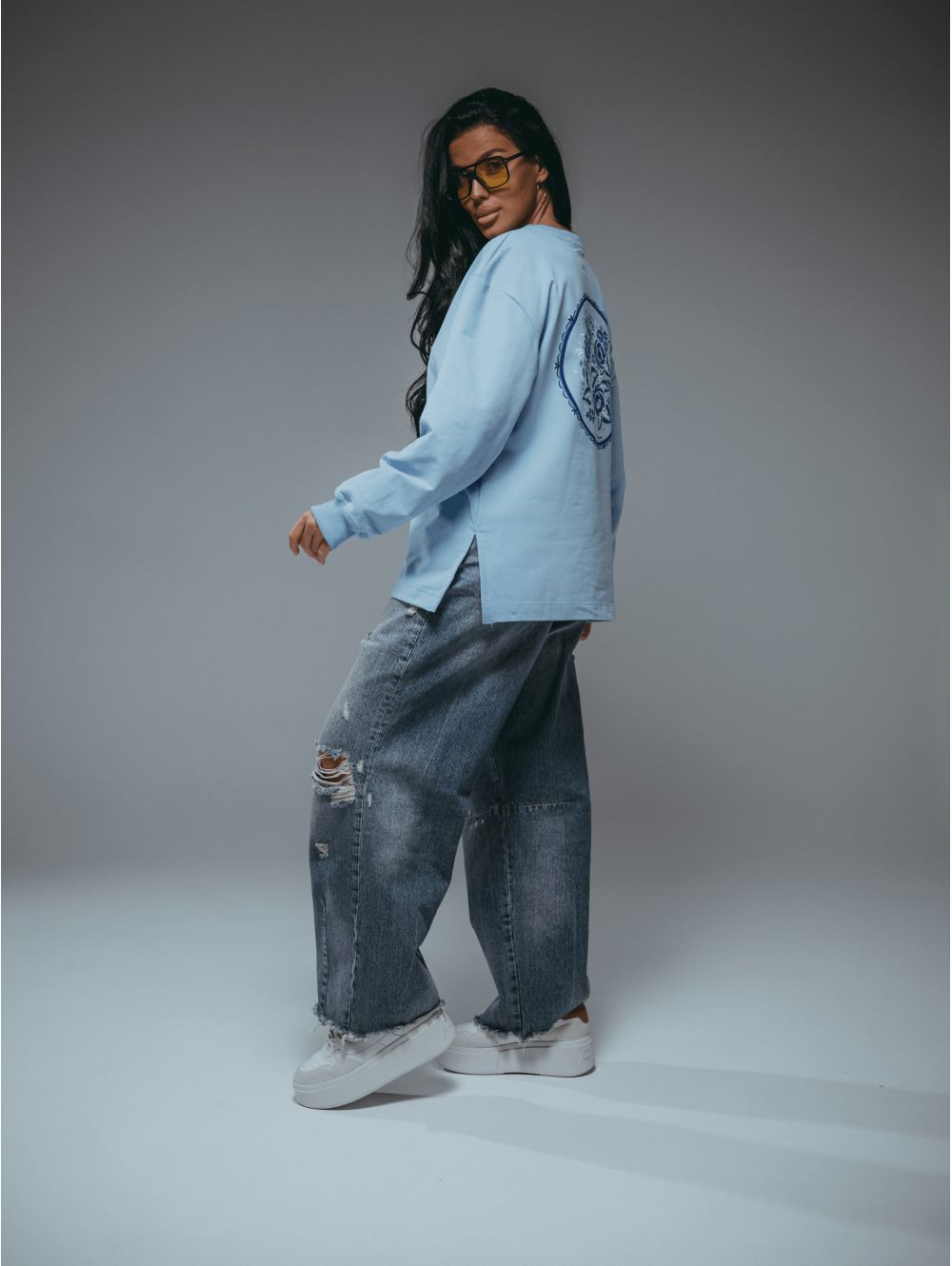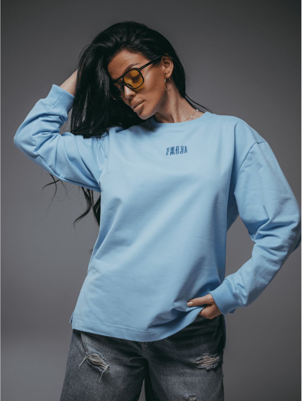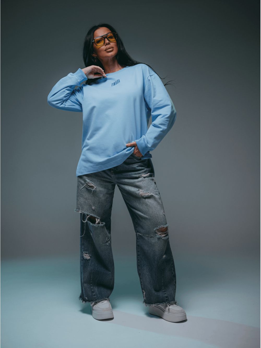 Свитшот прямой - оверсайз со спущенным плечом и длинным втачным рукавом.
