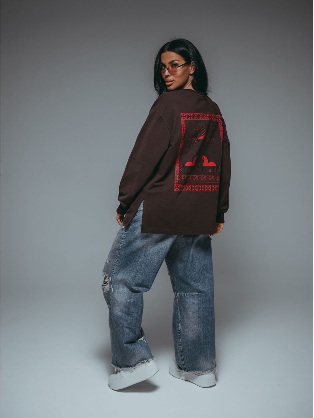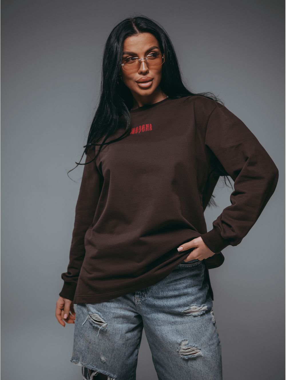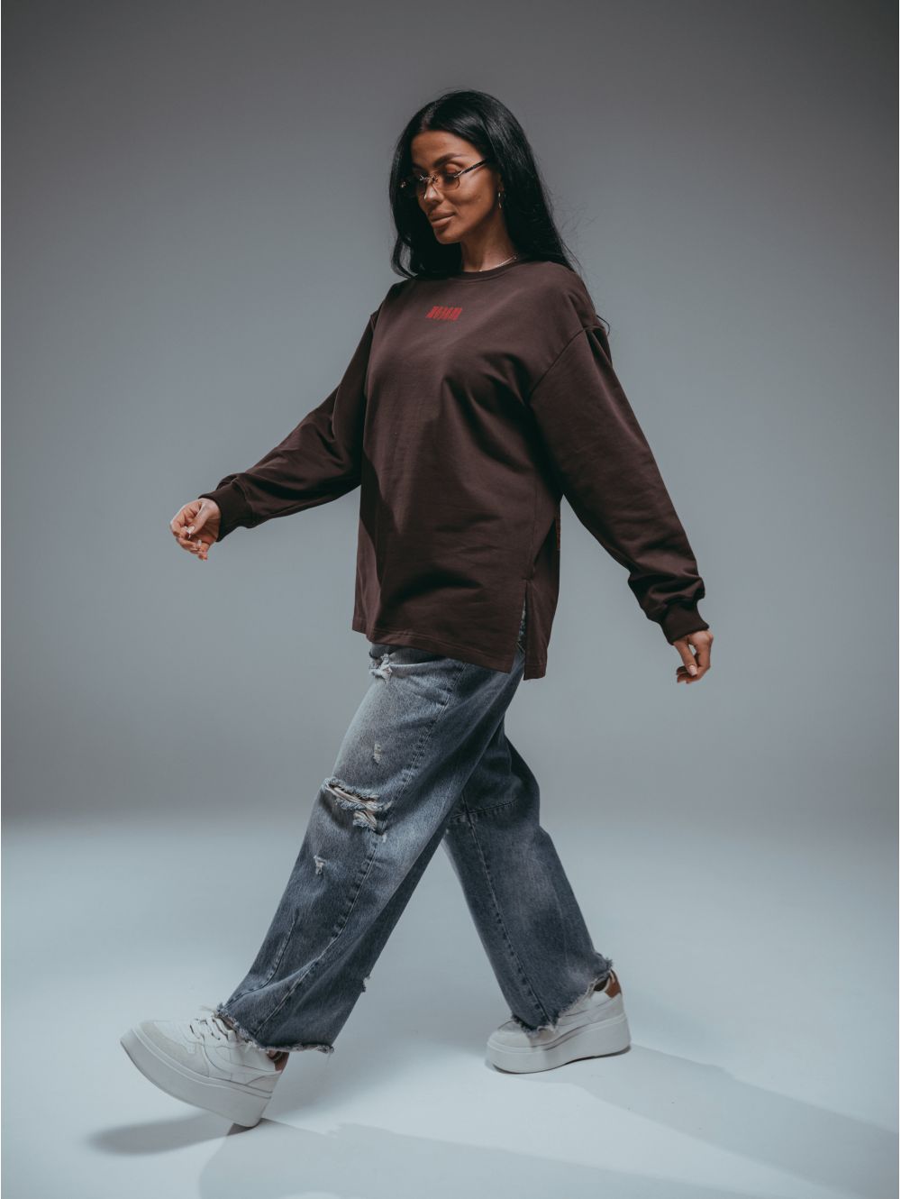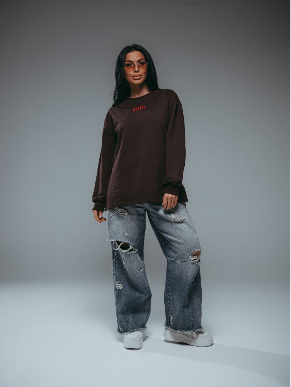 Свитшот прямой - оверсайз со спущенным плечом и длинным втачным рукавом.