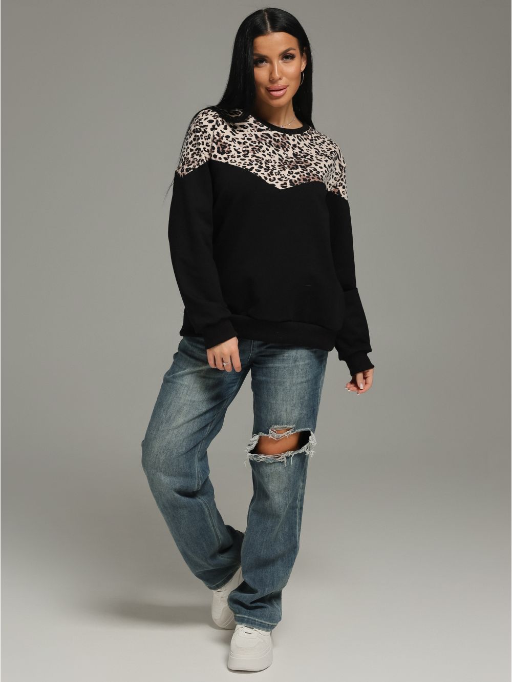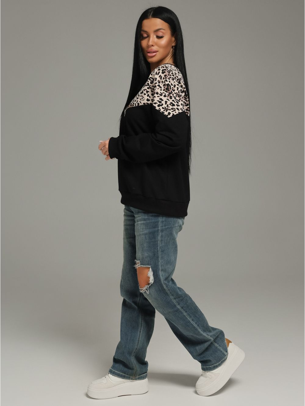 Свитшот прямого силуэта, c длинным втачным рукавом на манжете. Полочка и спинка с фигурными кокетками.