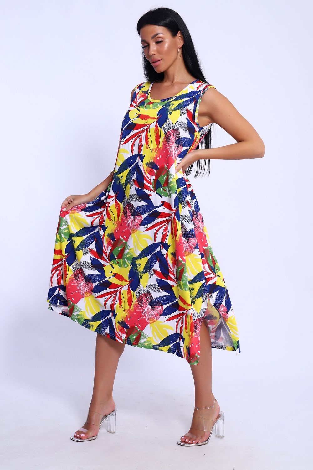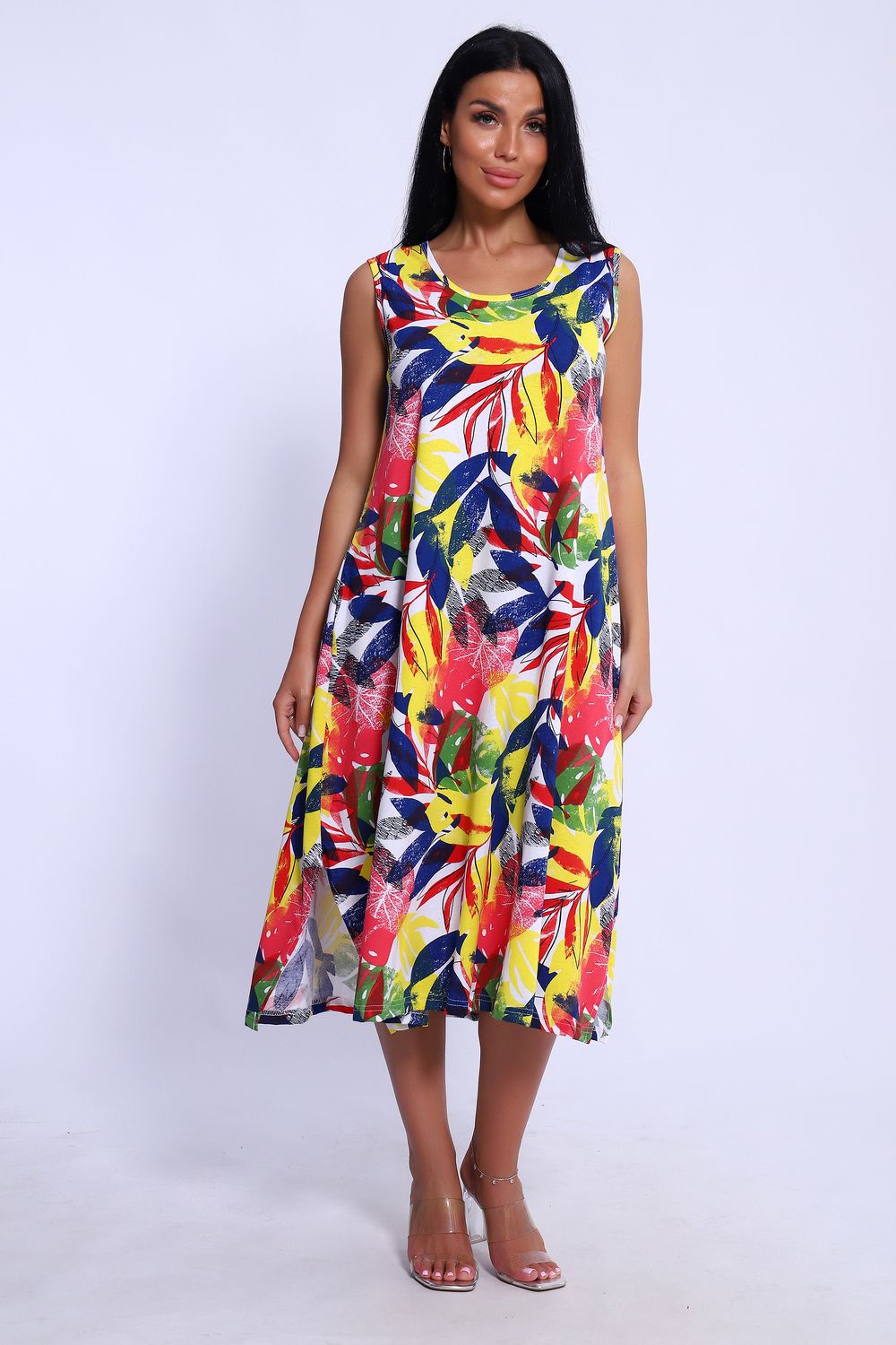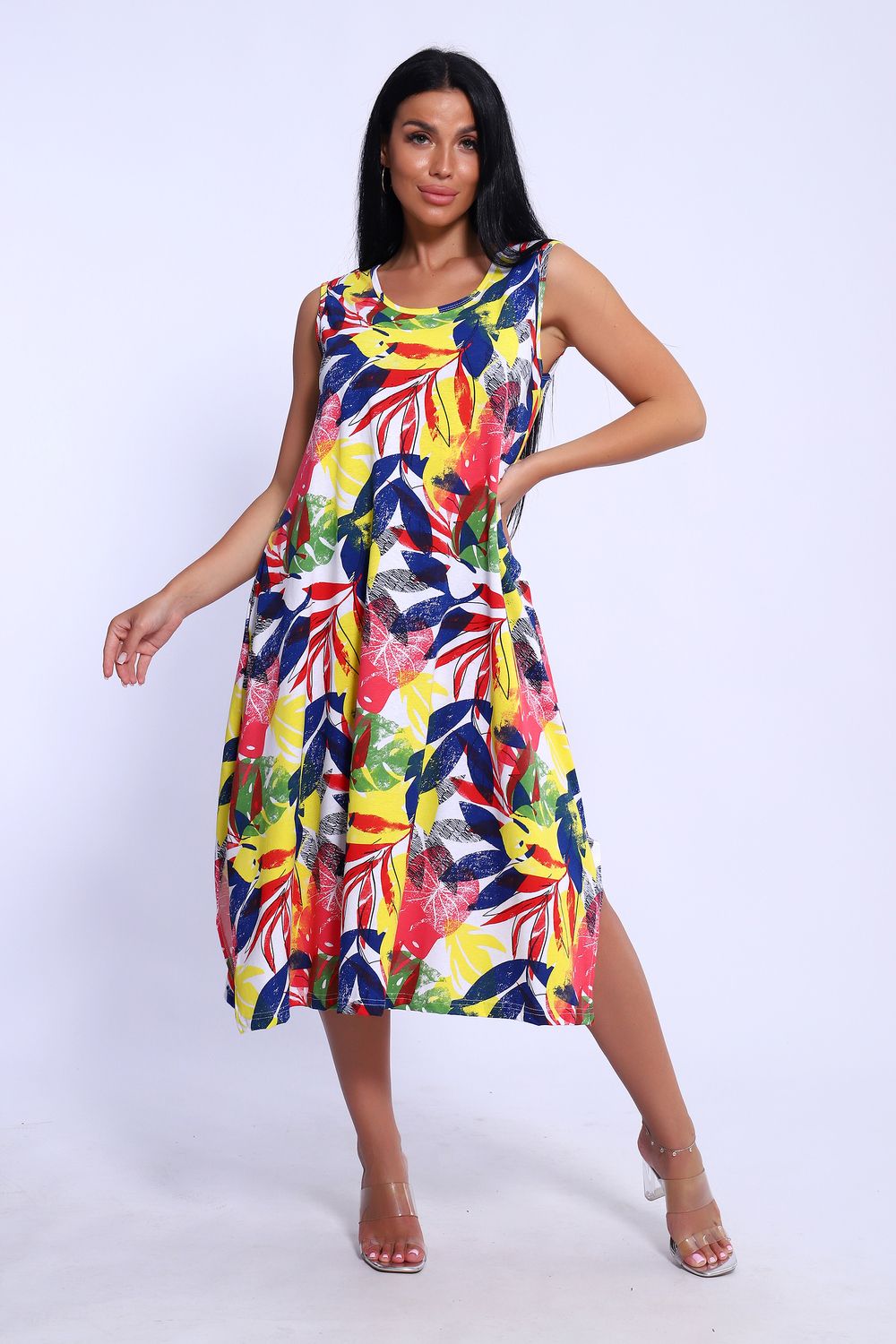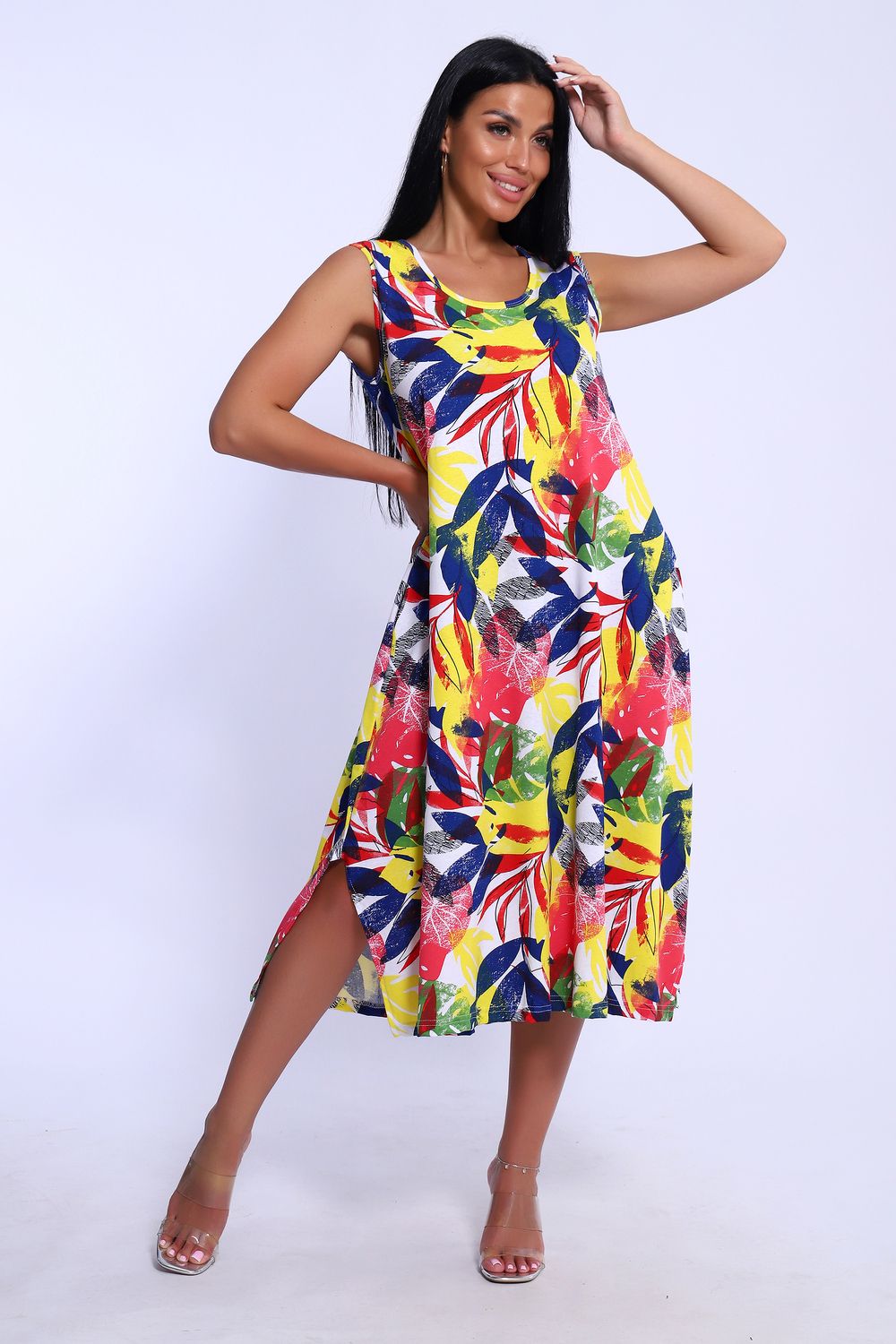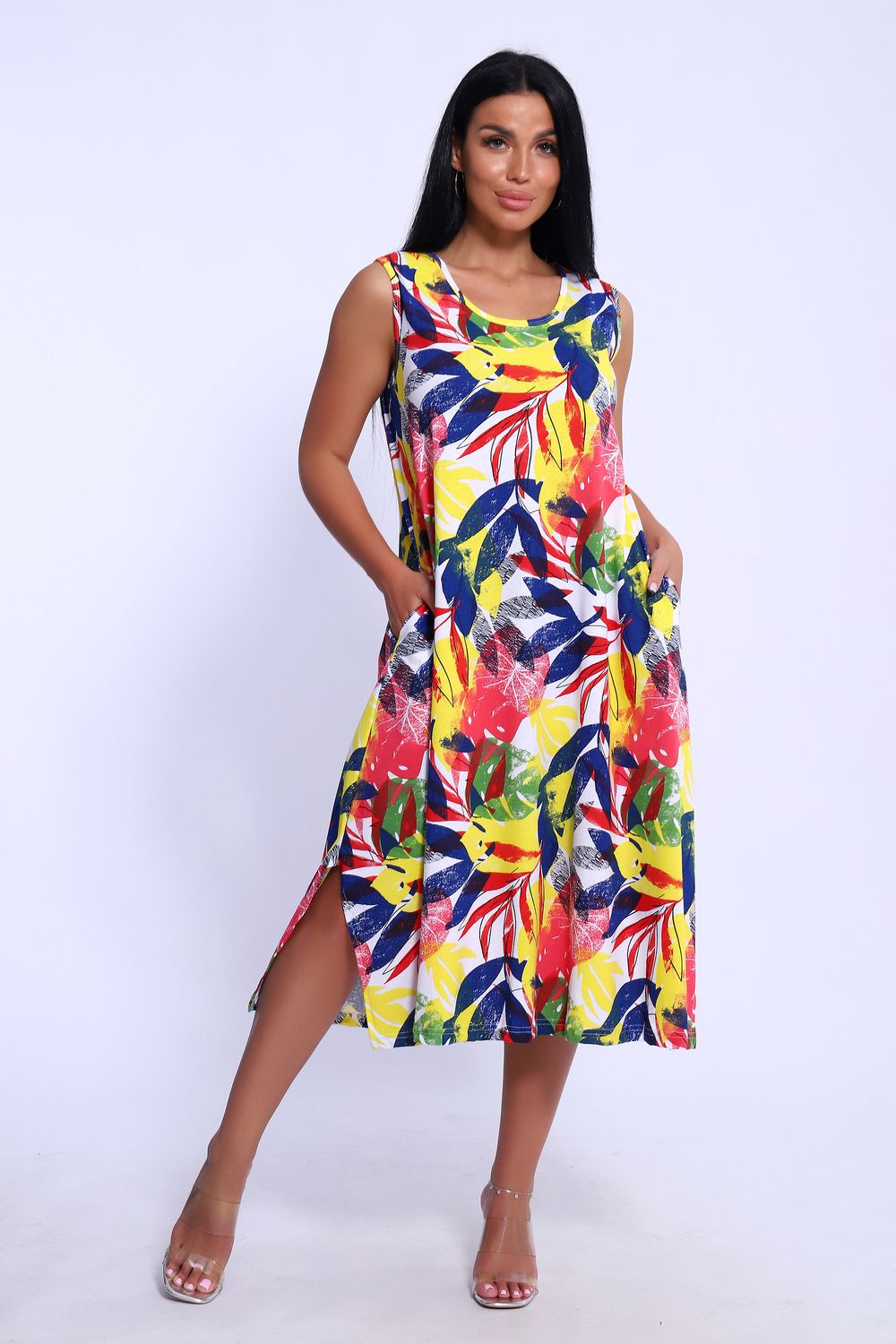 Повседневный длинный сарафан выполнен из трикотажного полотна, комфортный и мягкий на ощупь. Платье-сарафан на широких лямках подходит под разные типы фигур, трапециевидный А-силуэт и карманы в боковом шве будет удобен для полных и для беременных девушек. Подол сарафана свободного кроя . Сарафан идеален для повседневной носки, пляжного отдыха или вечеринки на природе.