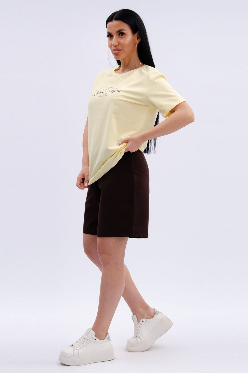 Стильный женский костюм - отличное дополнение гардероба на летний сезон. Этот комфортный комплект идеально подходит для отдыха дома или прогулок по свежему воздуху. Изготовленный из легких и дышащих тканей, он обеспечит вам максимальное удобство в жаркую погоду. Двойка состоит из футболки и шорт, которые созданы для того, чтобы дарить ощущение свободы и легкости, позволяя вам наслаждаться каждой минутой. Модель предлагается в больших размерах, что позволяет каждой женщине найти подходящий вариант. В нем вы будете чувствовать себя уверенно, независимо от того, проводите ли вы время за чтением книги в любимом кресле или готовите ужин на кухне. Такой комплект станет отличным выбором как для отдыха, так и для активного времяпрепровождения дома. Он станет вашим верным спутником на протяжении всего теплого времени года, придавая вашему стилю легкость и непринужденность. Этот костюм позволит насладиться комфортом и стилем в любой ситуации.