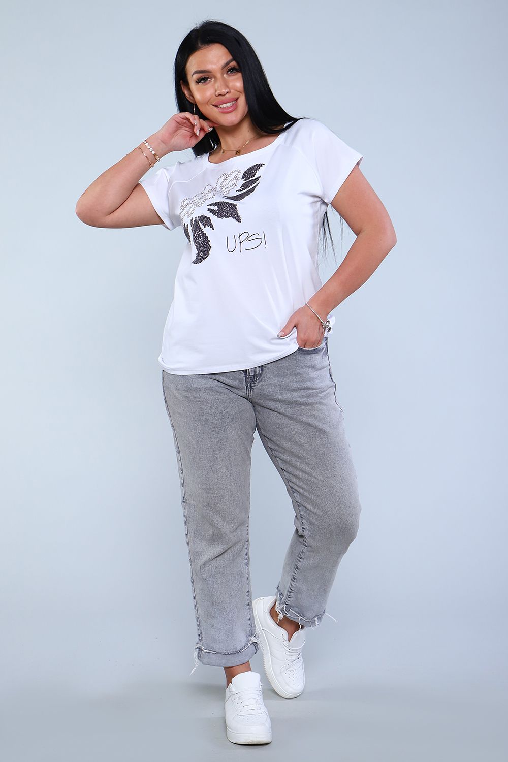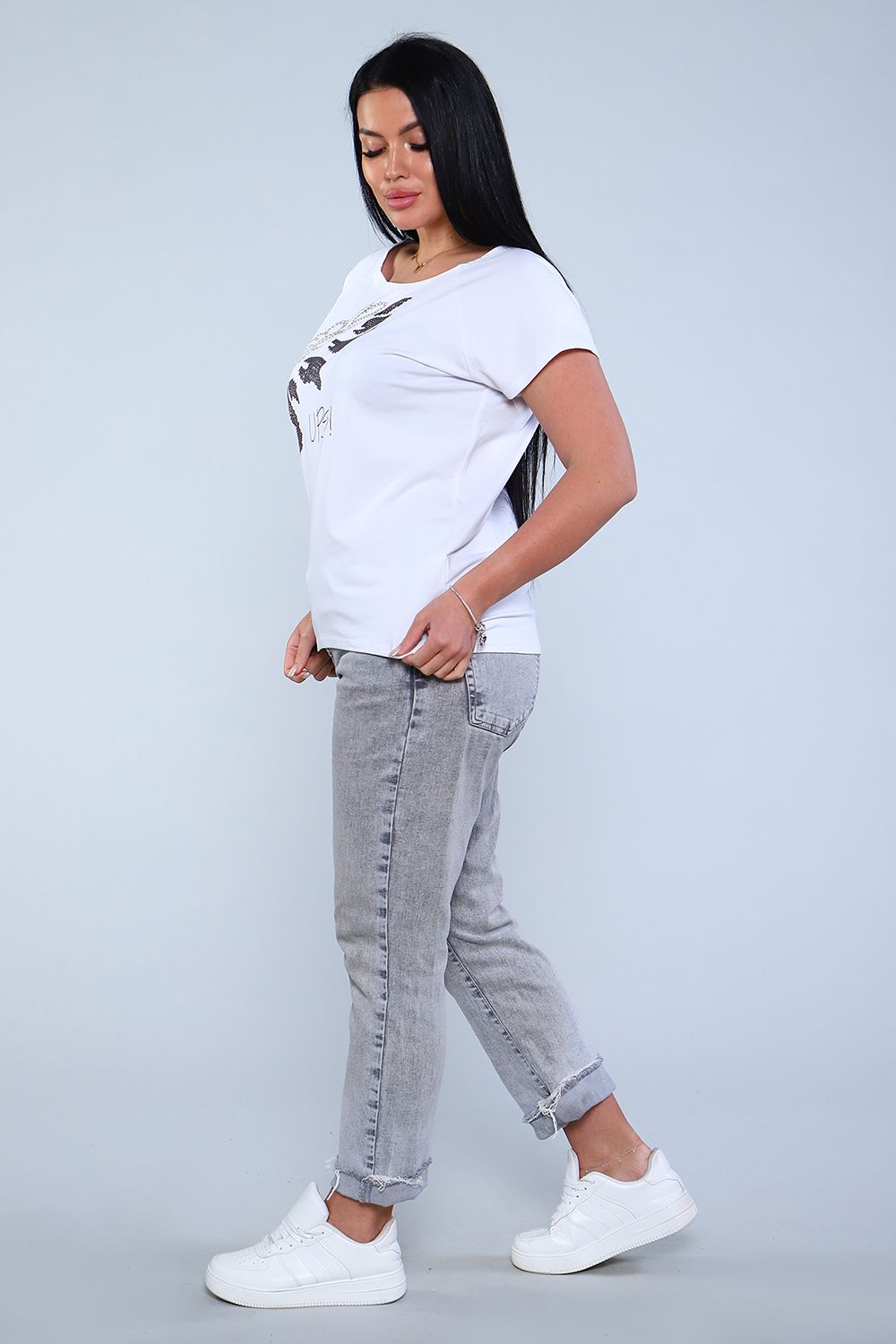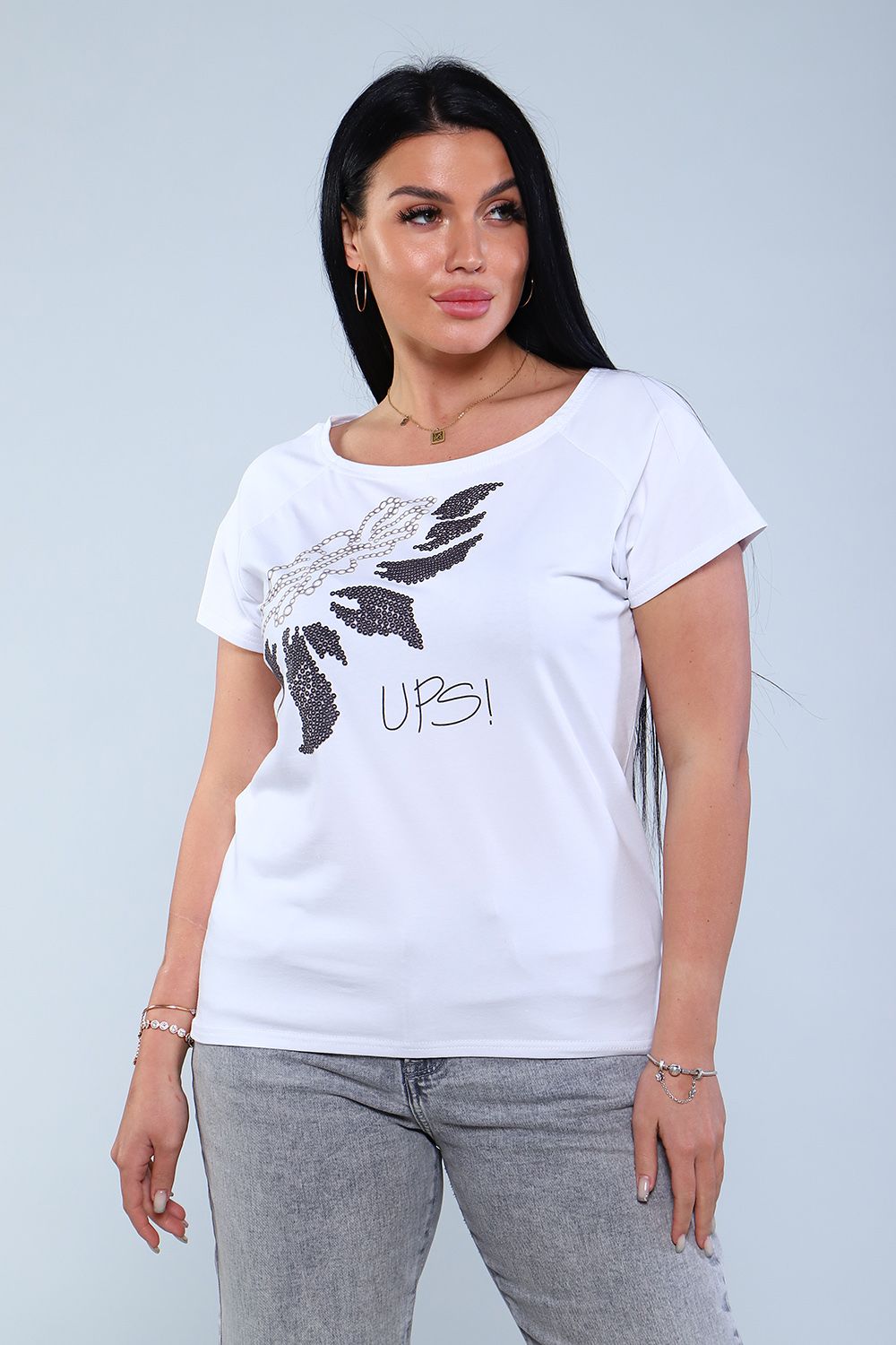 Женская футболка с оригинальным принтом, из кулирки с лайкрой высокого качества пенье. Модель свободного силуэта, круглая горловина, короткий рукав-реглан. Базовая футболка является универсальным предметом женского гардероба, отлично сочетается с юбкой, брюками, лосинами, но и создаст эффектный образ со строгим пиджаком или кардиганом.