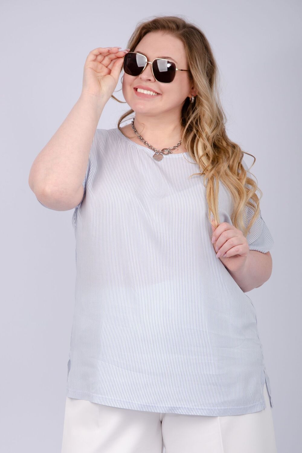 Шелли туника женская - голубой/белый