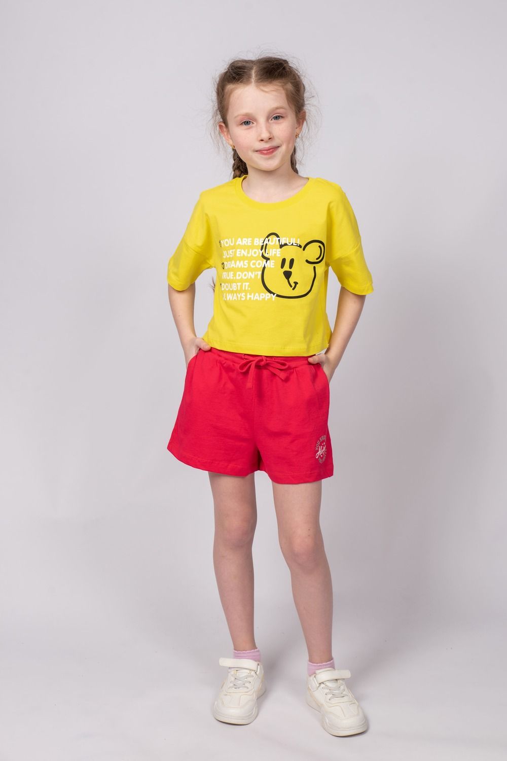Модные и удобные трикотажные шортики - отличный выбор для девочек на летний сезон и для занятий спортом. По поясу шорт вставлен плоский утягивающий шнурок в цвет шорт, низ шнурка подвернут и застрочен. На левой передней половинке шорт принт шелкография с глиттером. Надпись переводится как "Ты всегда должна чувствовать себя красивой". Эти шортики для девочек идеально подходят для повседневных летних прогулок.