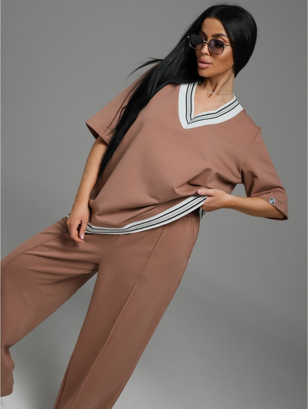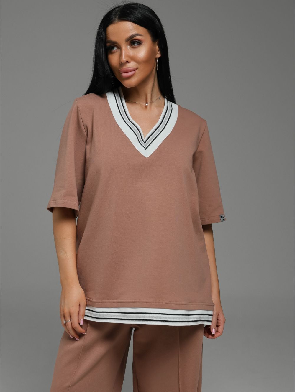 Футболка свободного кроя с коротким рукавом и V-образным вырезом.