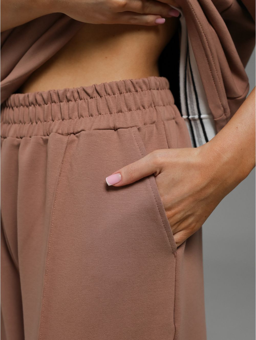 Брюки прямые с отрезным поясом, передние половинки с карманами.