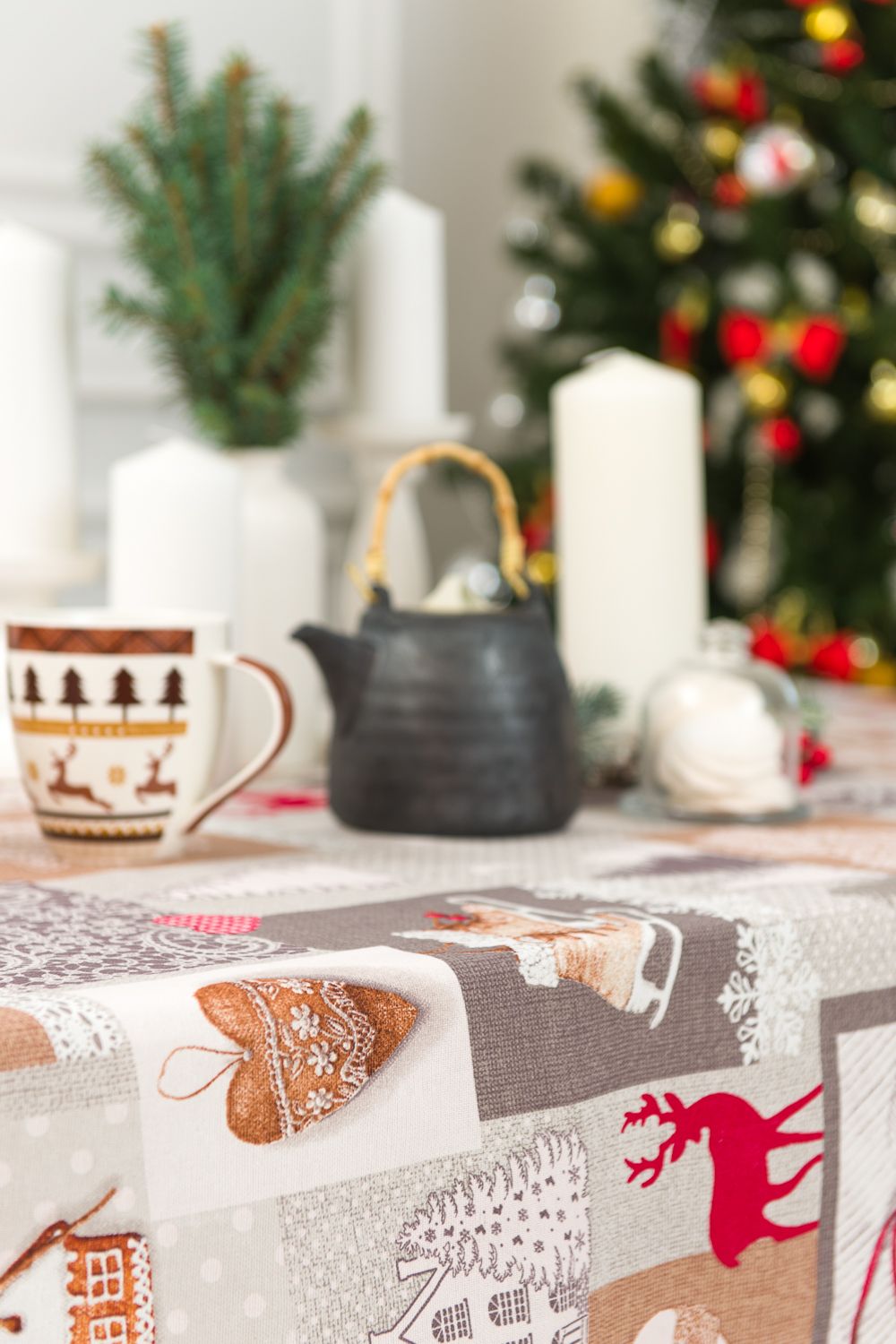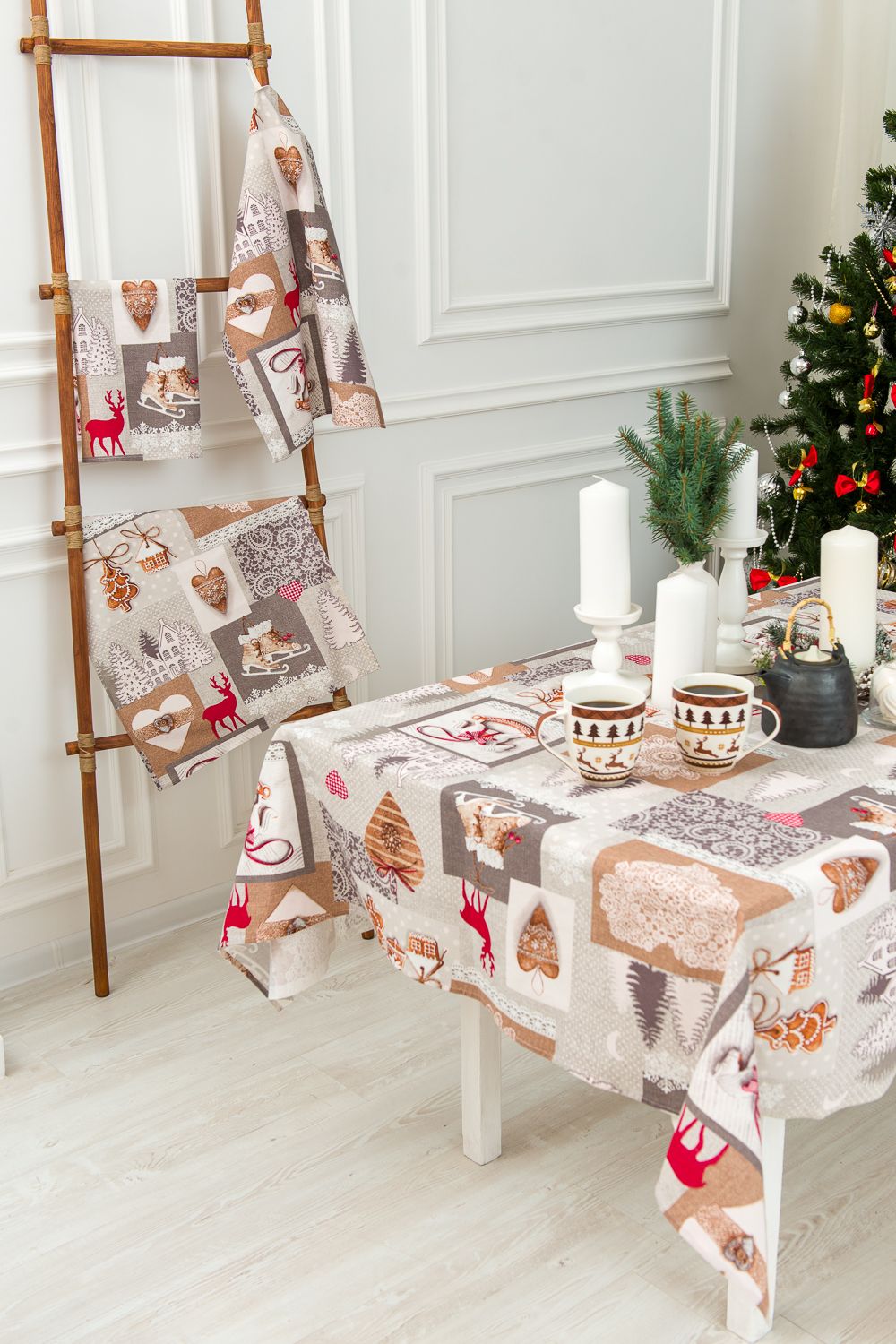 Скатерть Лапландия из рогожки размером 220*150 поможет создать в доме атмосферу праздника и уюта.