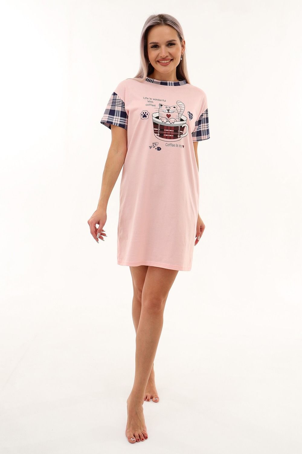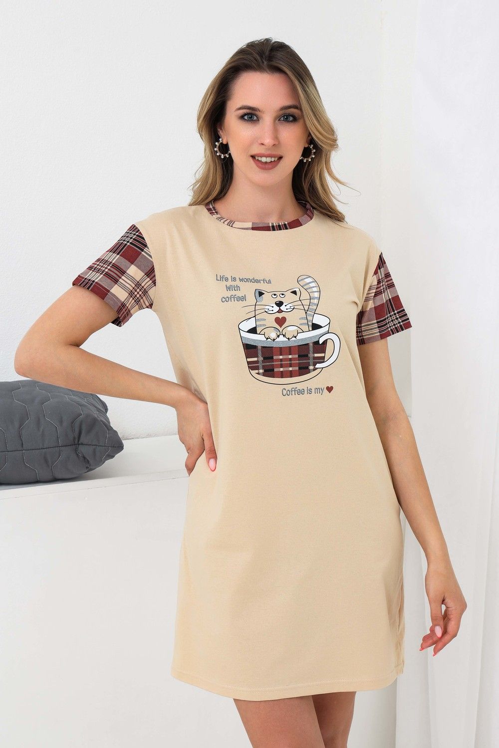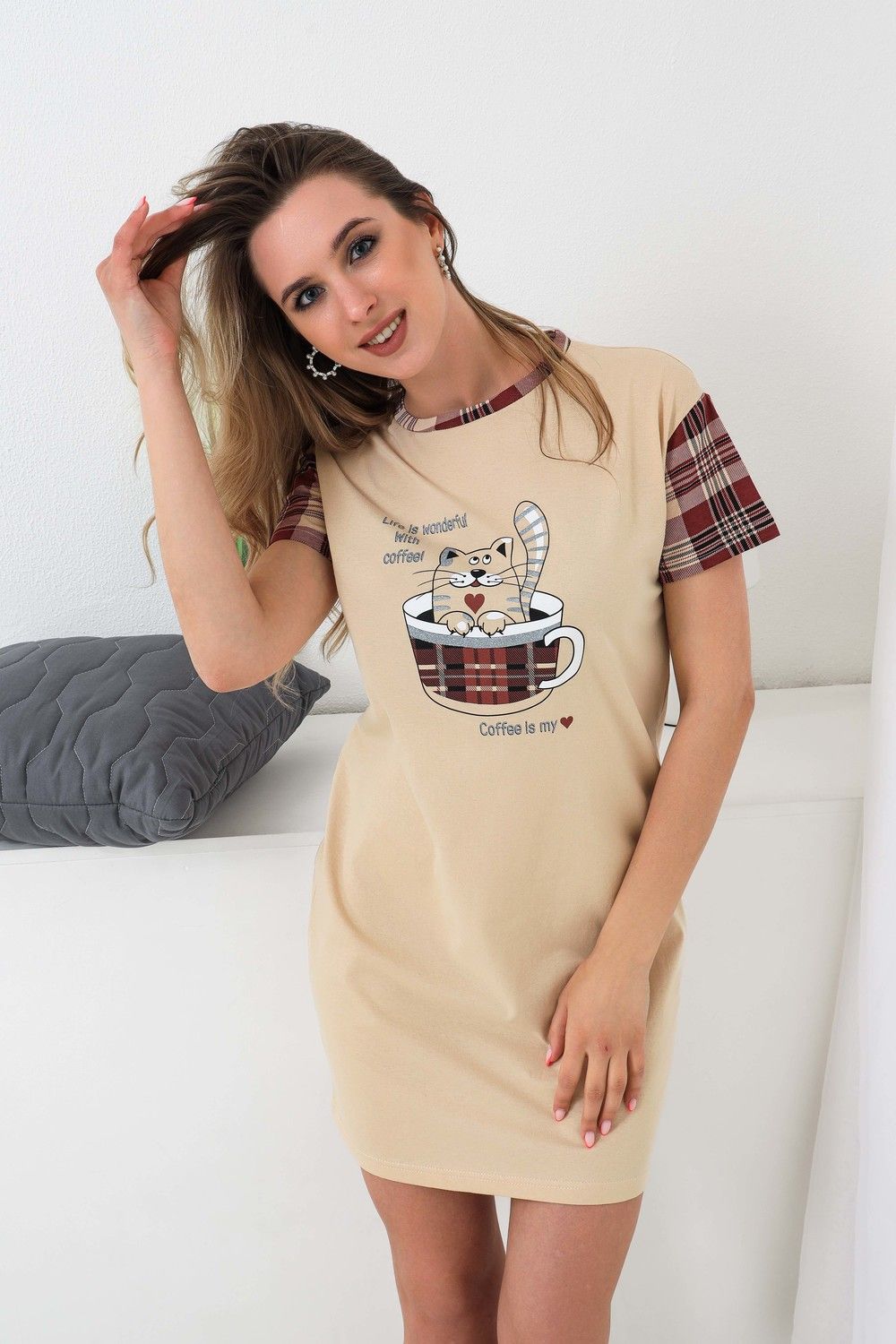 Молодёжная сорочка в виде удлинённой свободной футболки с милым симпатичным принтом. Можно использовать в качестве домашней туники.